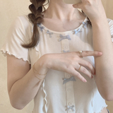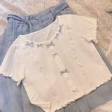 Синяя трехмерная ультратонкая японская эластичная футболка с коротким рукавом с бантиком, облегающий крой
