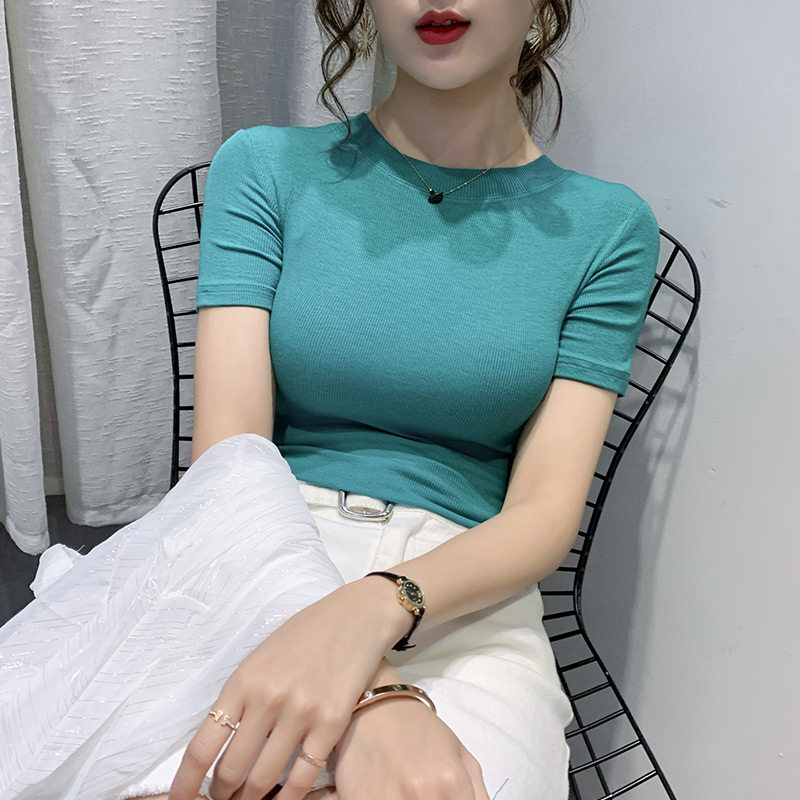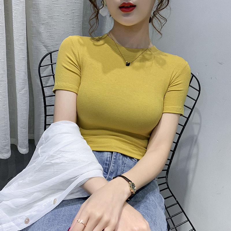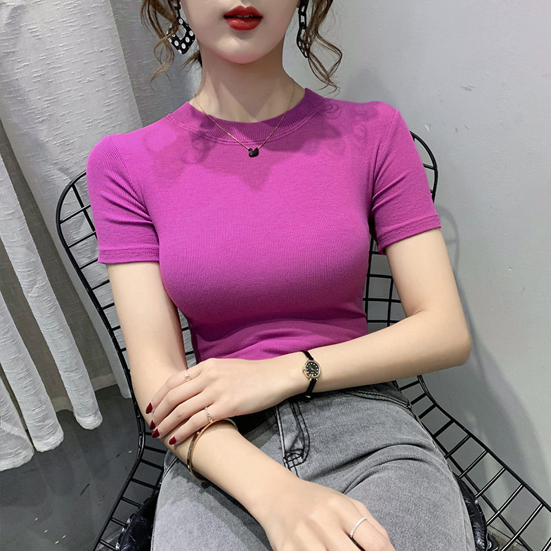 Цветная летняя одежда, базовая приятная телу хлопковая футболка с коротким рукавом, облегающий крой