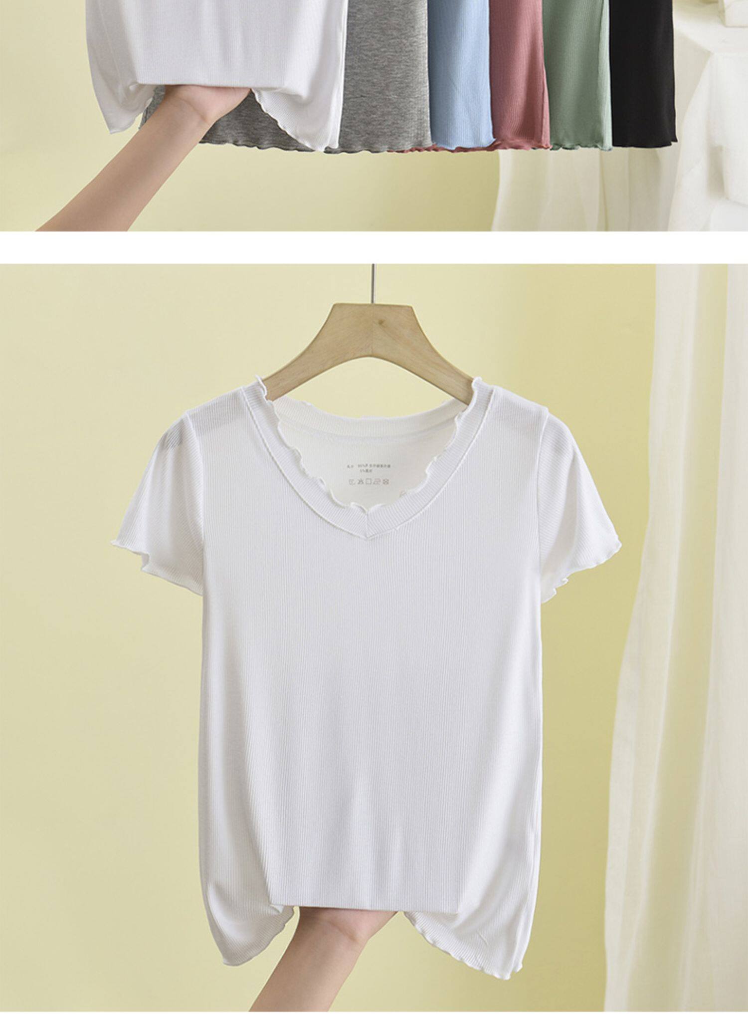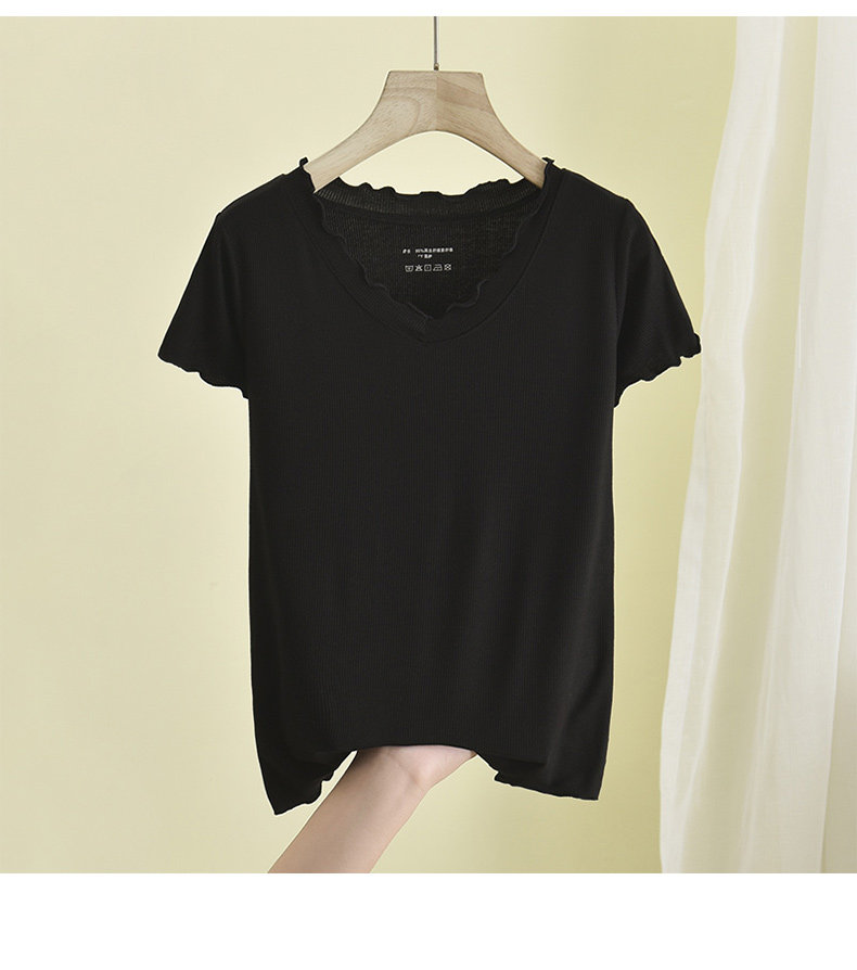 Летняя тонкая футболка, трикотажный базовый приятный телу свитер, V-образный вырез, короткий рукав, облегающий крой