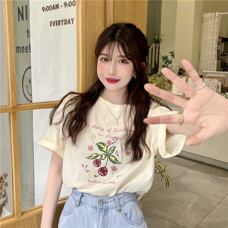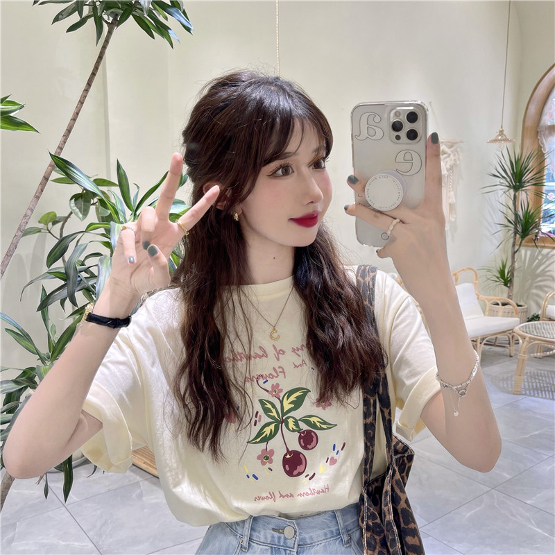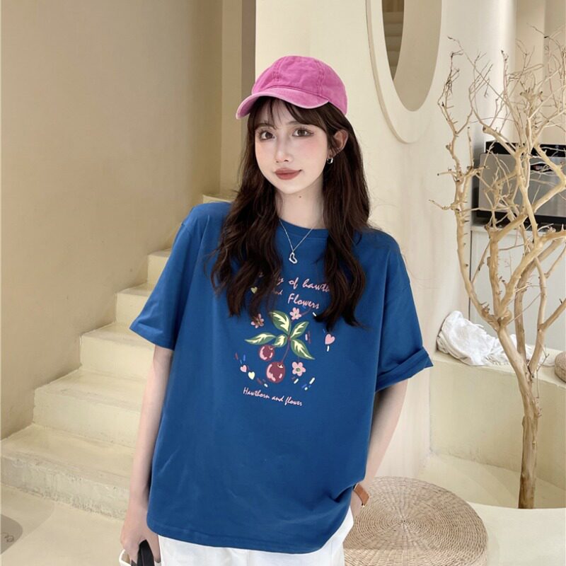 Летняя ретро приятная телу футболка с круглым воротником, 2021 года, оверсайз