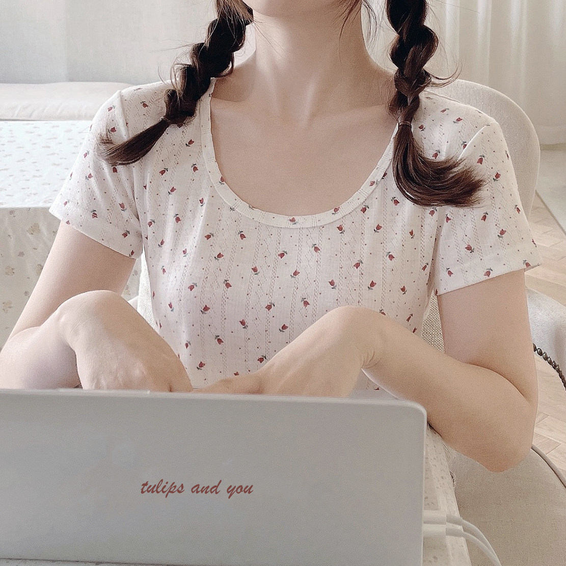 Ретро французская девушка Tulip Little Flower Land -Collarbone Searline Короткий -