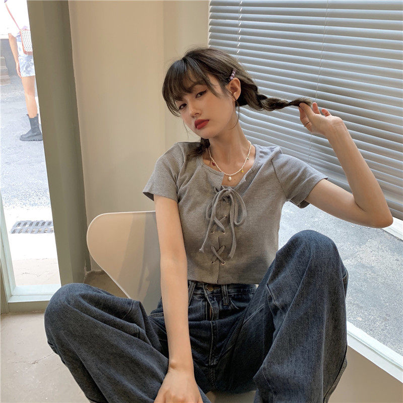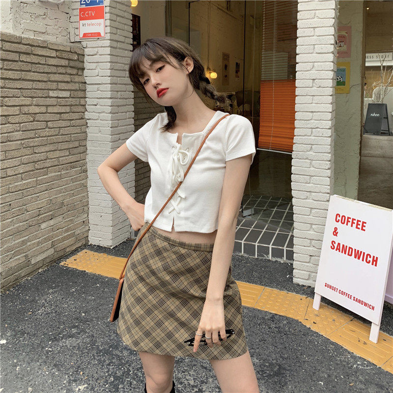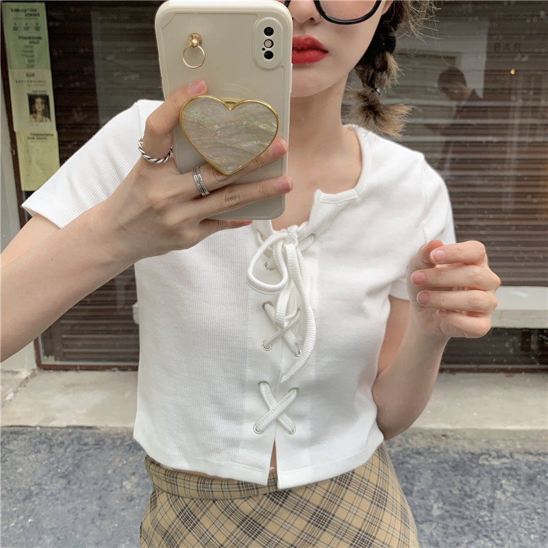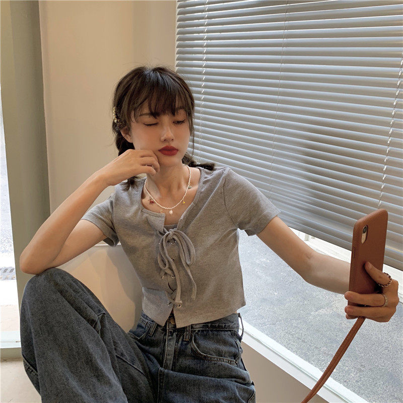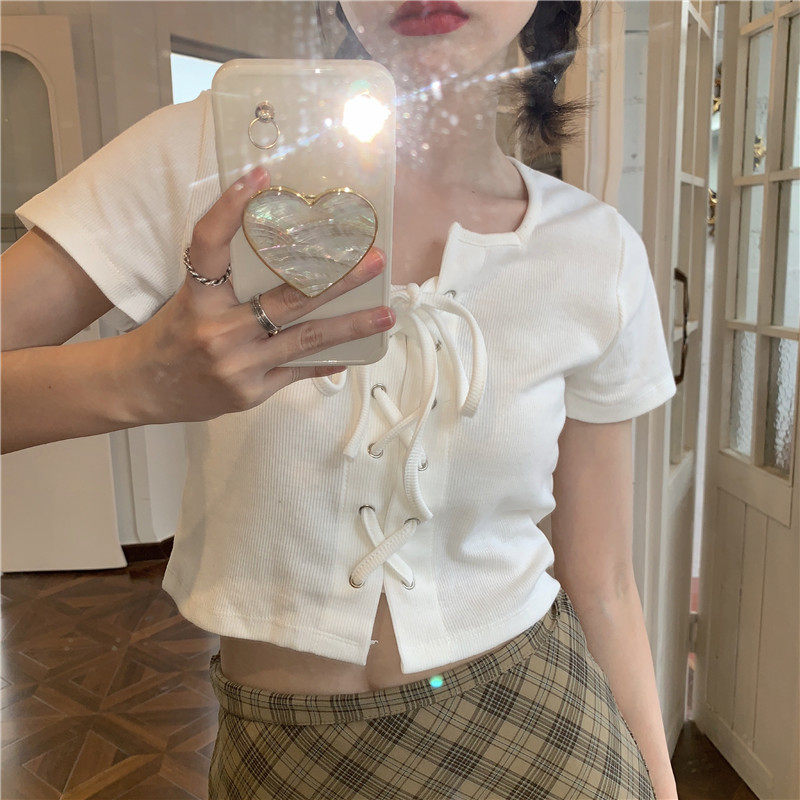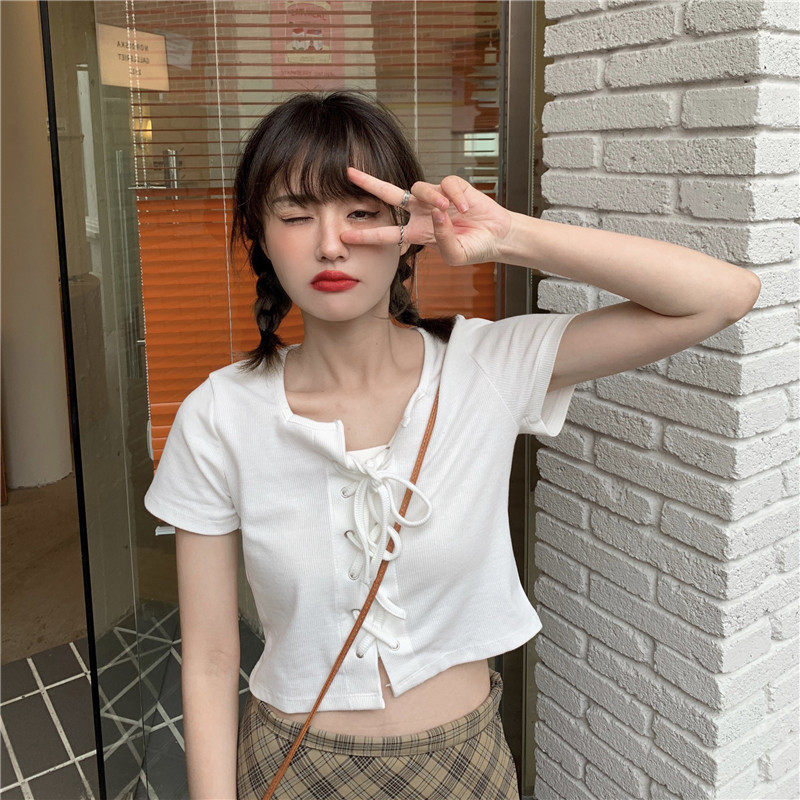 Белый ремень, летняя короткая футболка, квадратный вырез, облегающий крой, высокая талия