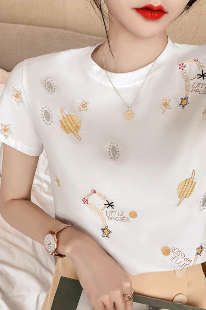 Брендовая белая футболка с коротким рукавом для отдыха, с вышивкой, оверсайз, короткий рукав