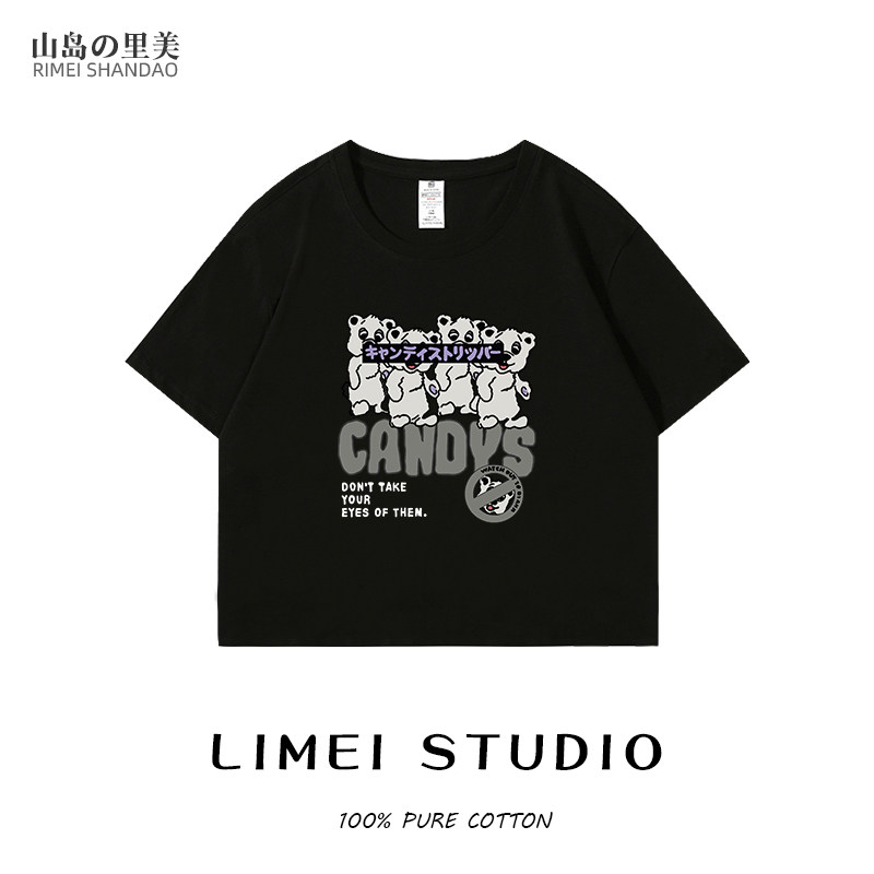 sanduolemen/山岛里美 Хлопковая короткая летняя футболка с коротким рукавом с круглым воротником, 2021 года