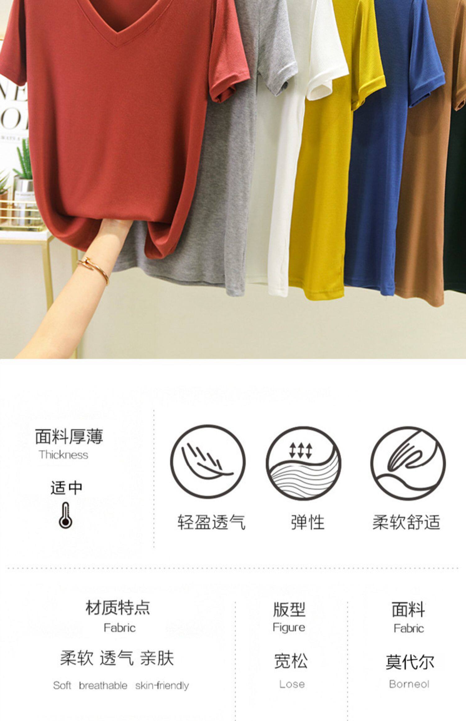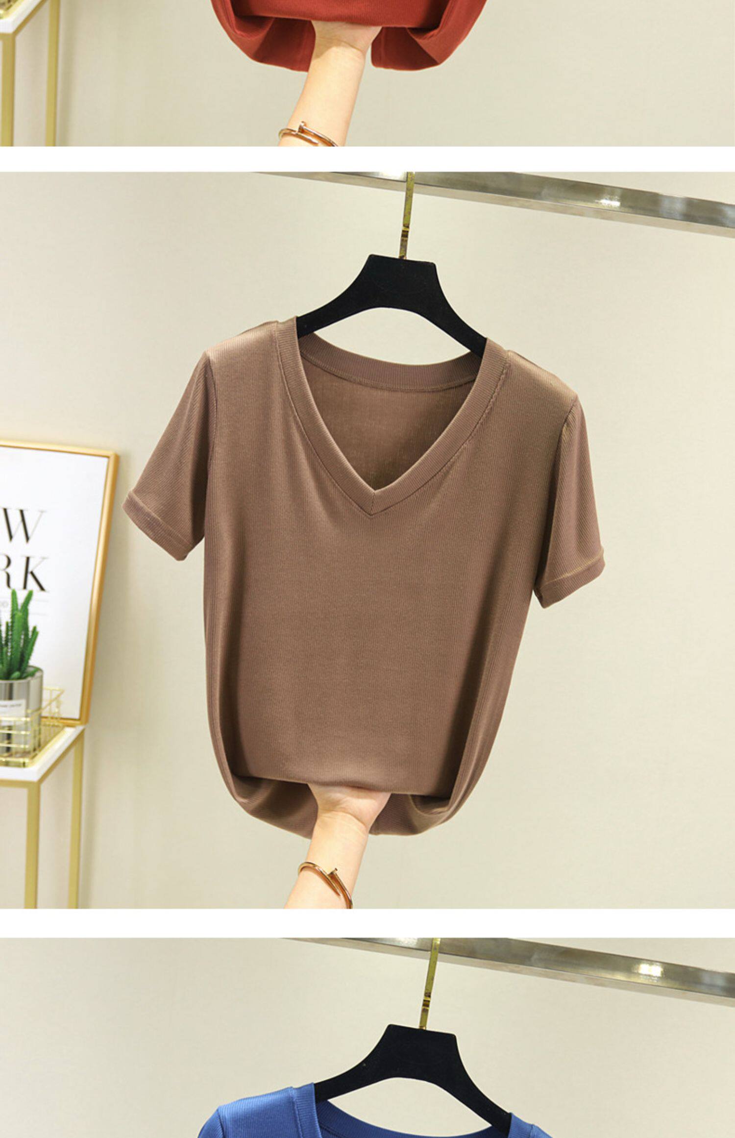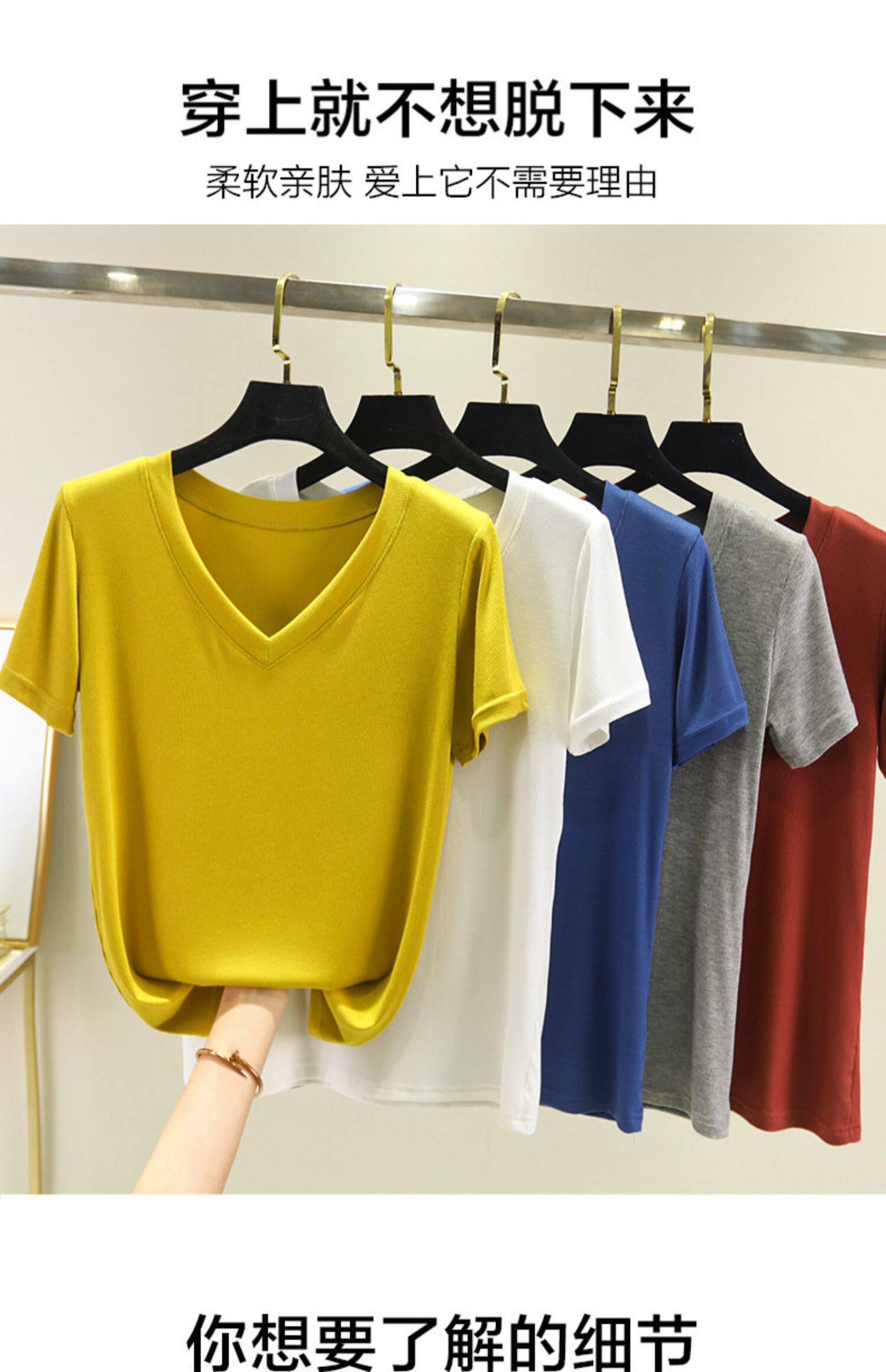 Летняя тонкая базовая приятная телу футболка с коротким рукавом, коллекция 2023, V-образный вырез, свободный крой