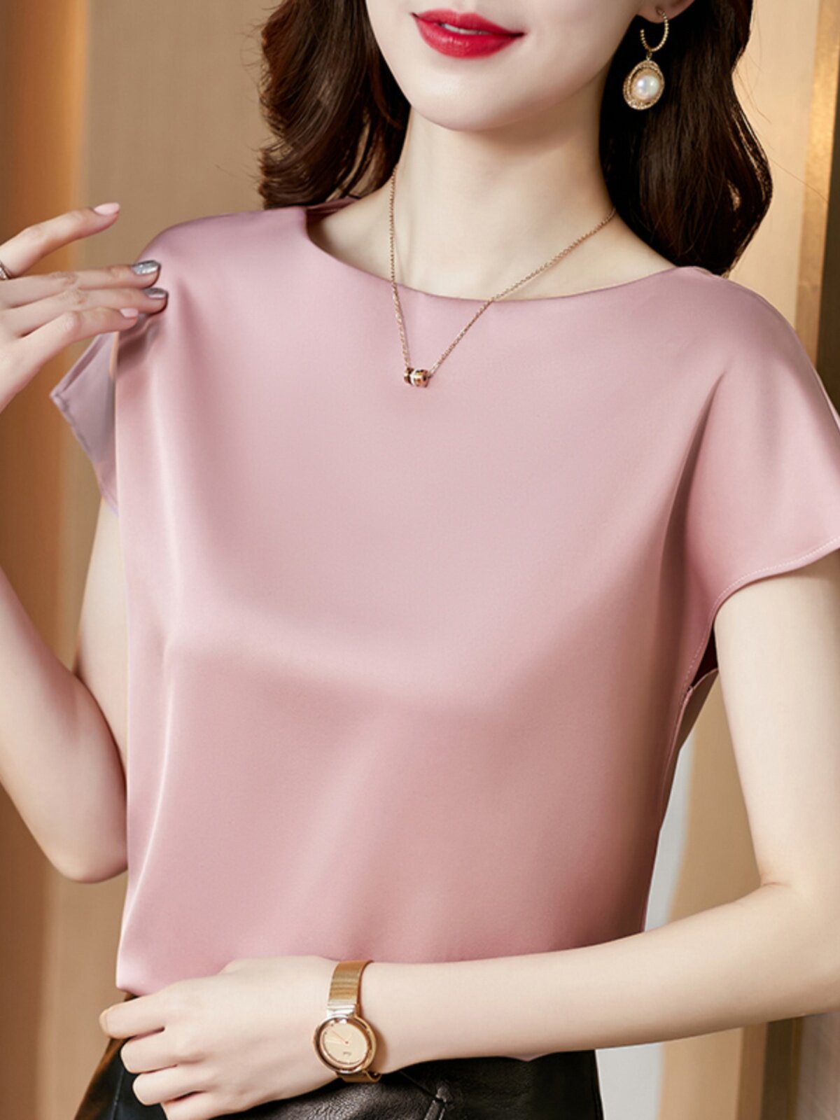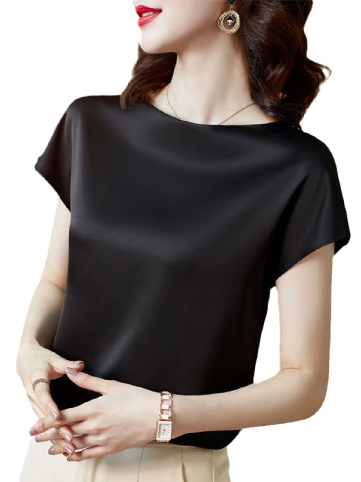 Шелковая летняя модная элитная футболка, короткий рукав, свободный крой