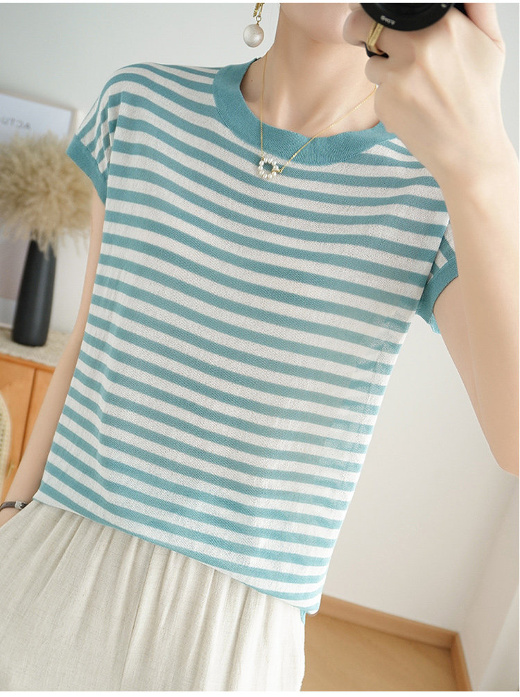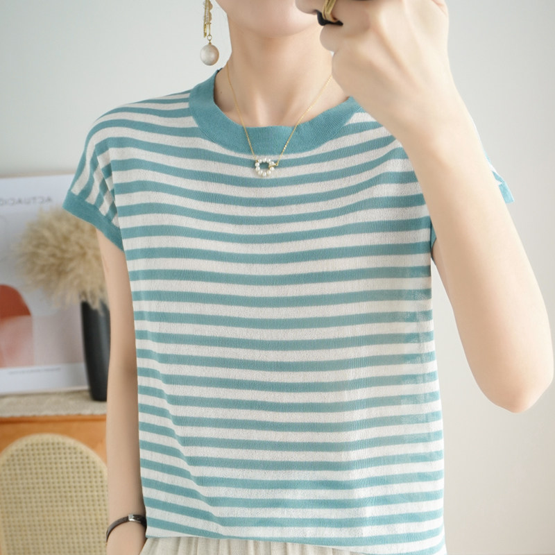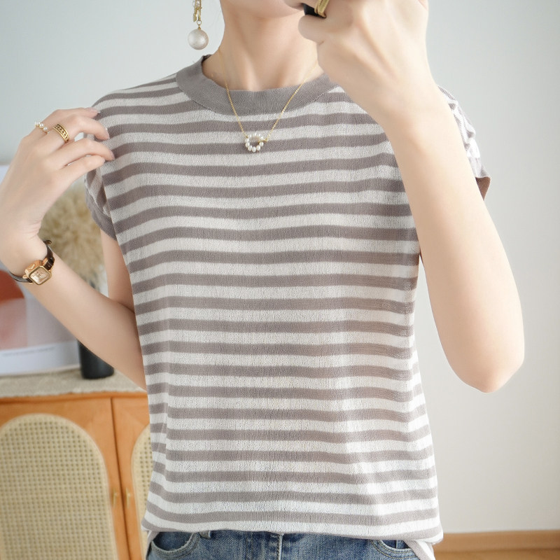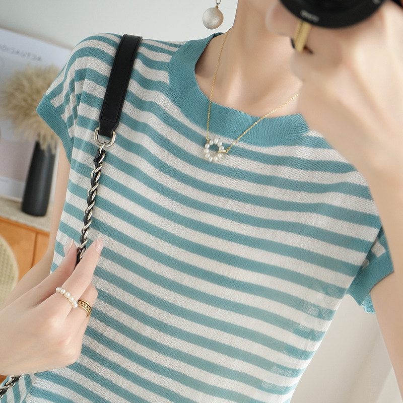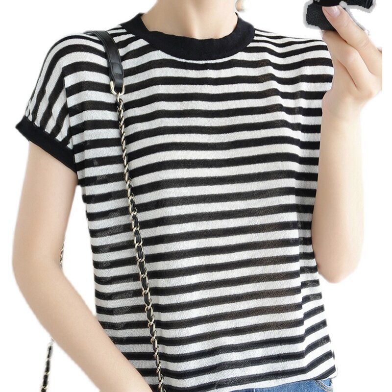 Летняя базовая приятная телу тонкая трикотажная футболка с круглым воротником, сезон 2021, короткий рукав