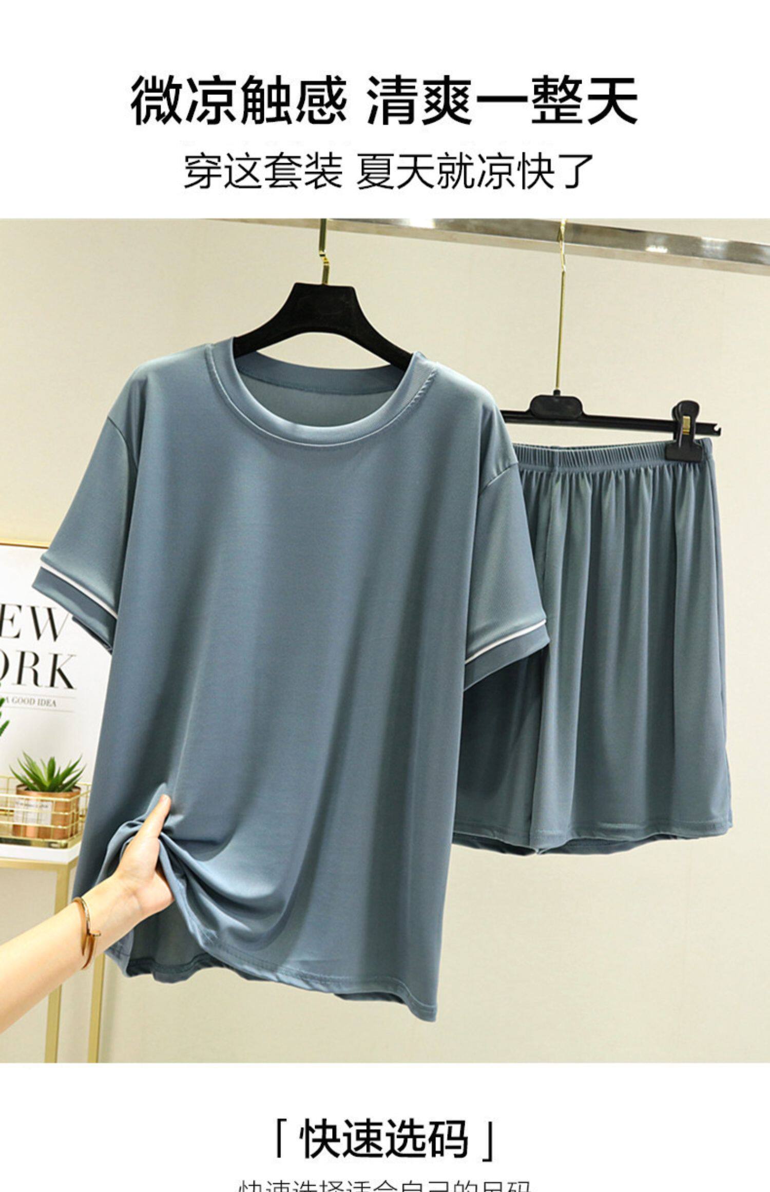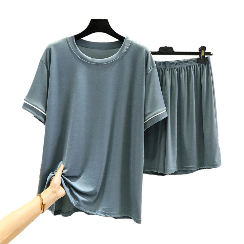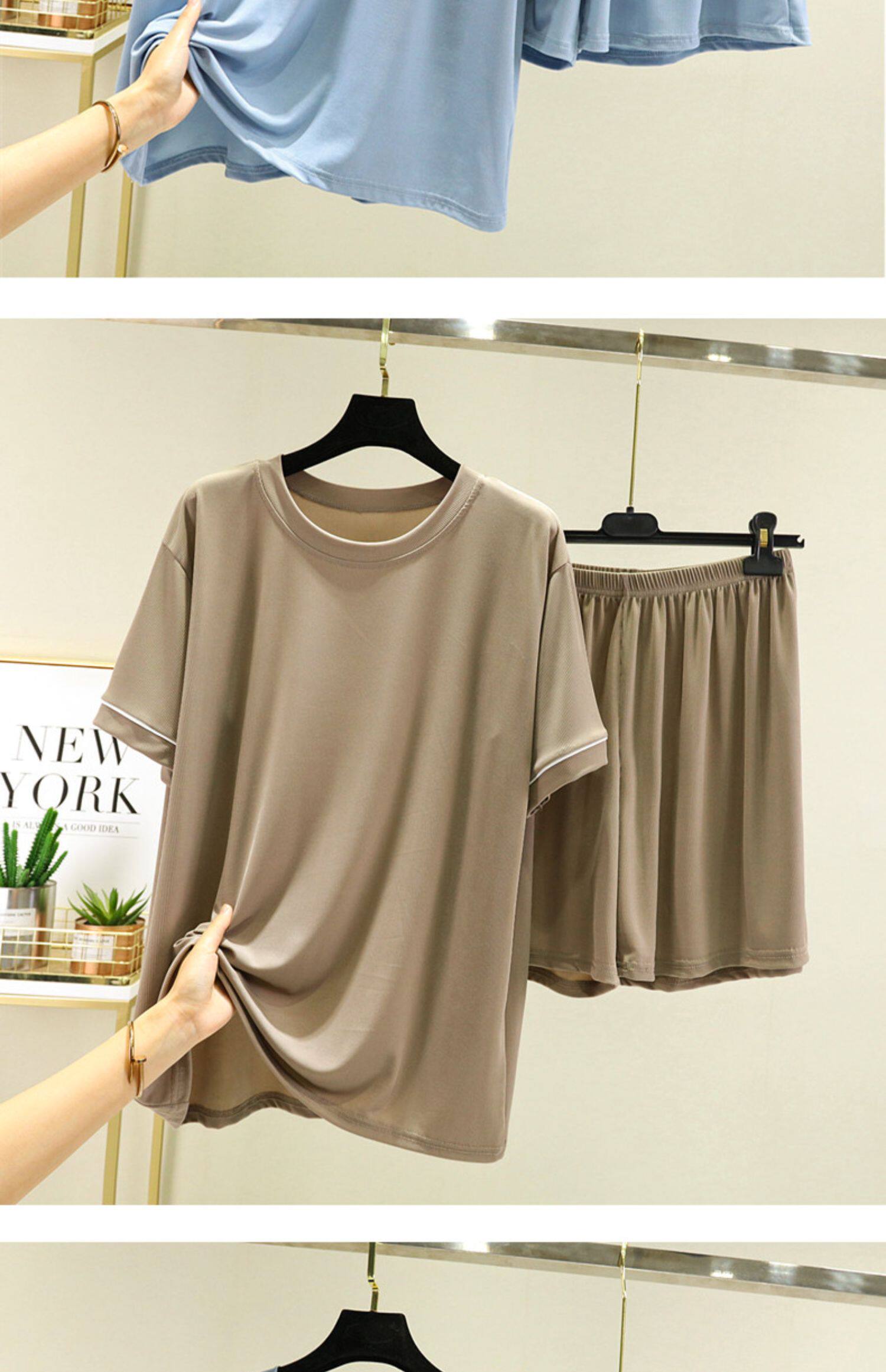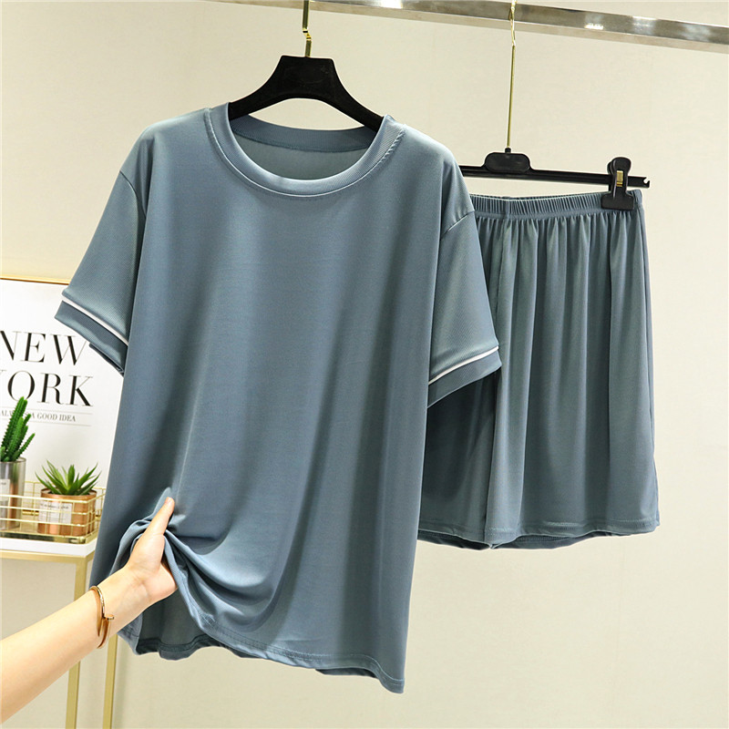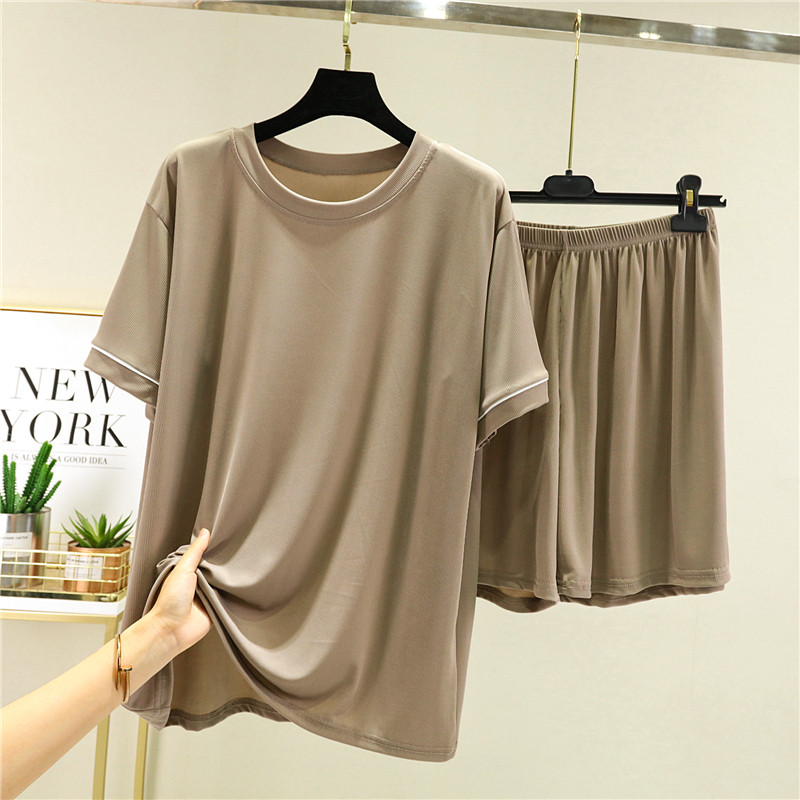 Шелковые нарукавники, тонкий комплект, футболка, шорты, пижама, короткий рукав, оверсайз, высокая талия