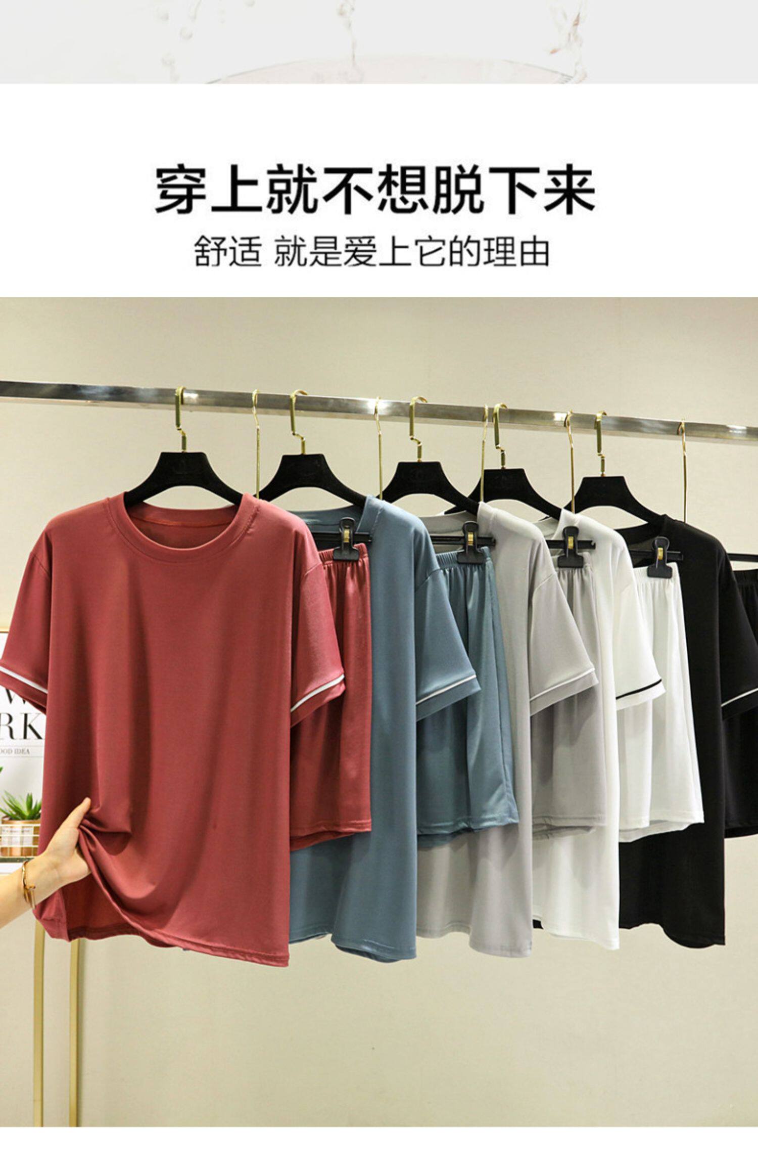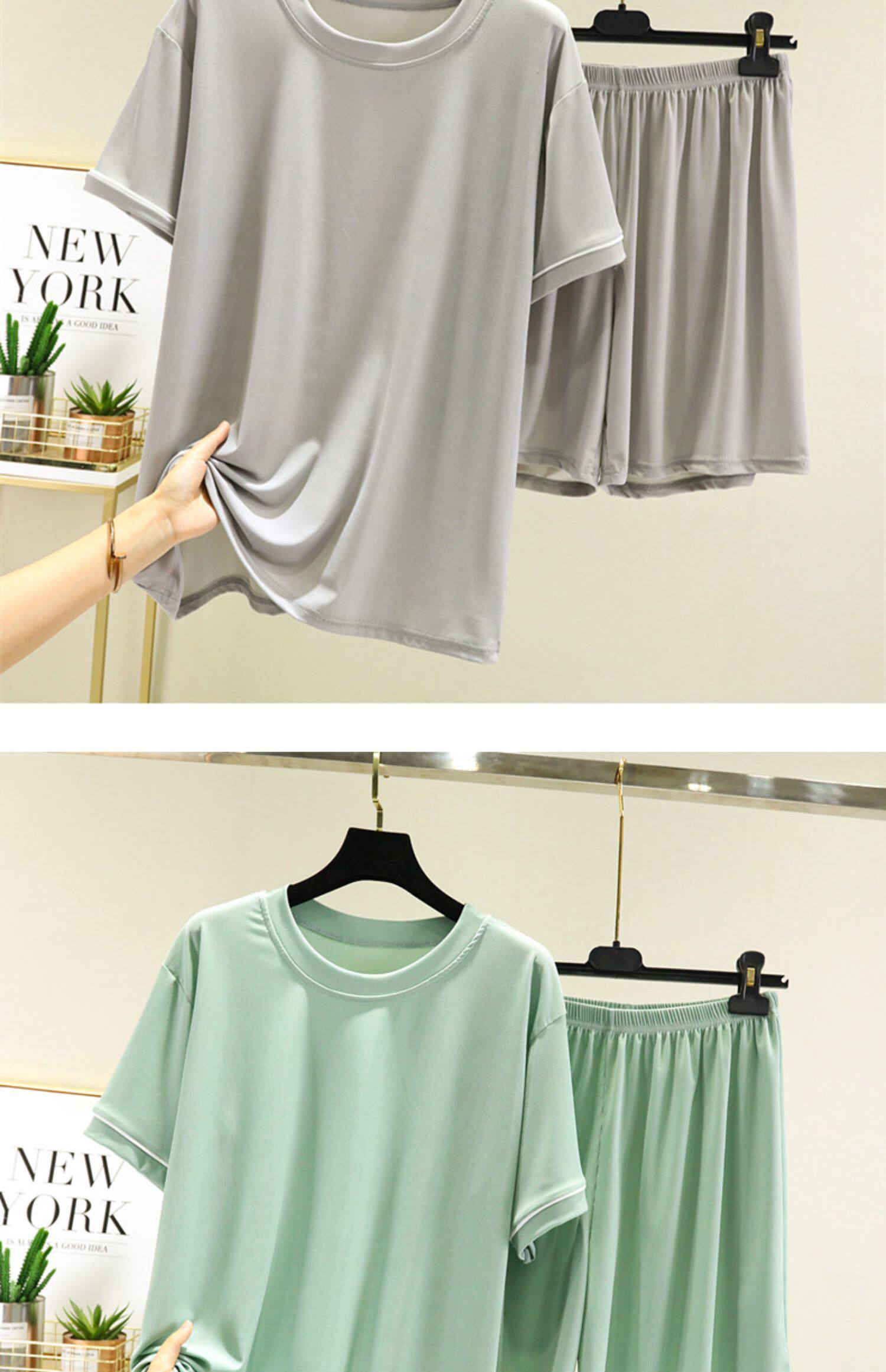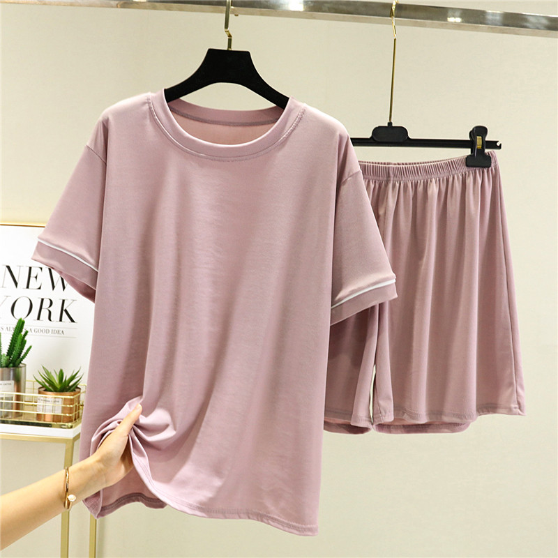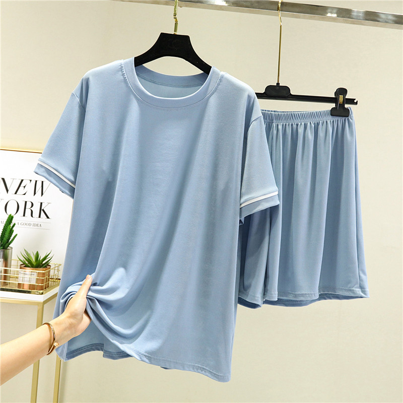 Шелковые нарукавники, тонкий комплект, футболка, шорты, пижама, короткий рукав, оверсайз, высокая талия