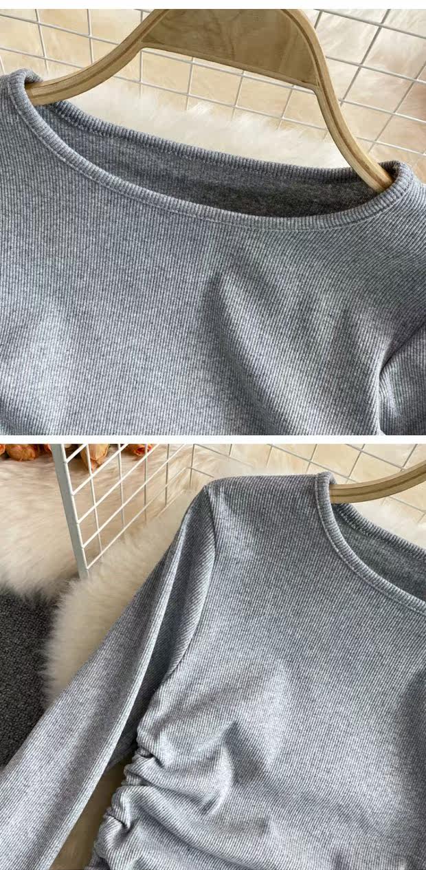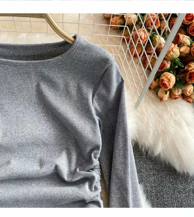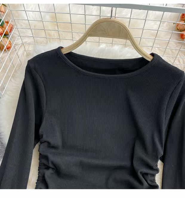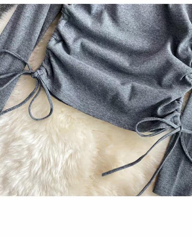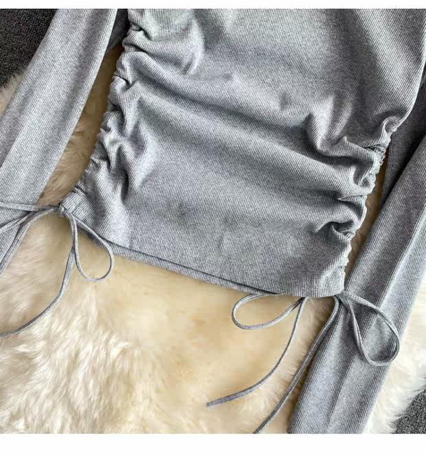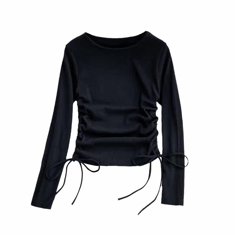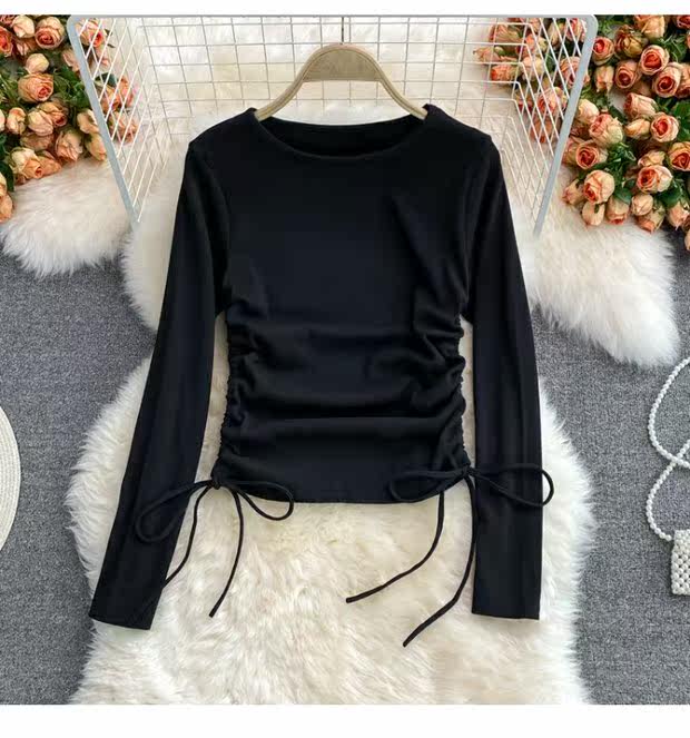Короткий эластичный лонгслив с круглым воротником, приталенная базовая футболка, европейский стиль, высокая талия, на шнурках