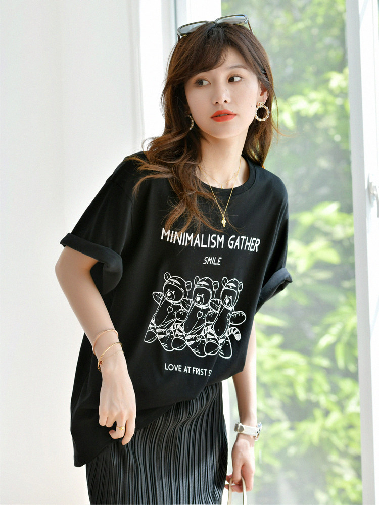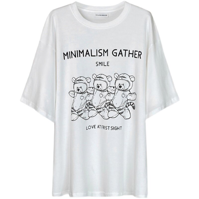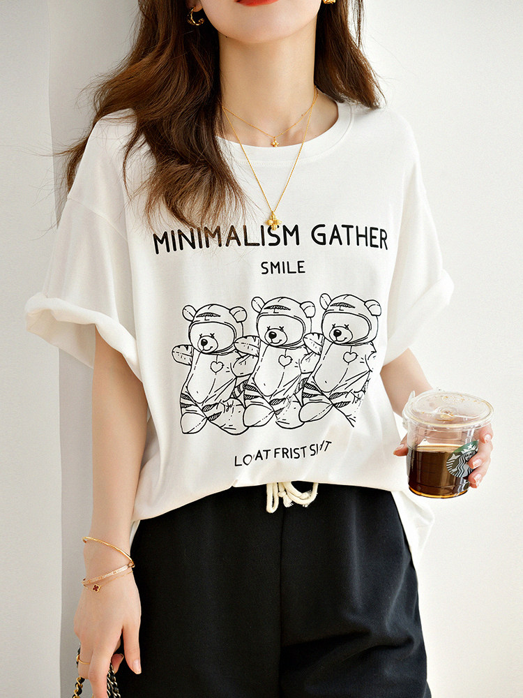 Хлопковая футболка с круглым воротником, Маша и Медведь, свободный крой, с медвежатами