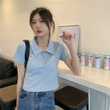 Летняя сексуальная тонкая футболка polo, короткий рукав, свободный крой