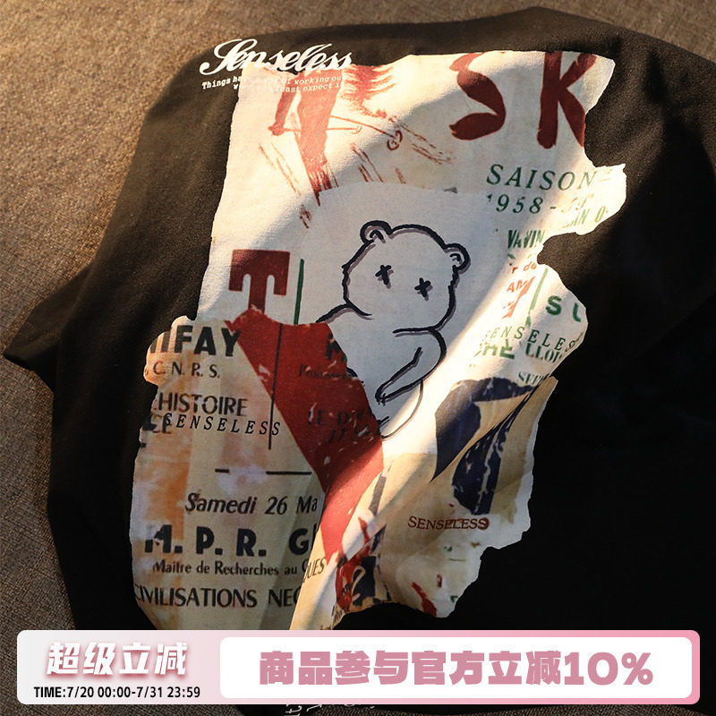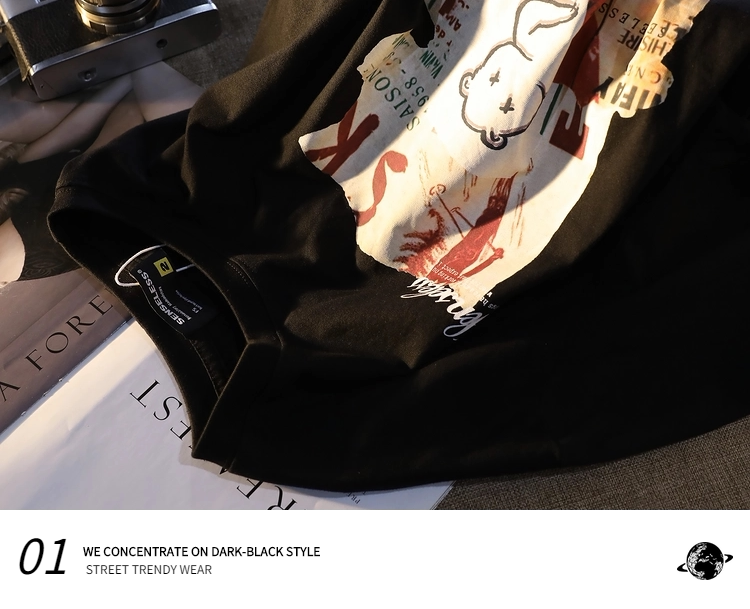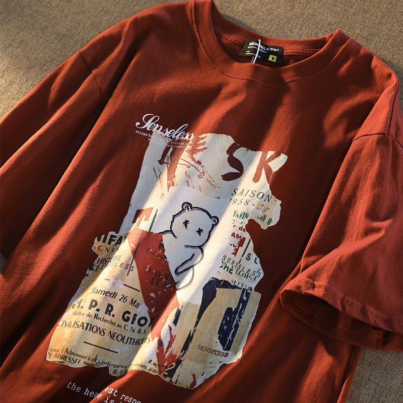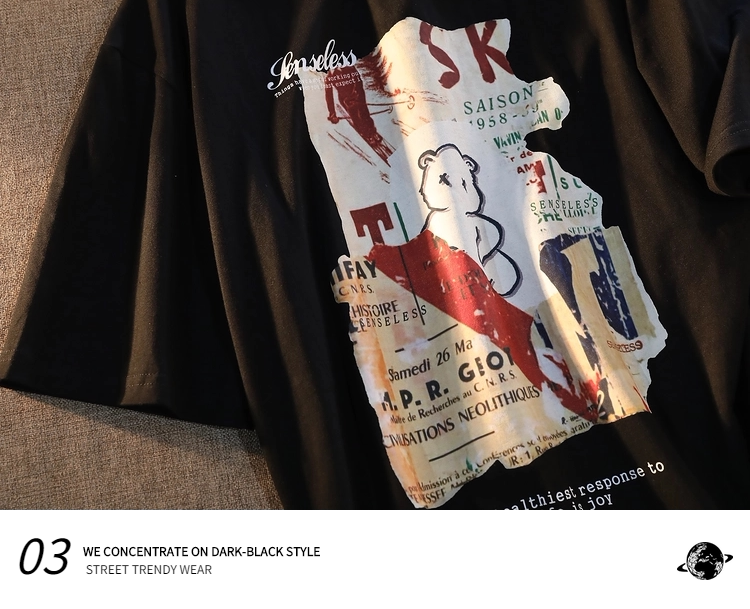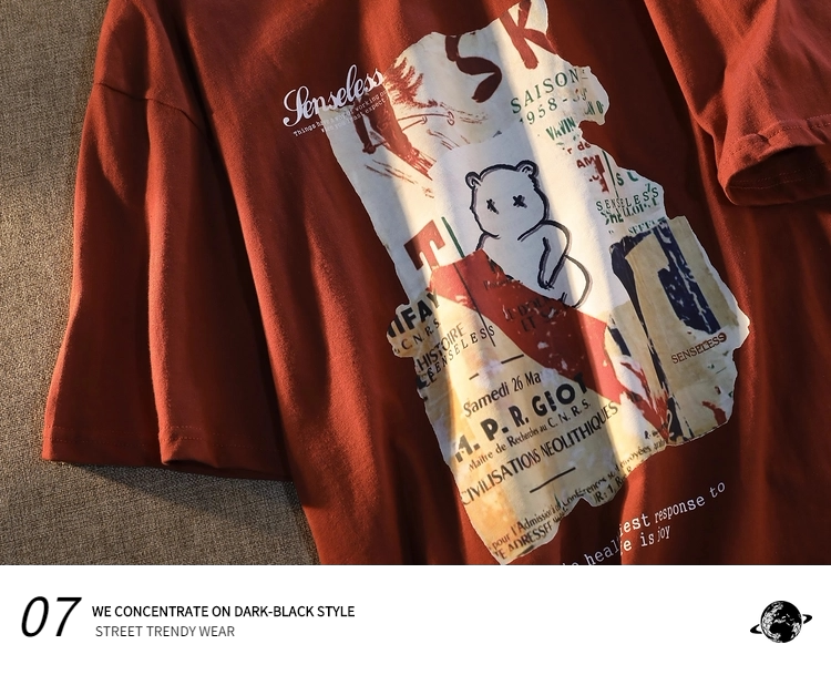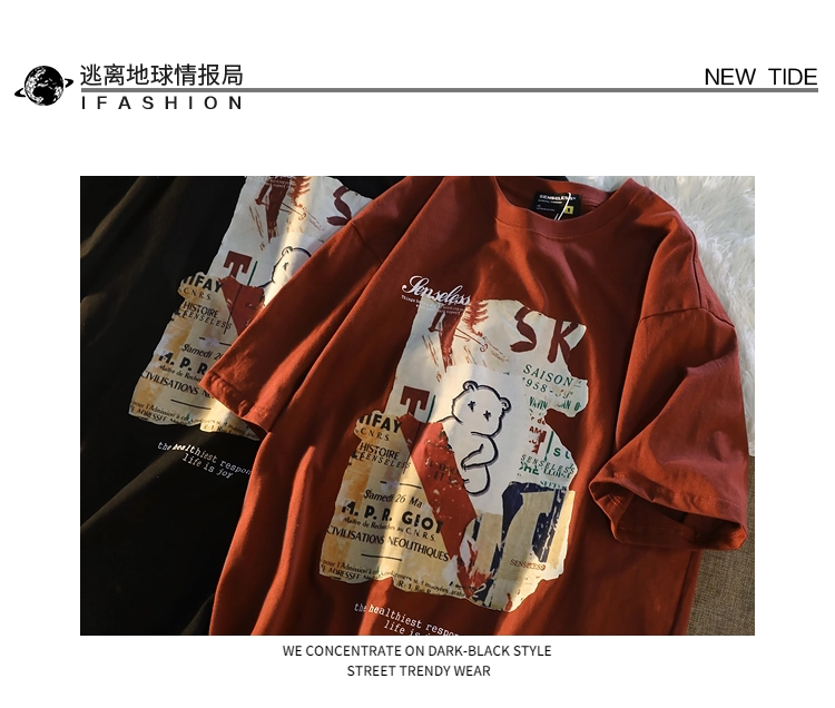 逃离地球 Хлопковая футболка с коротким рукавом, брендовая парная одежда в стиле хип-хоп для влюбленных, в американском стиле, с медвежатами