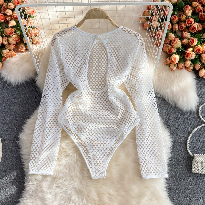 Летнее сексуальное белое боди с круглым воротником, европейский стиль, оверсайз