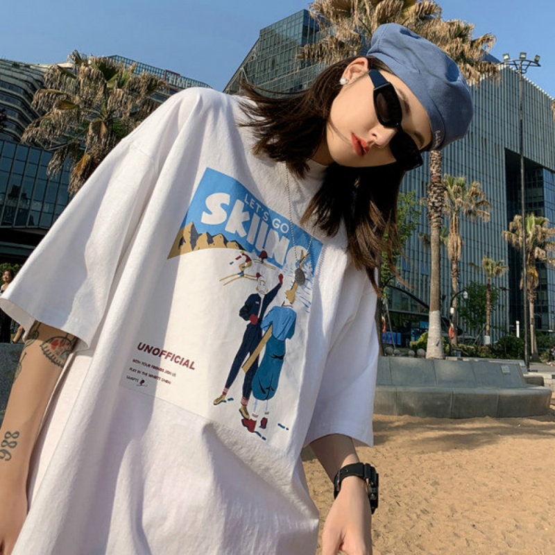Tide, лыжная японская футболка с коротким рукавом подходит для мужчин и женщин, в американском стиле, свободный крой, в корейском стиле