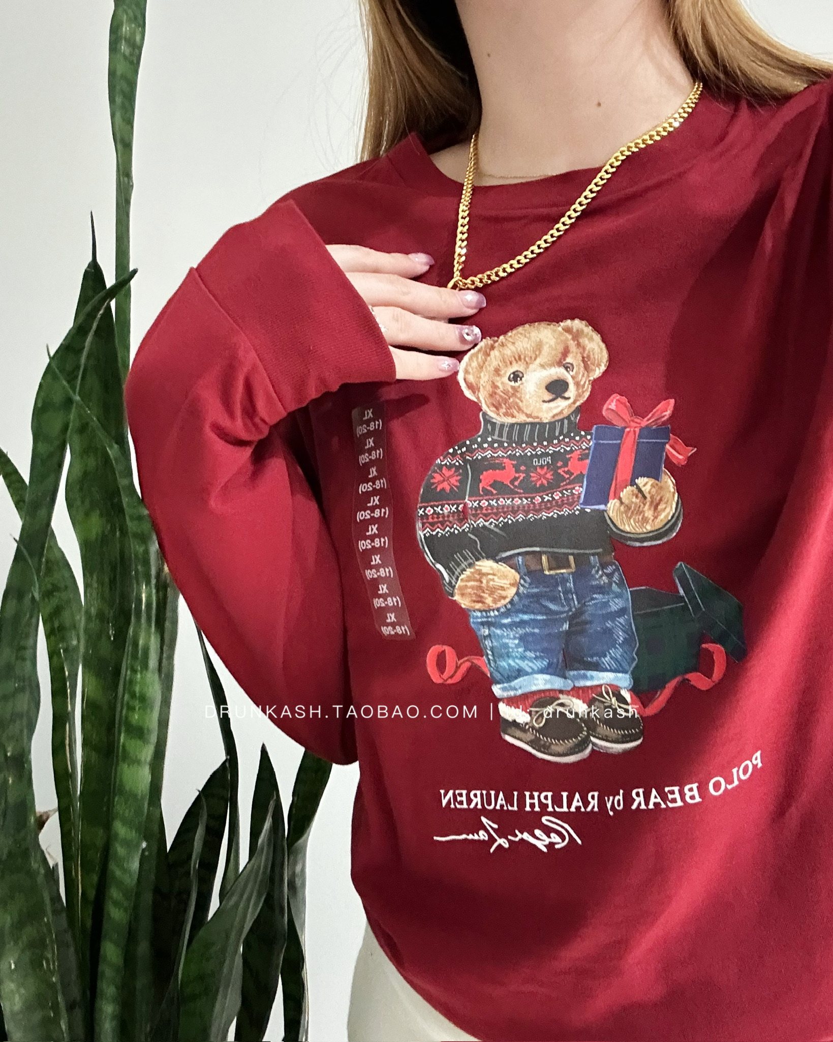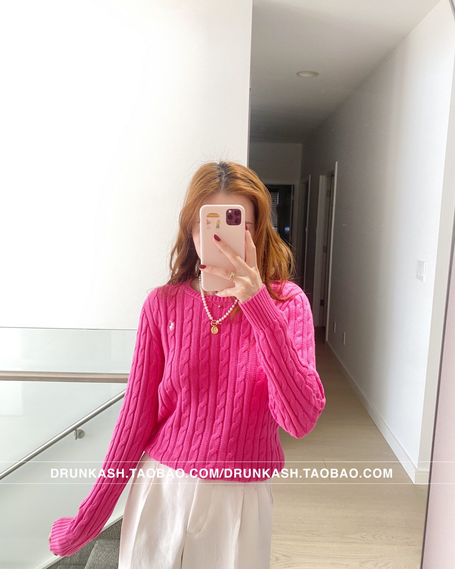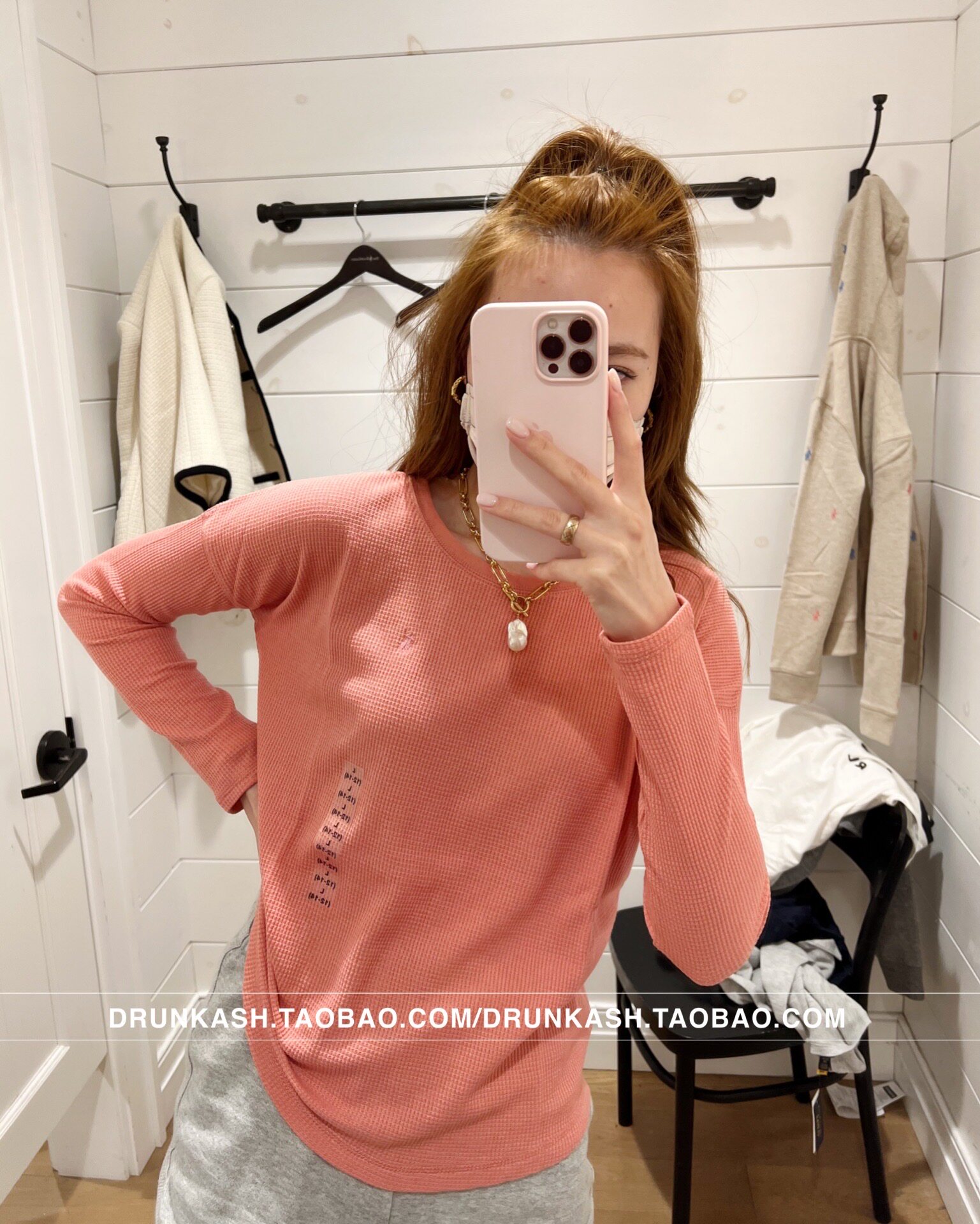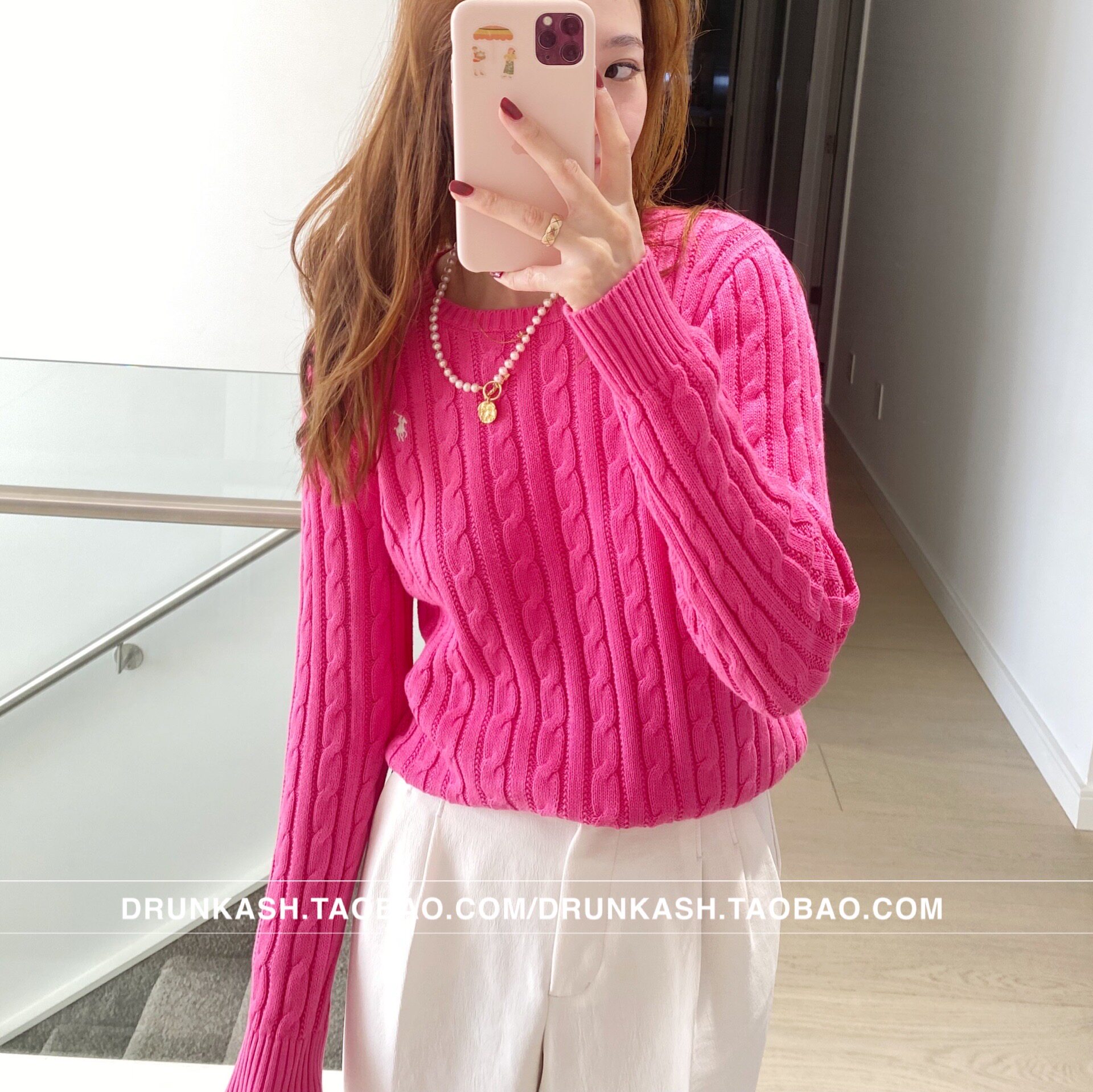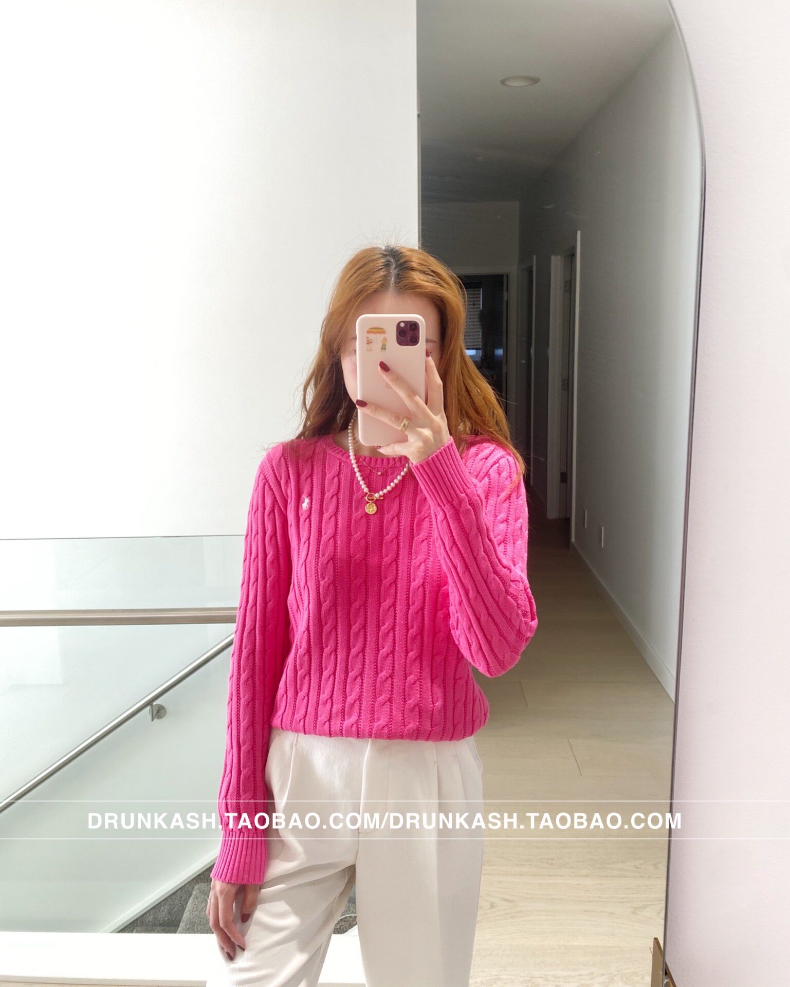 Розовая красная вязаная хлопчатобумажная рубашка Верхняя часть тела XL