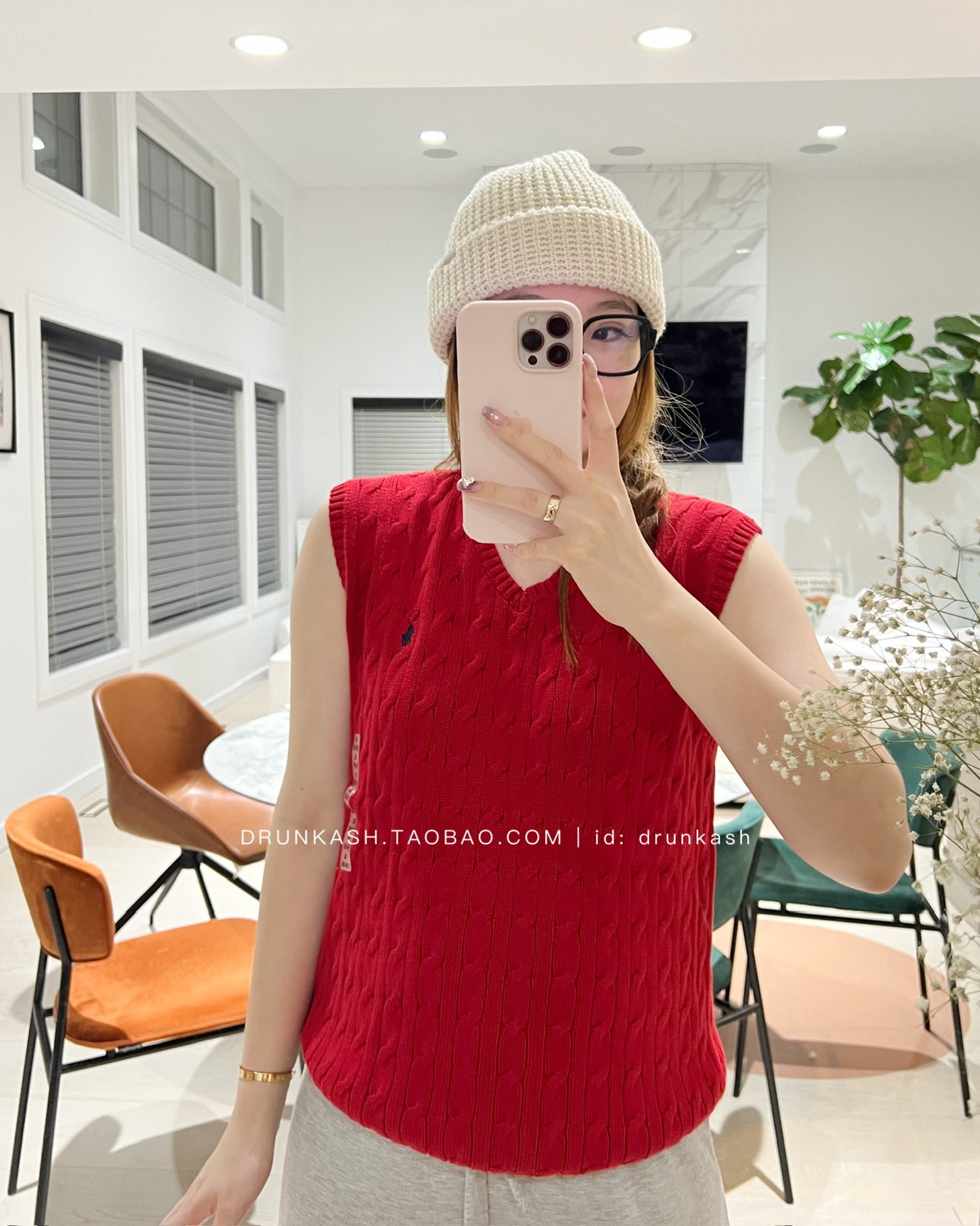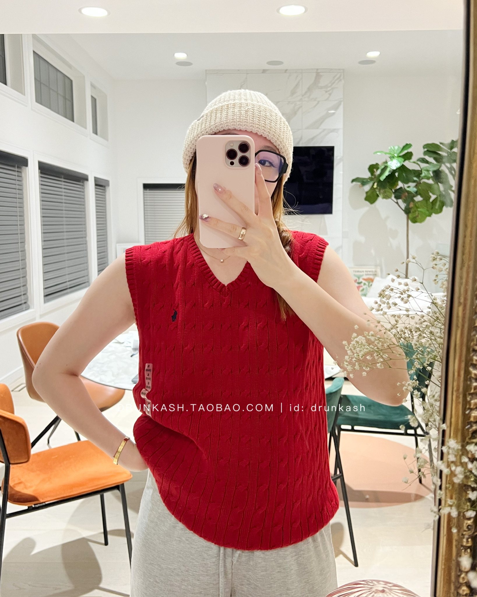 Красный вязаный Верхняя часть тела L похожа на женское L