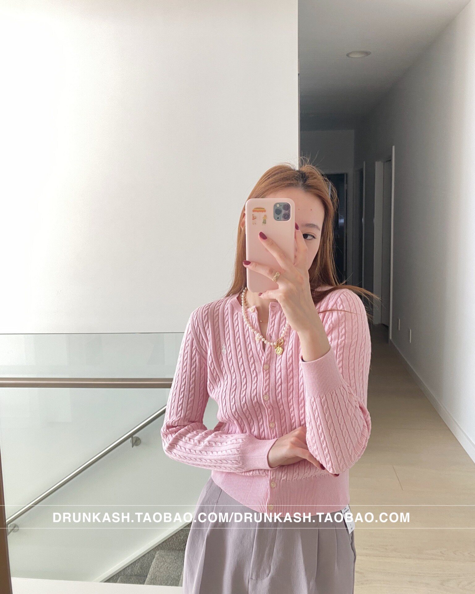 Розовый свитер кардиган