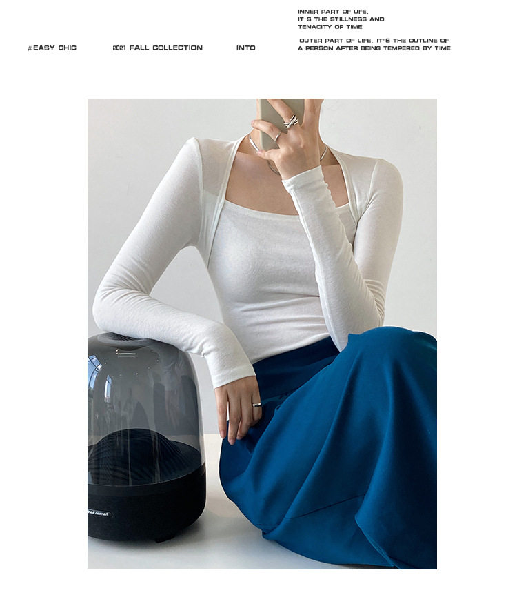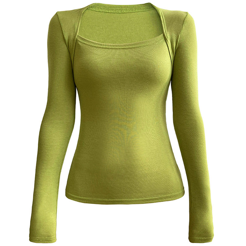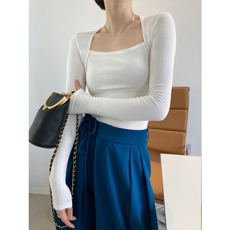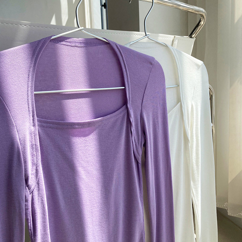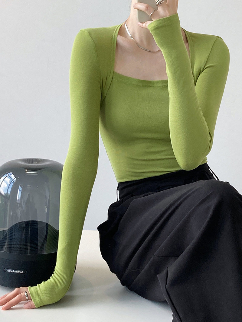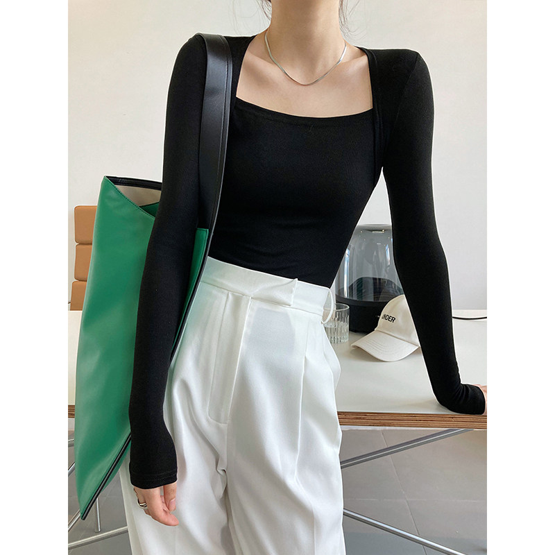 Дизайнерский осенний приталенный лонгслив, базовый приятный телу комплект, французский стиль, квадратный вырез, тренд сезона