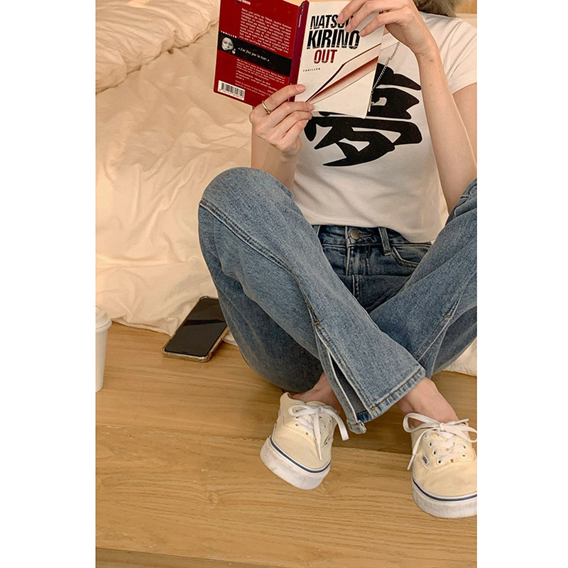 Летние джинсы, штаны, высокая талия, по фигуре, подходят для подростков, свободный прямой крой