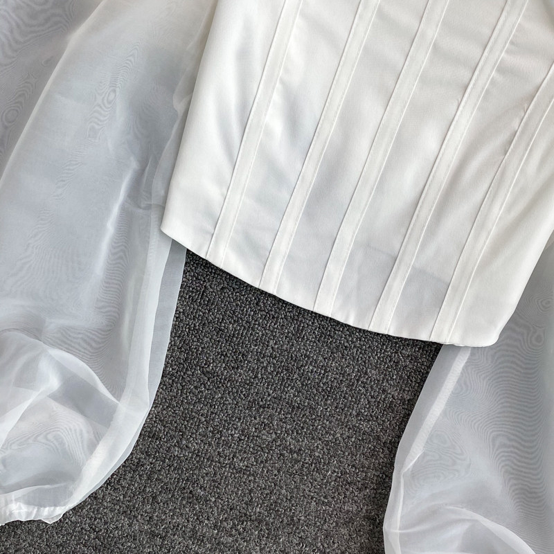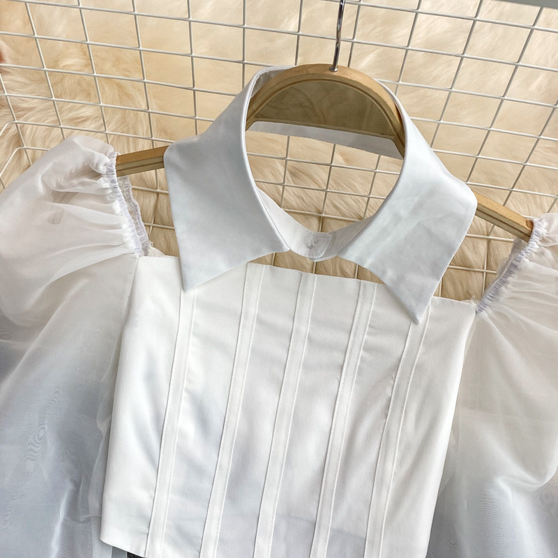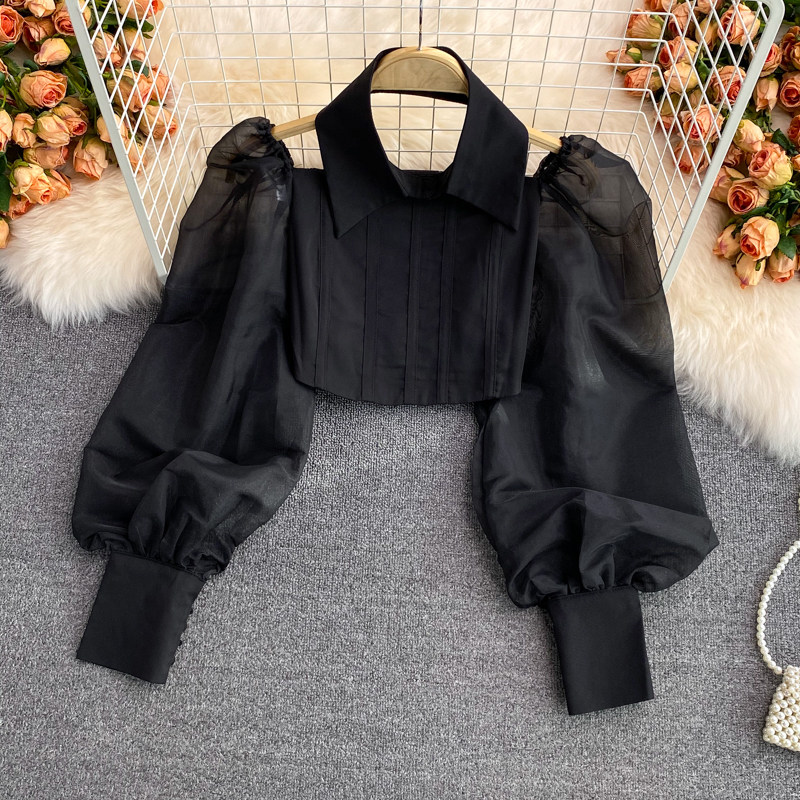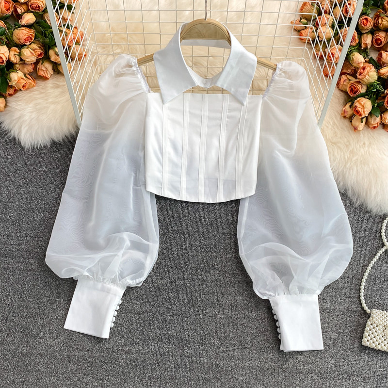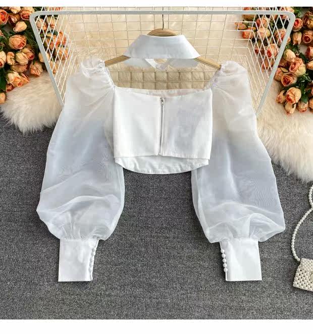Осенний короткий лонгслив, рубашка, коллекция 2021, квадратный вырез, французский стиль, в западном стиле, рукава фонарики