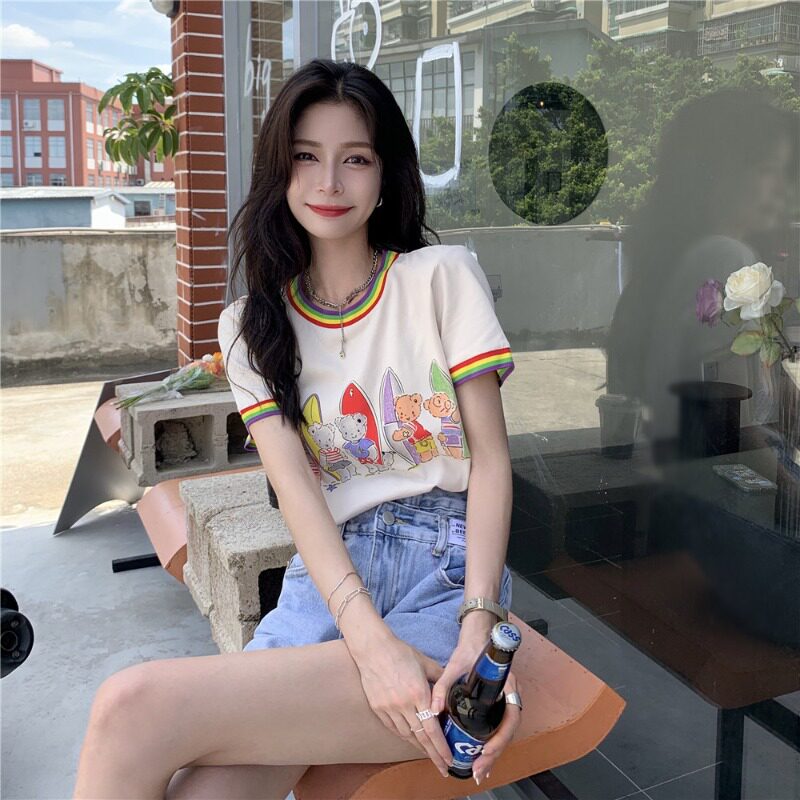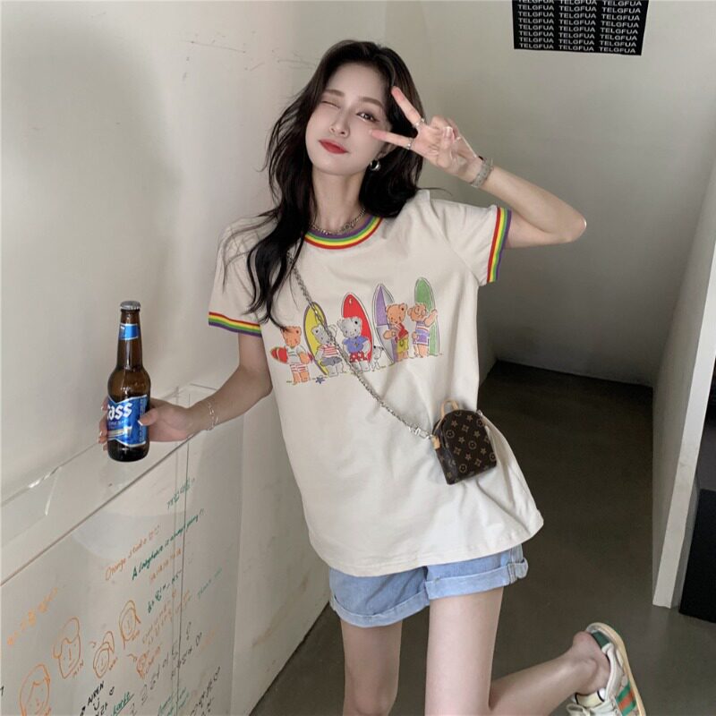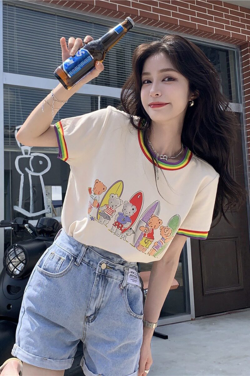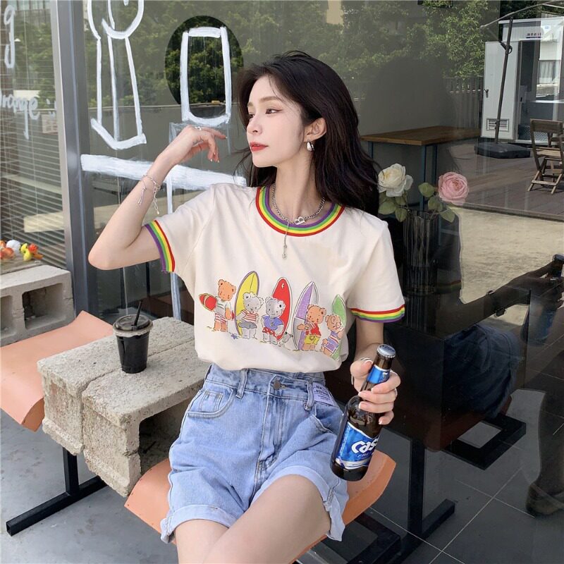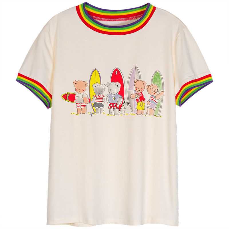 Летняя радужная дизайнерская футболка с коротким рукавом, 2021 года, тренд сезона, с медвежатами