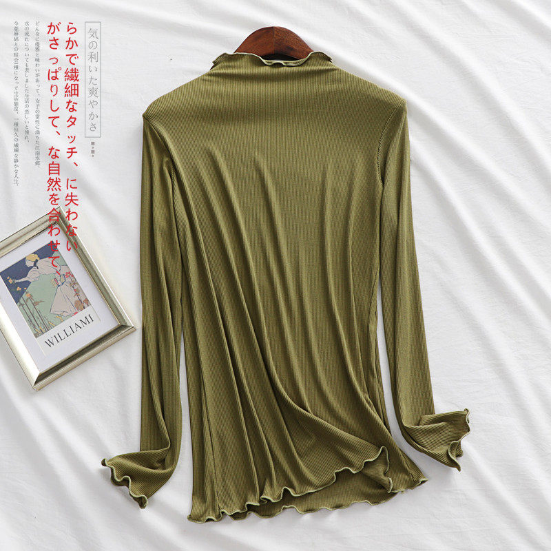 Базовый приятный телу однотонный лонгслив, футболка, термобелье, высокий воротник, оверсайз, в западном стиле