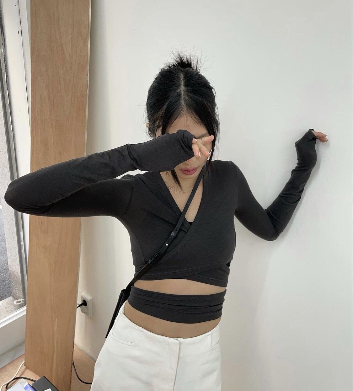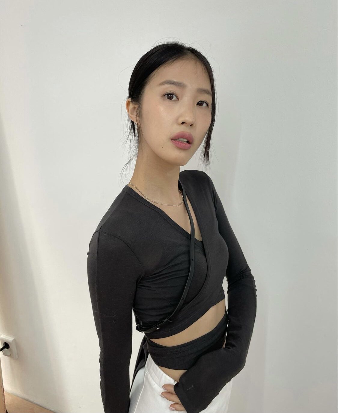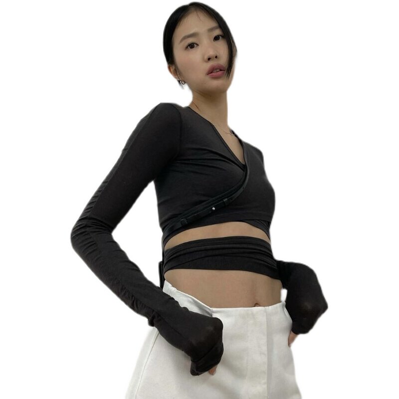 Дизайнерский приталенный ремень, короткий лонгслив, простой и элегантный дизайн, тренд сезона