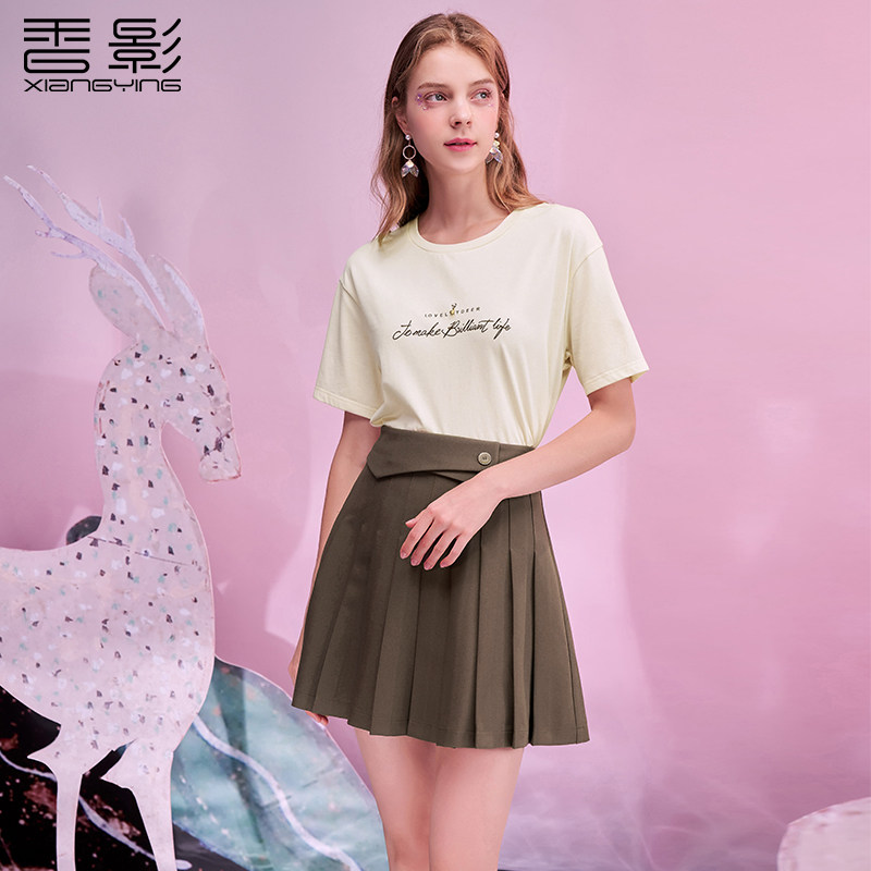 Tide, хлопковая осенняя футболка с круглым воротником, короткий рукав, 2021 года, в корейском стиле