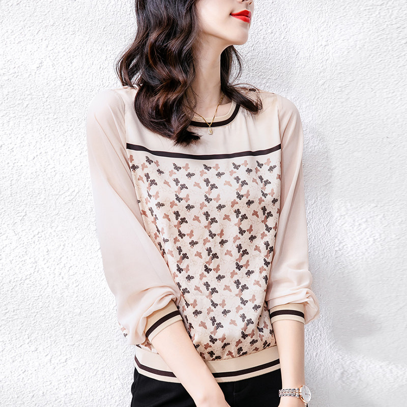 Лонгслив, приятная телу осенняя демисезонная футболка, коллекция 2023, цветочный принт, свободный крой, в западном стиле
