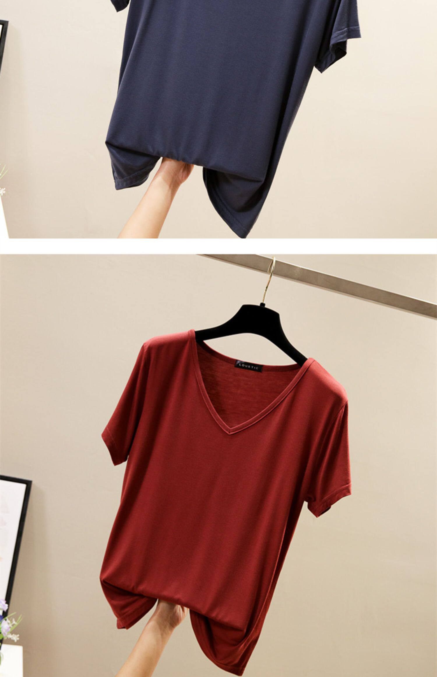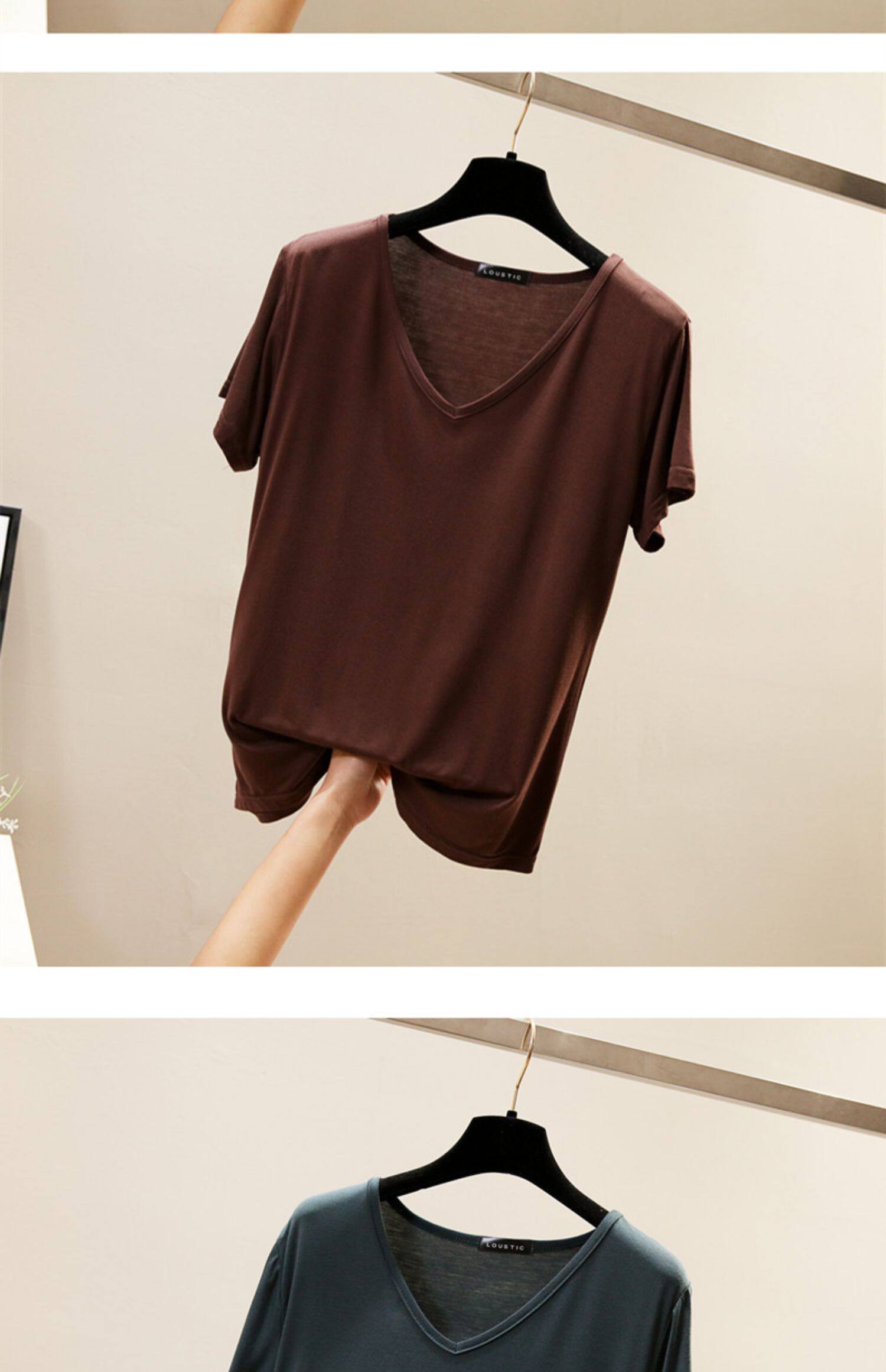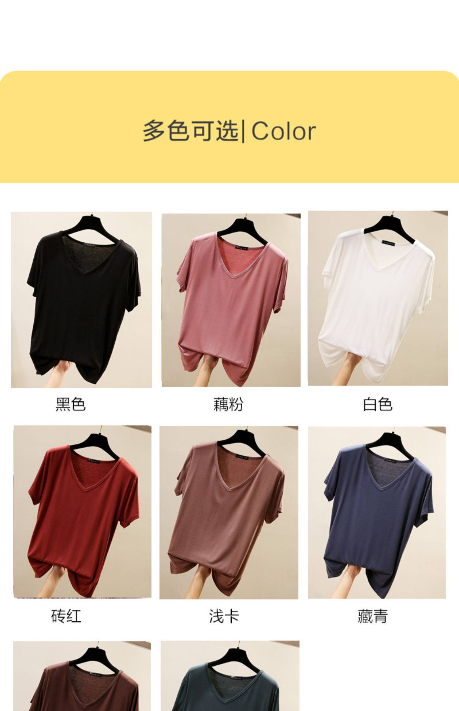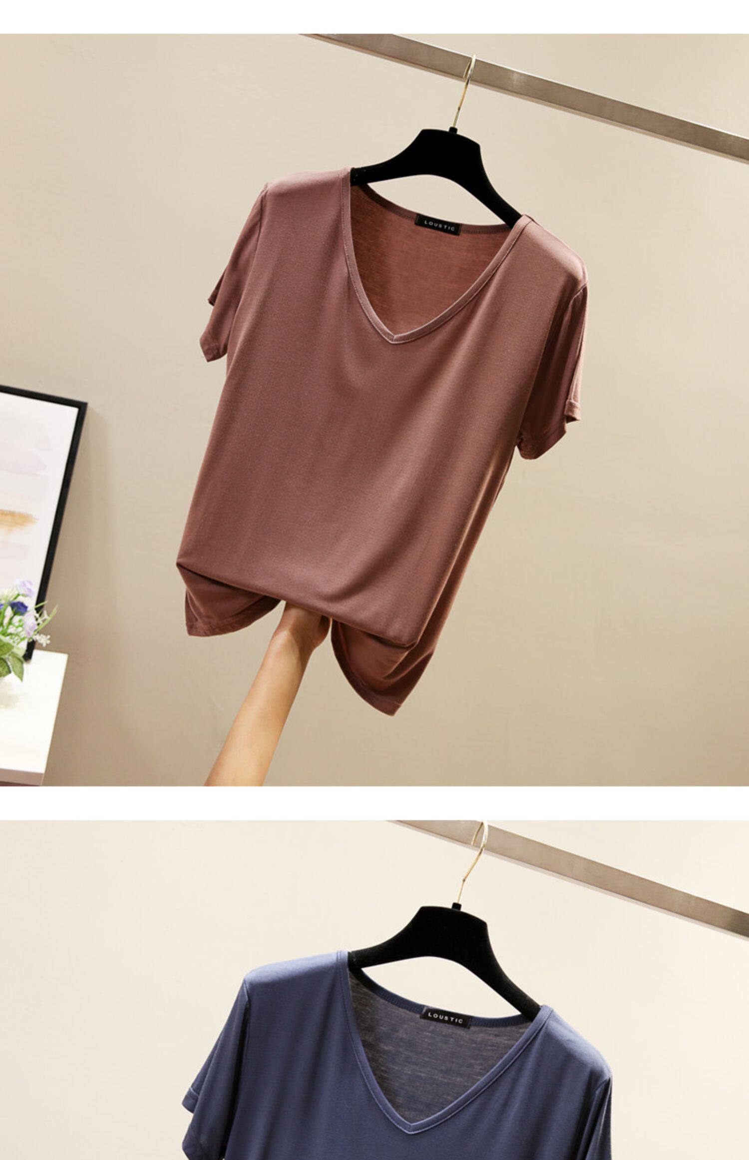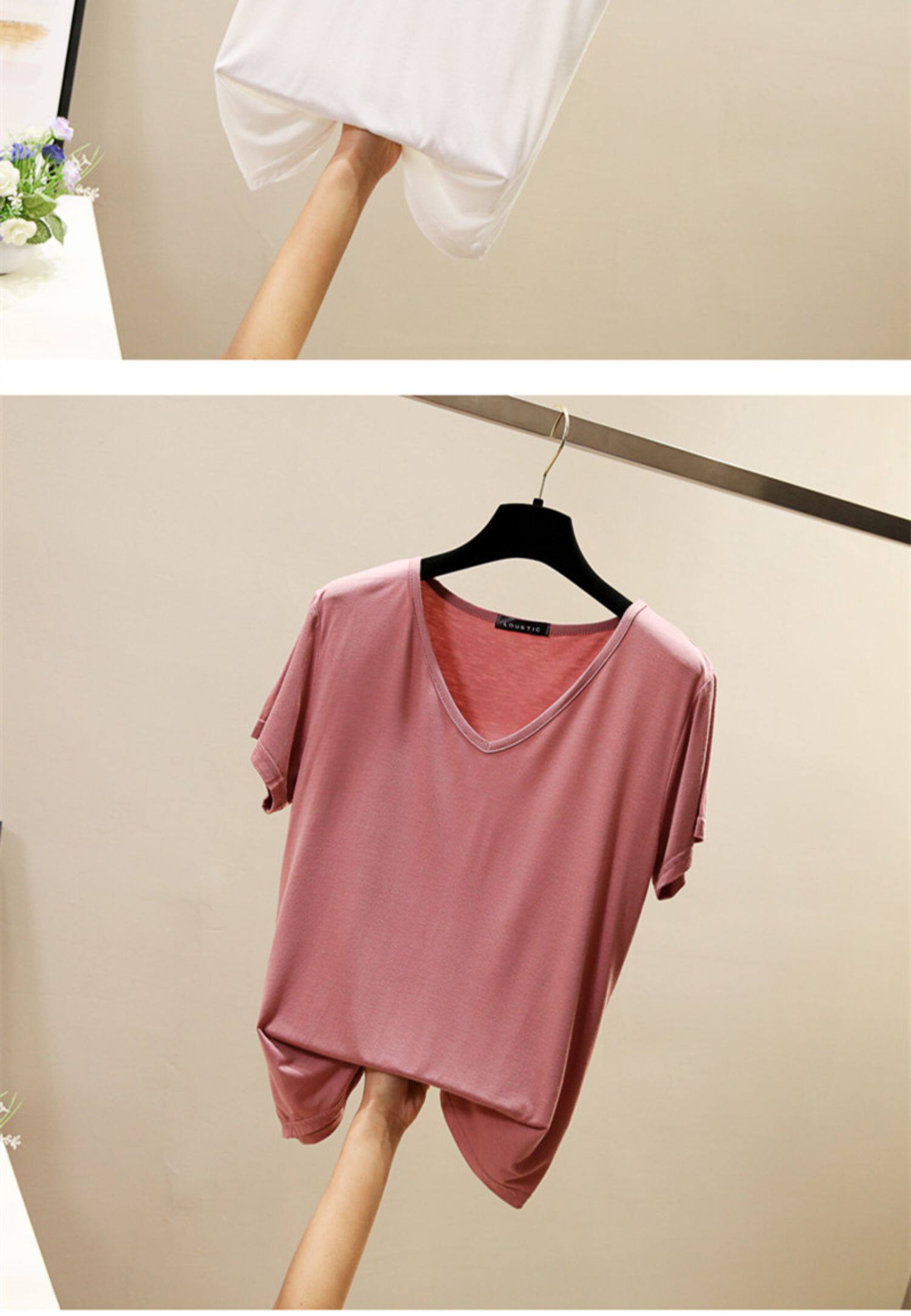 Летняя цветная базовая приятная телу футболка с коротким рукавом, V-образный вырез, в корейском стиле, большой размер, по фигуре
