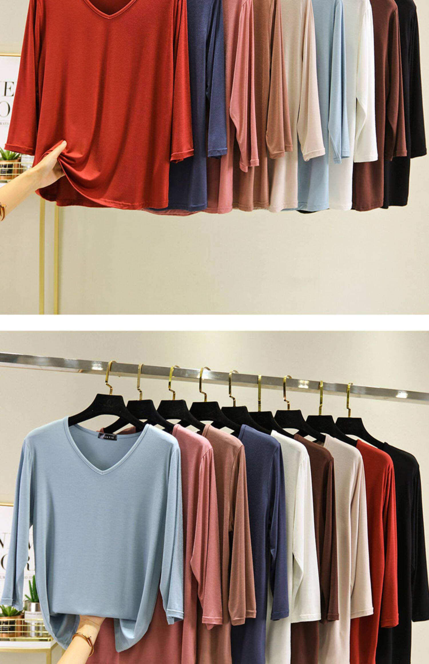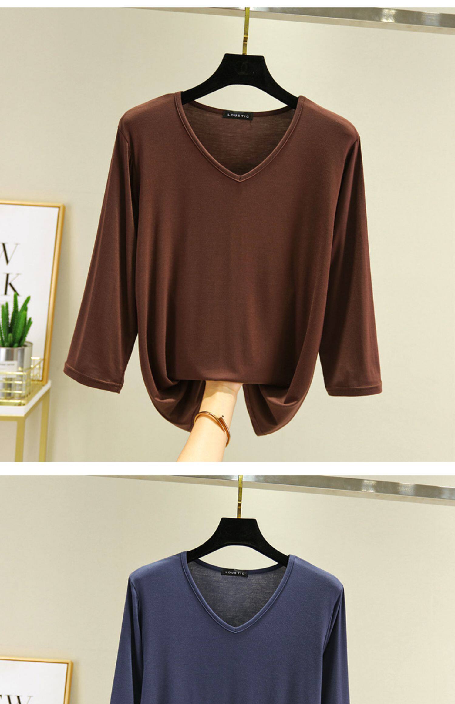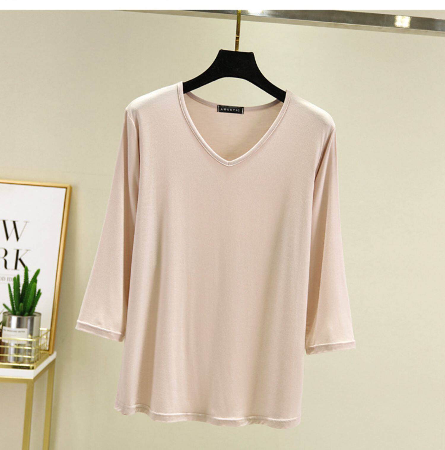 Базовая приятная телу осенняя цветная футболка, V-образный вырез, большой размер, по фигуре