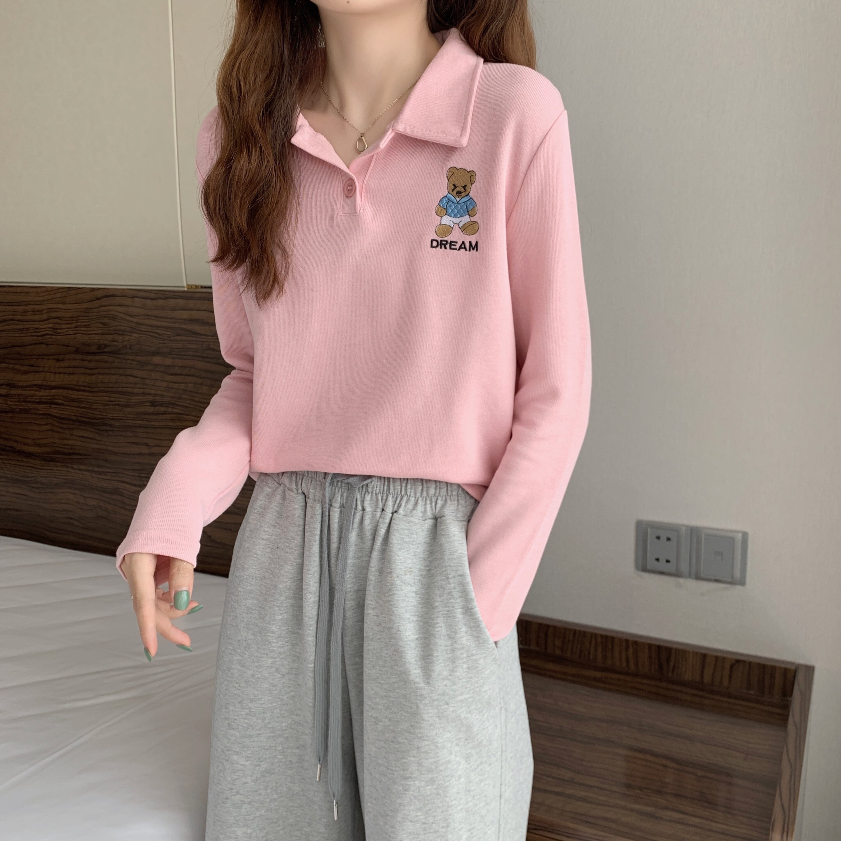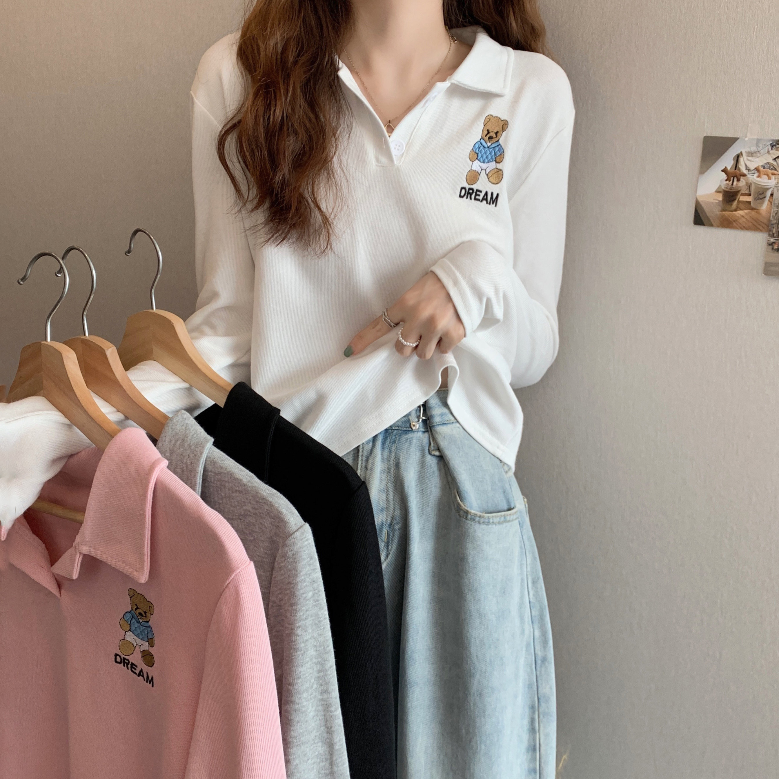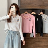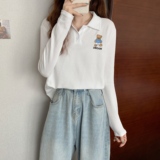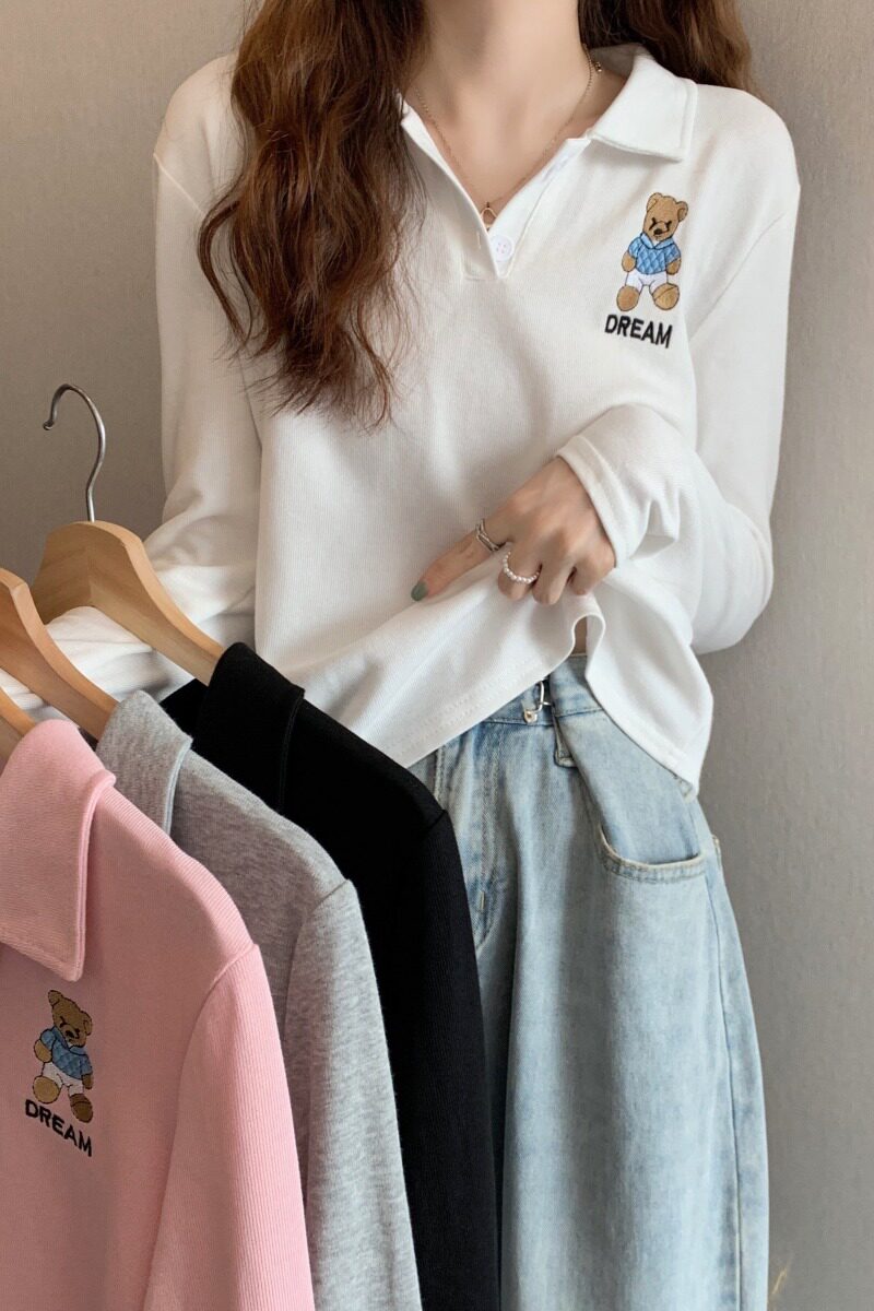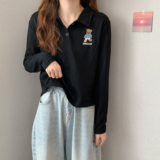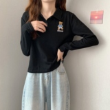 Tide, лонгслив, осенняя дизайнерская короткая футболка polo, с медвежатами, с вышивкой, коллекция 2023, оверсайз, свободный крой