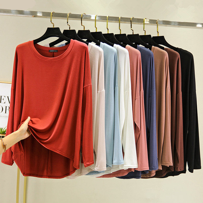 Осенняя демисезонная футболка, тонкий лонгслив с круглым воротником, цветная рубашка, коллекция 2021, оверсайз