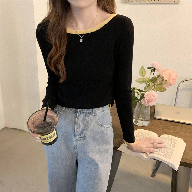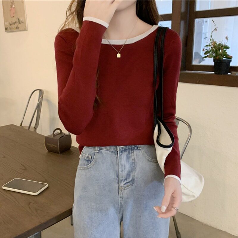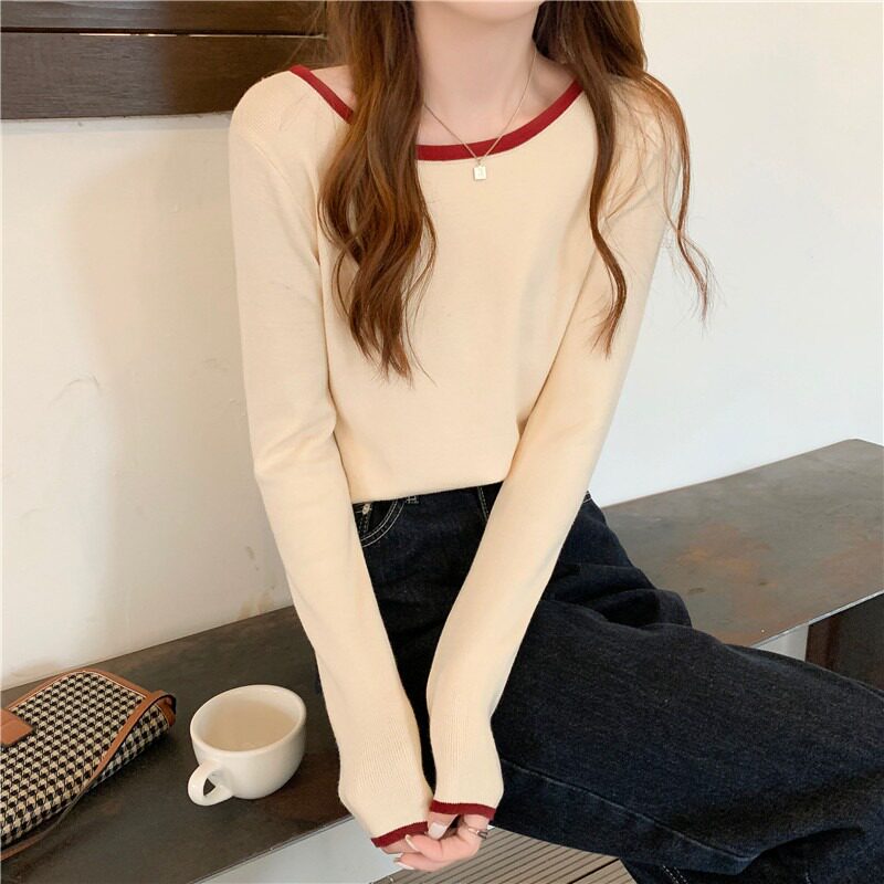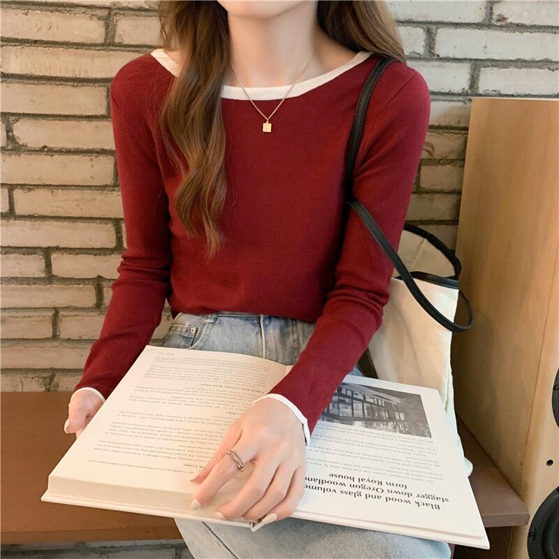 Трикотажная осенняя футболка с круглым воротником, осенний базовый приятный телу лонгслив, облегающий крой