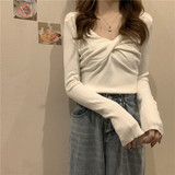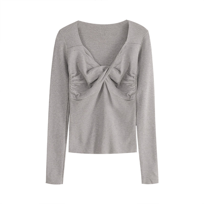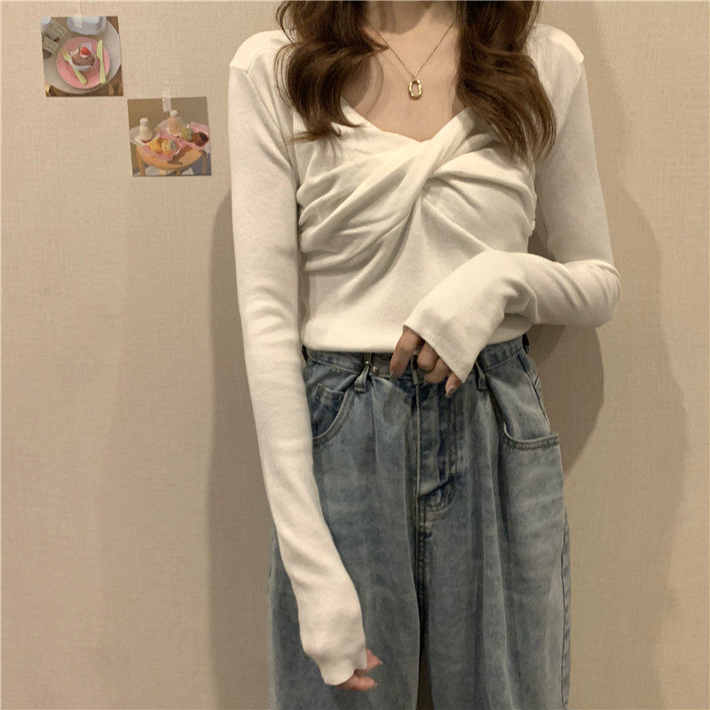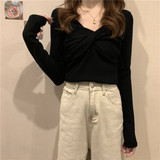 Базовый приятный телу осенний дизайнерский трикотажный весенний короткий лонгслив, тренд сезона