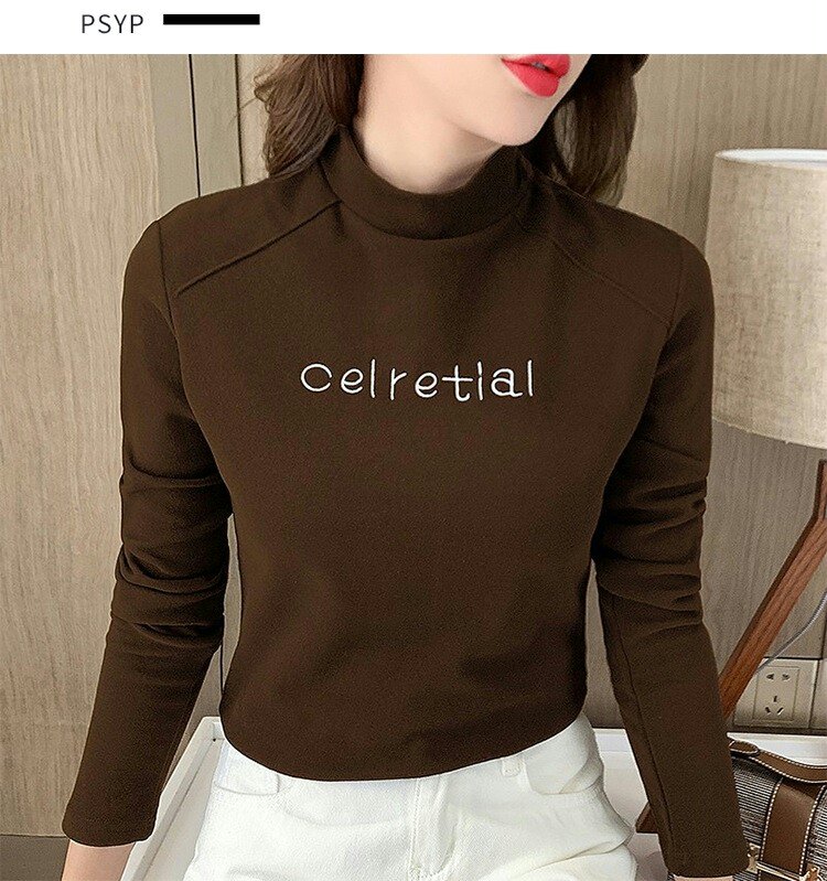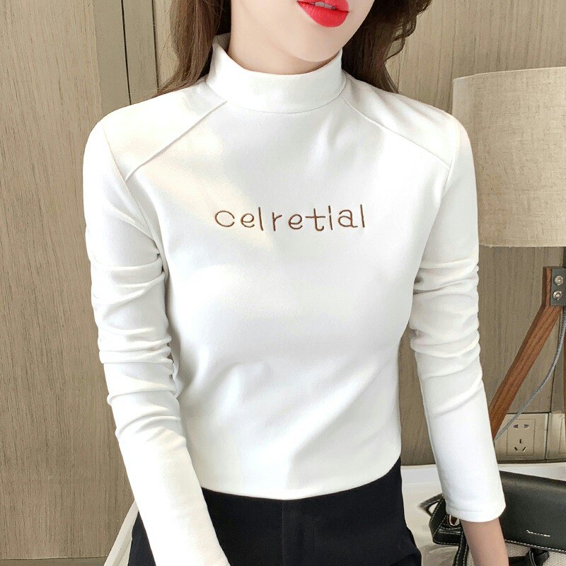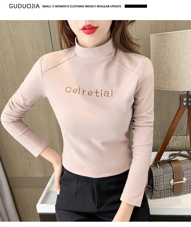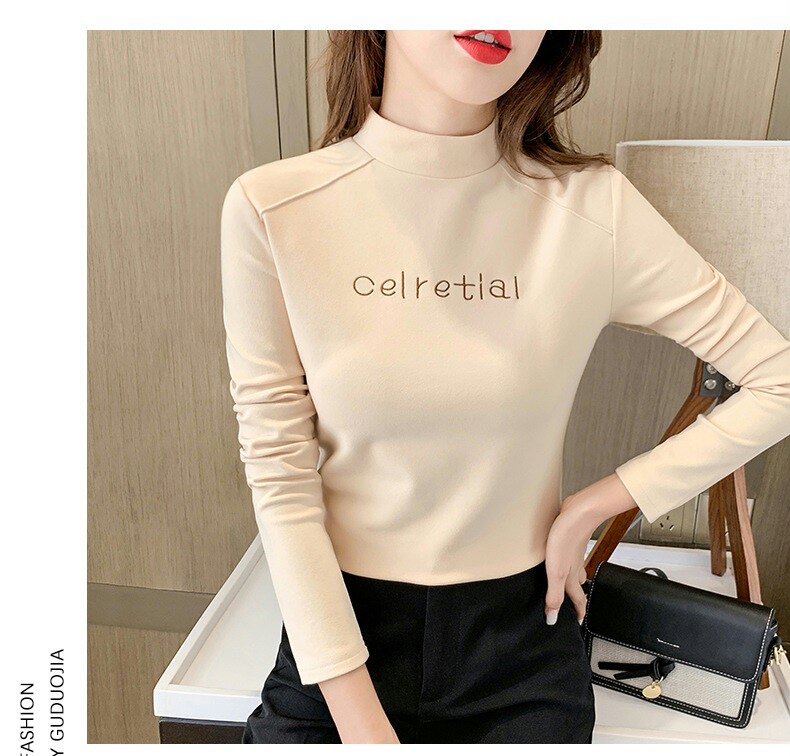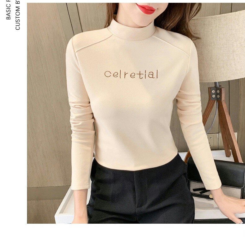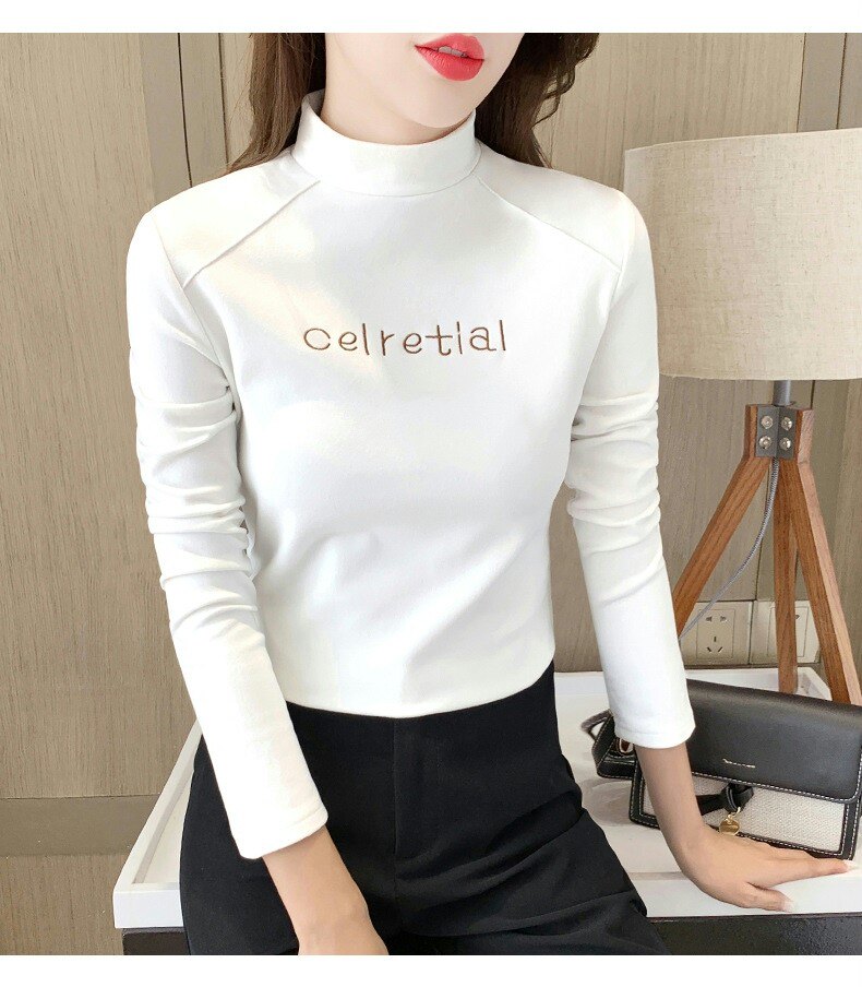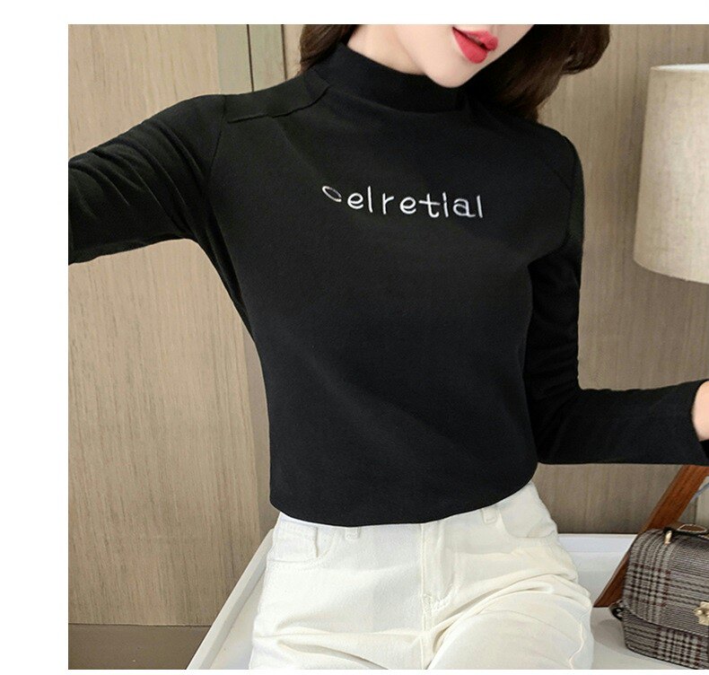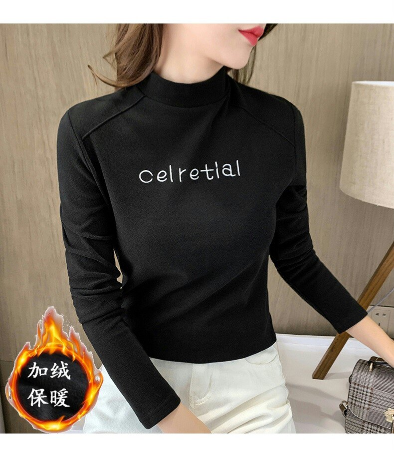 Бархатная базовая приятная телу осенняя черная флисовая футболка, высокий воротник, в западном стиле, 2022