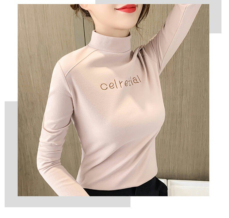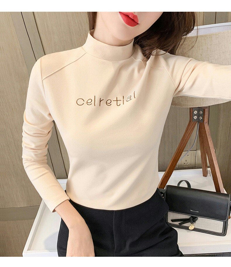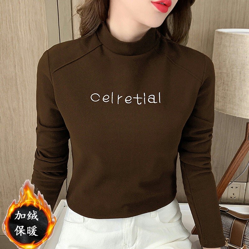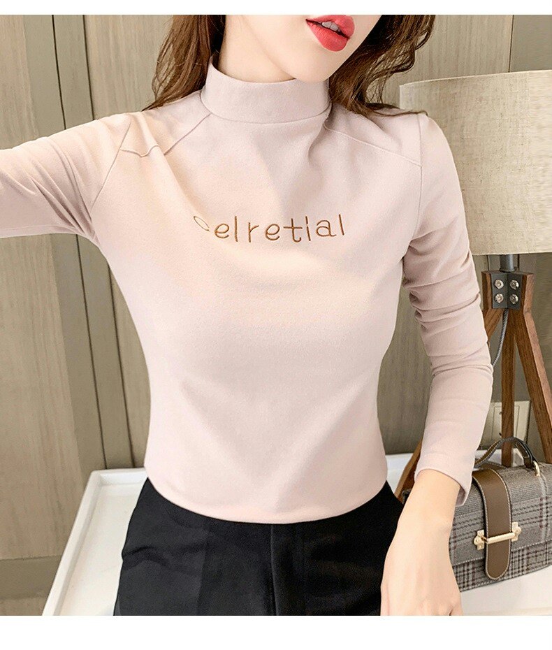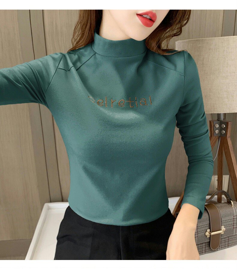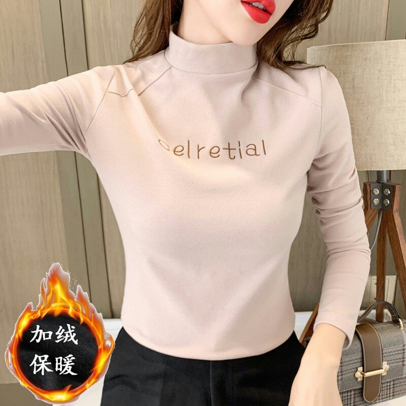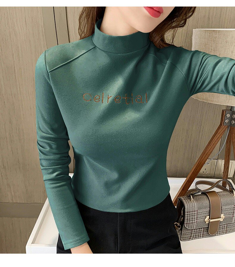 Бархатная базовая приятная телу осенняя черная флисовая футболка, высокий воротник, в западном стиле, 2022