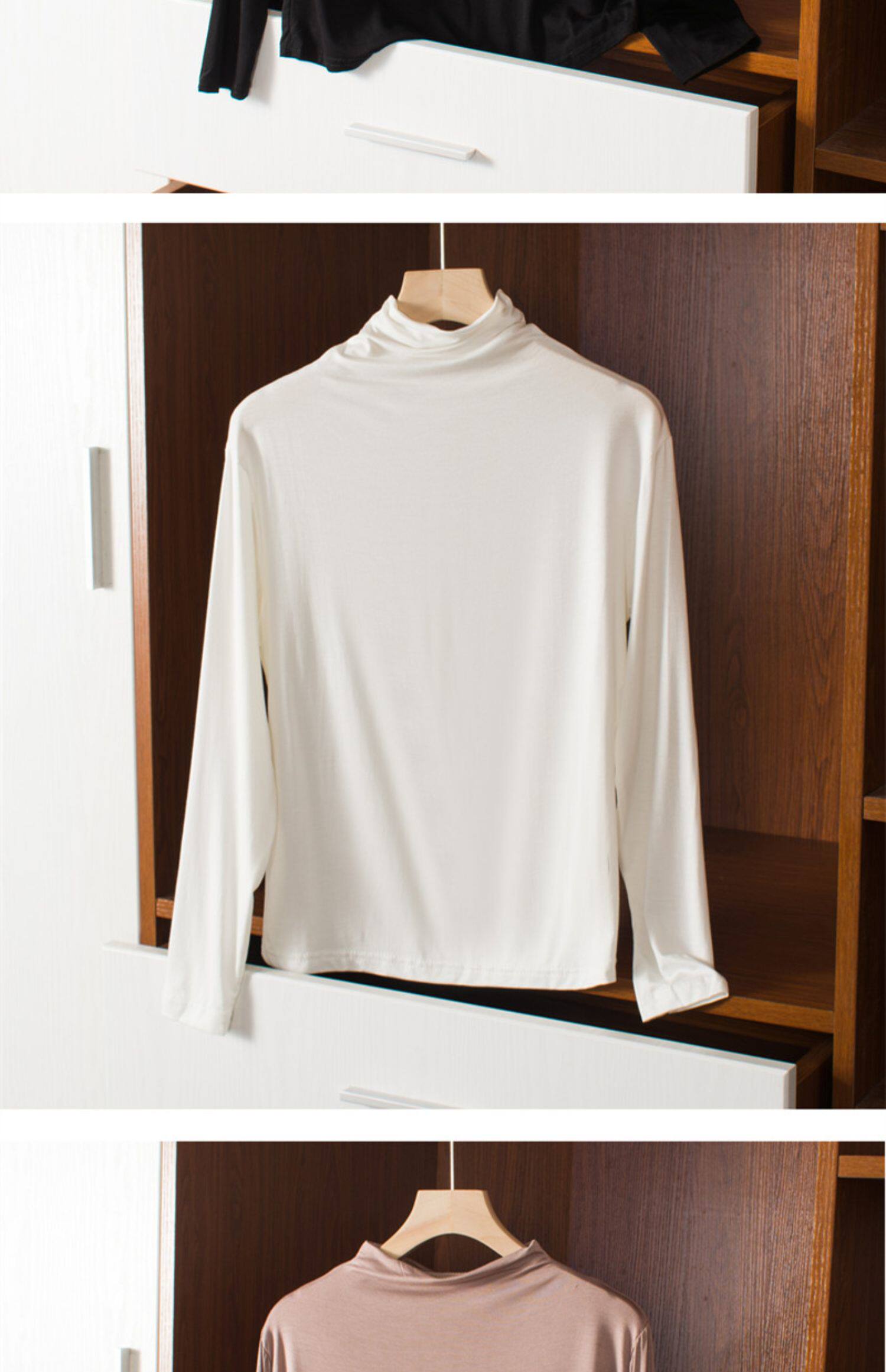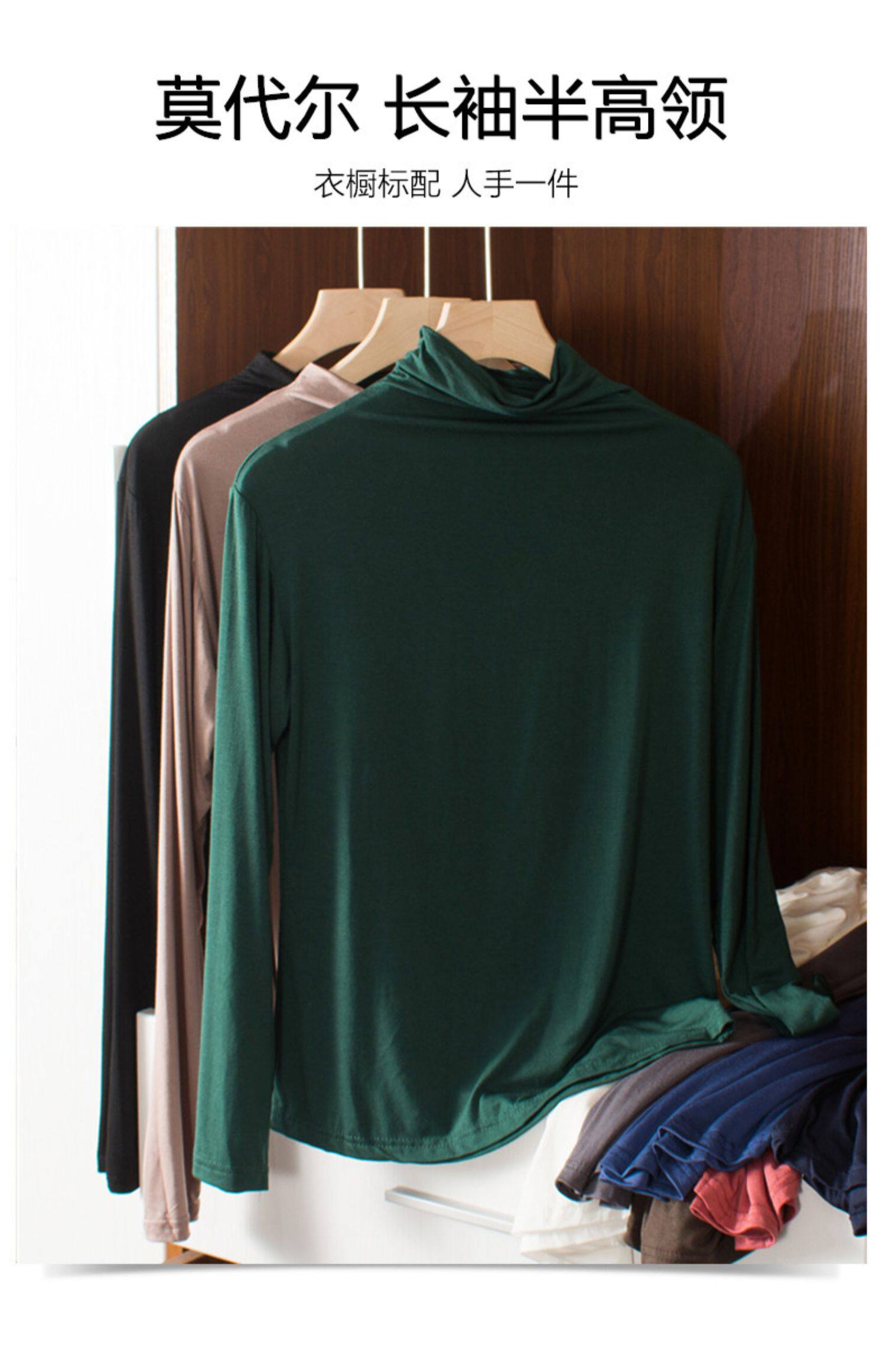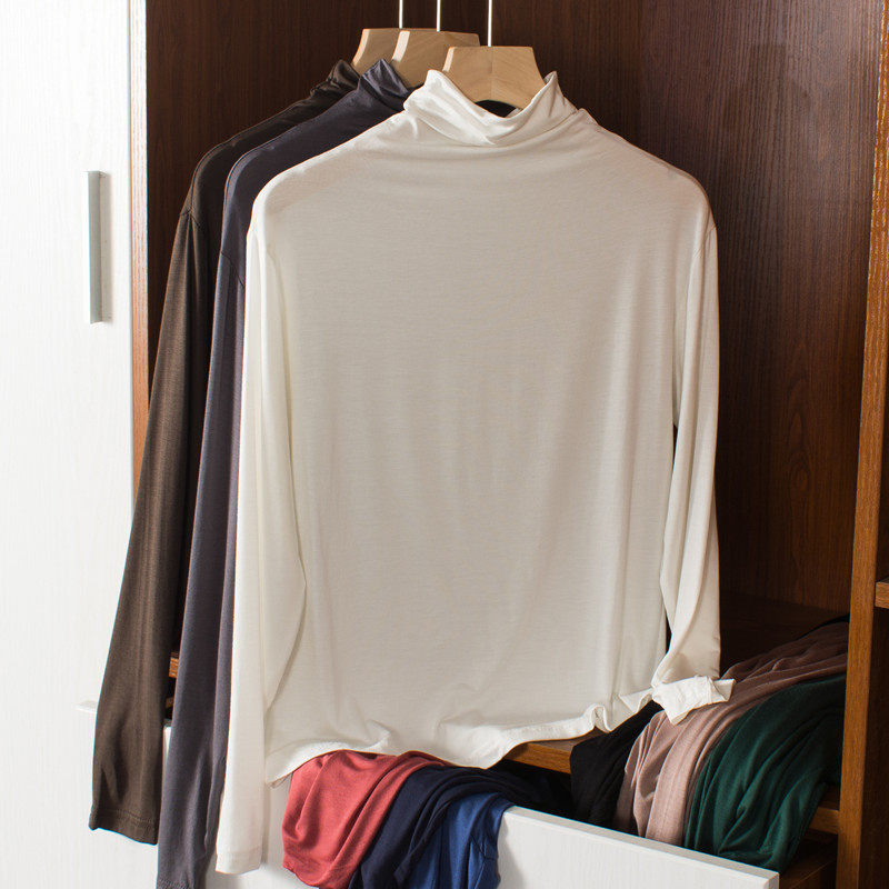 Осенний лонгслив, базовая рубашка, цветное термобелье, высокий воротник, большой размер, по фигуре