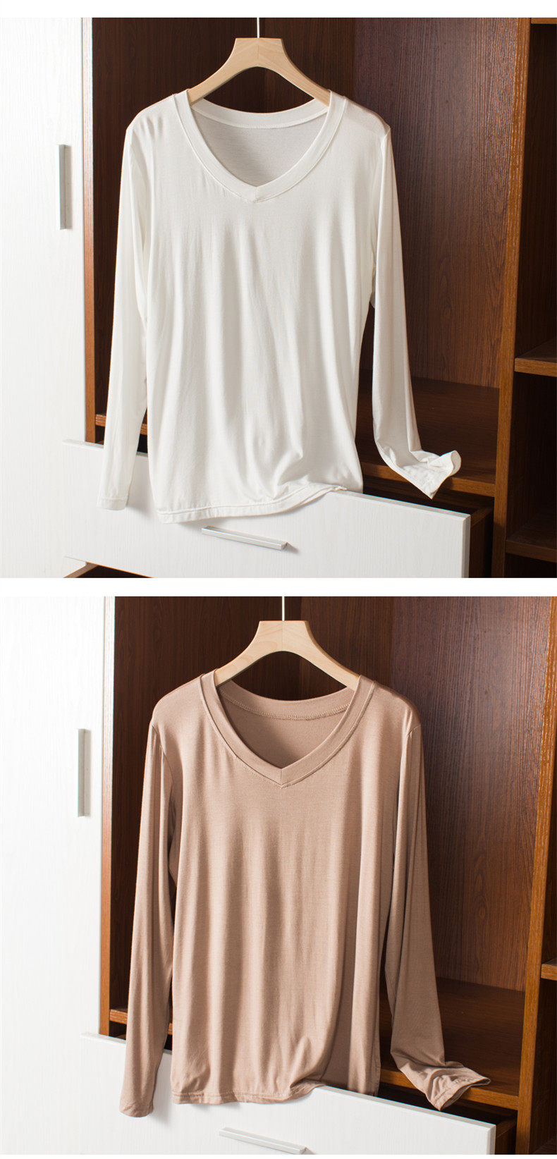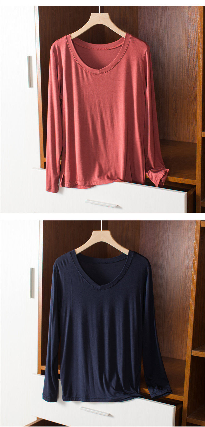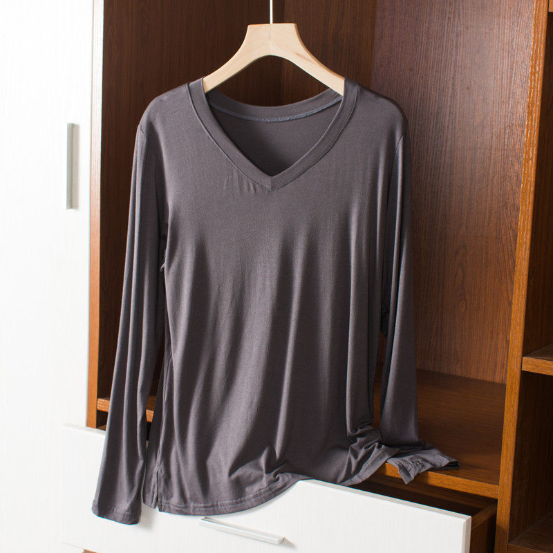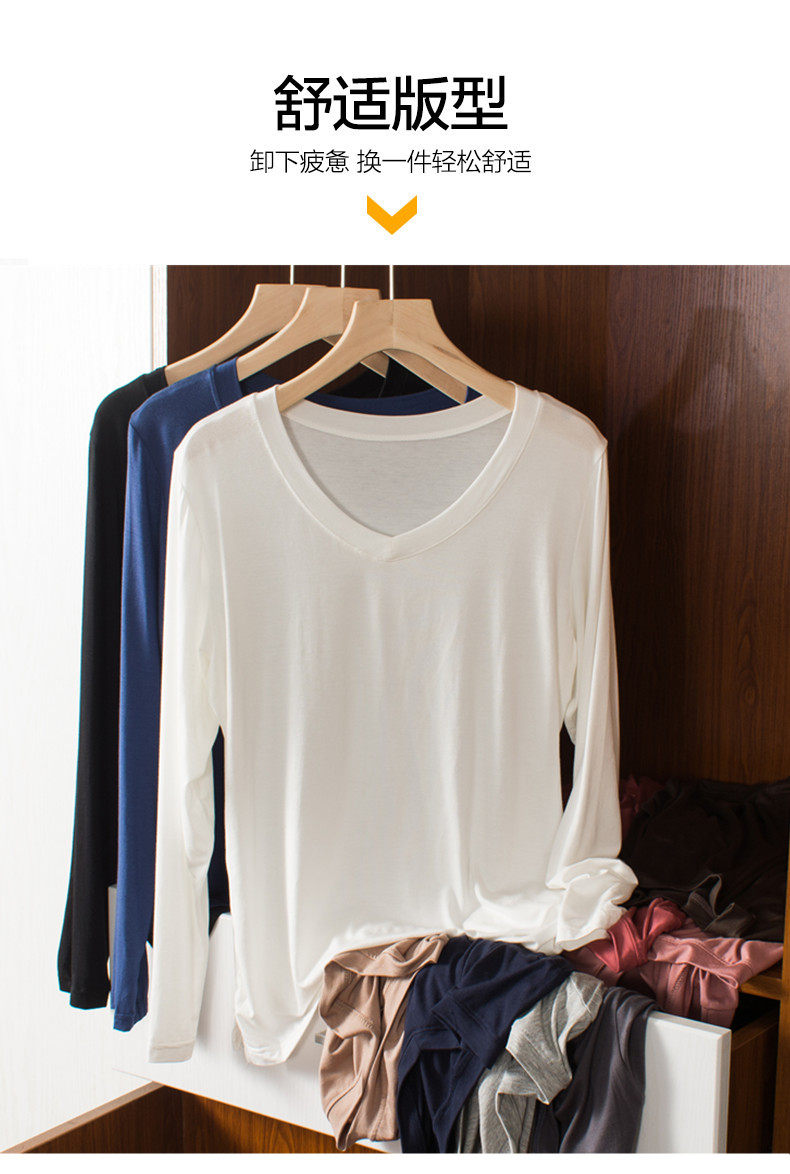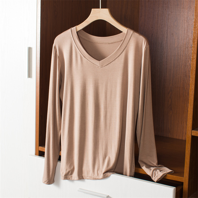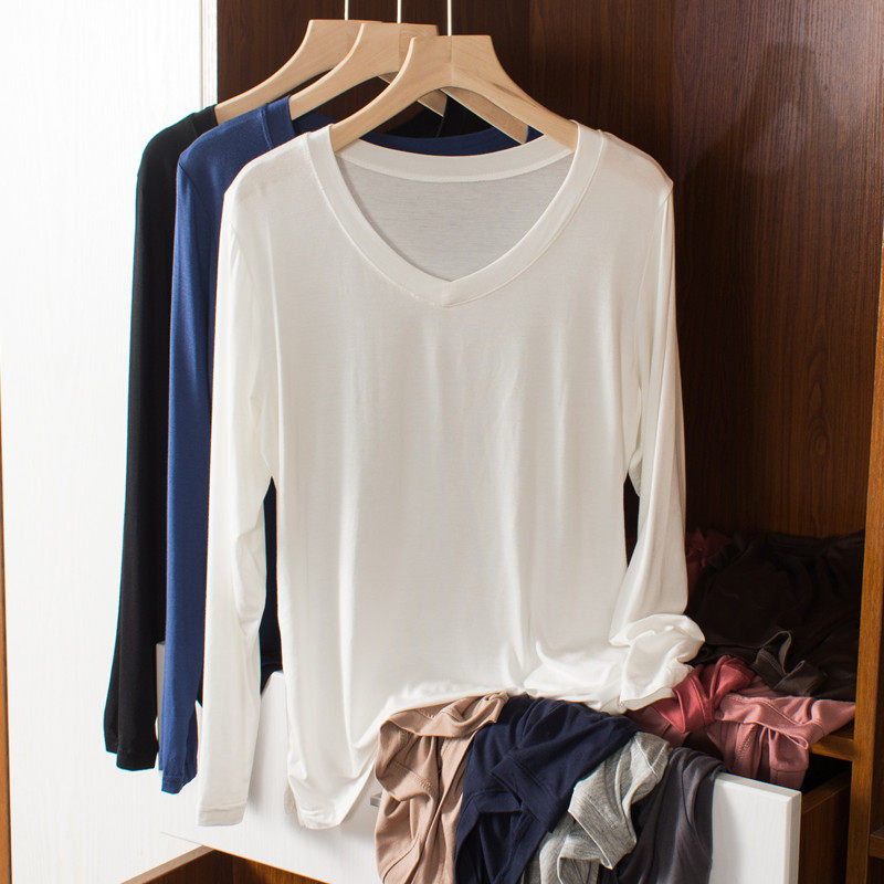 Тонкий базовый приятный телу осенний лонгслив, цветная футболка, V-образный вырез, оверсайз