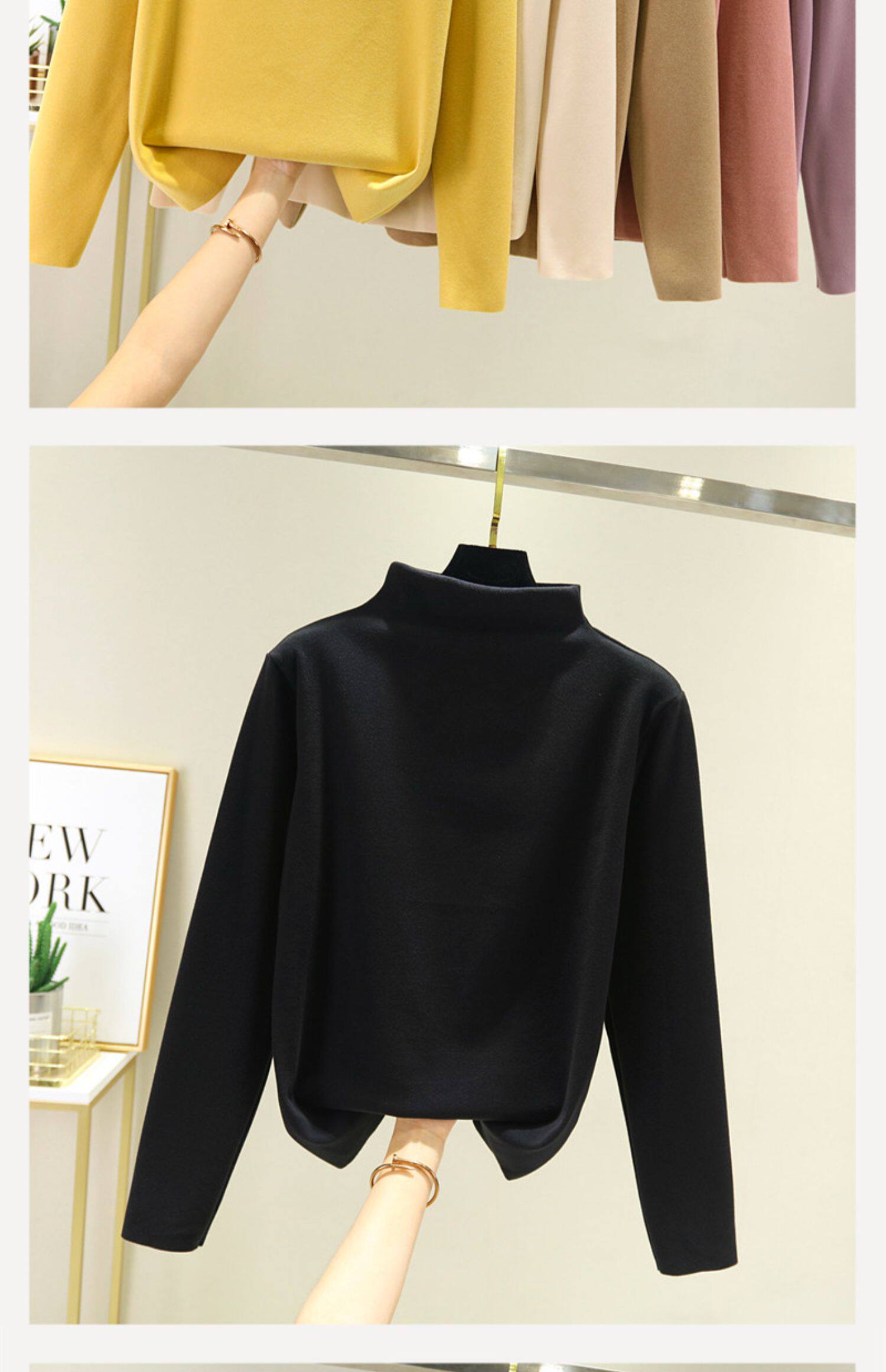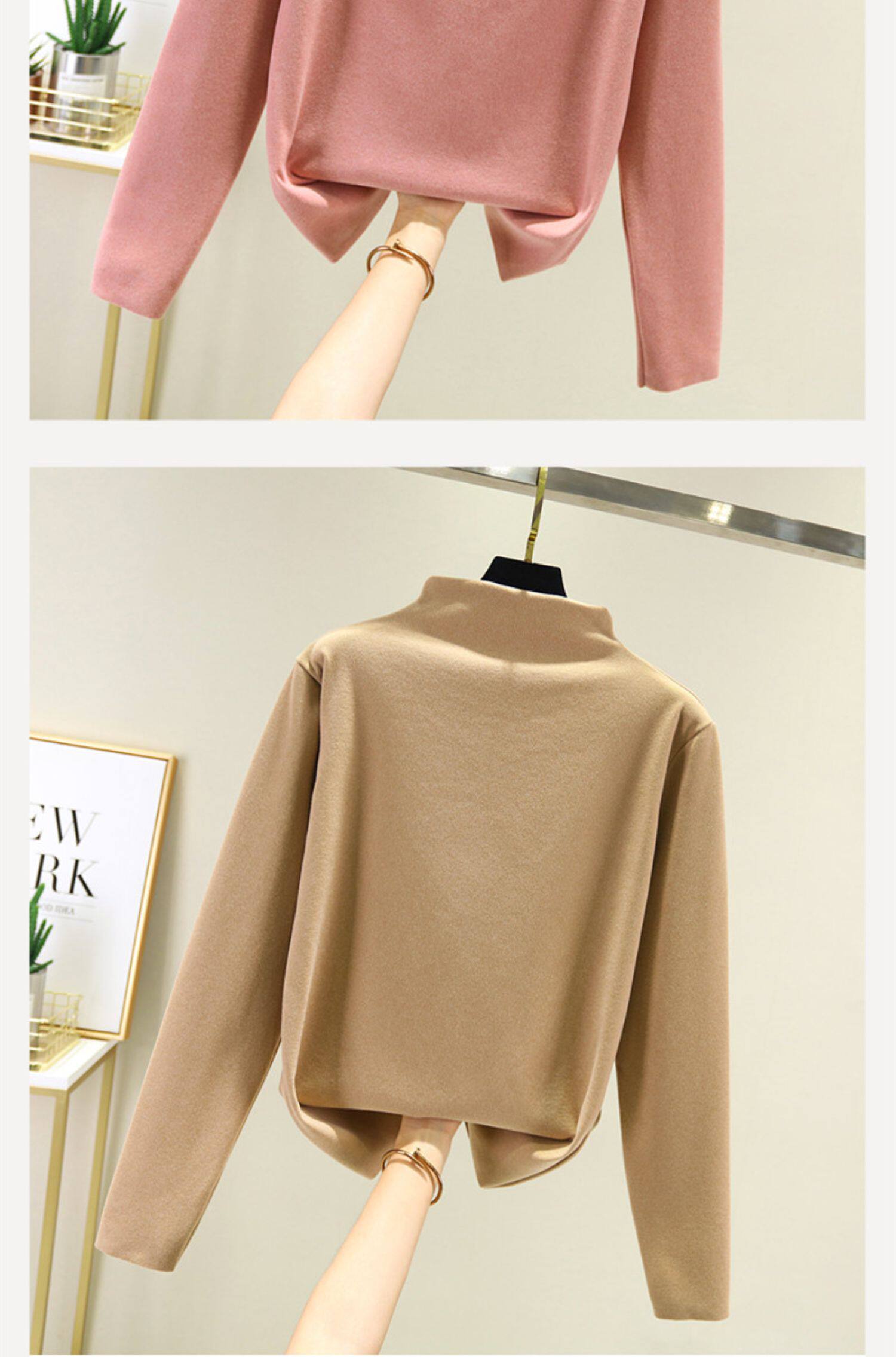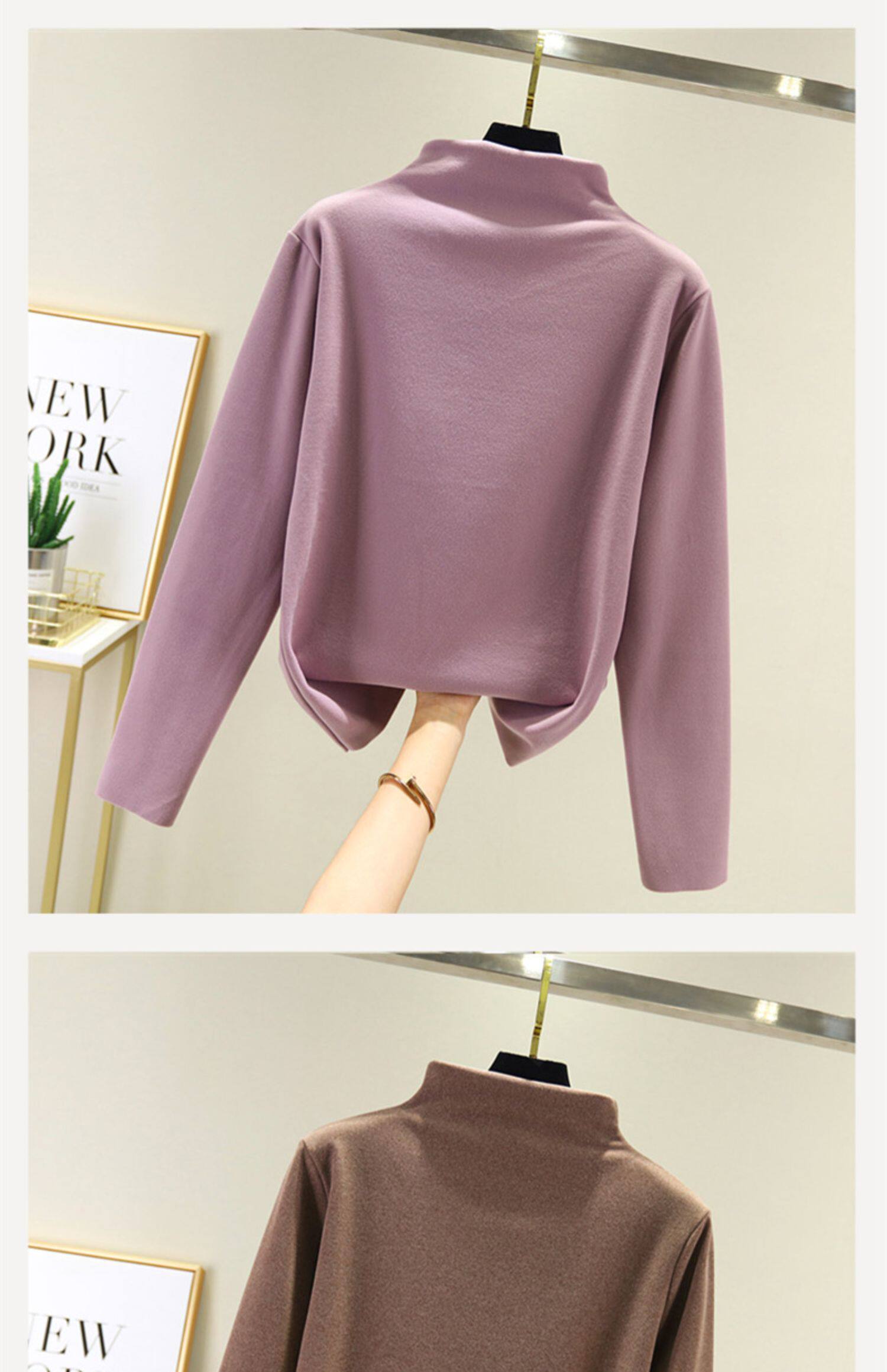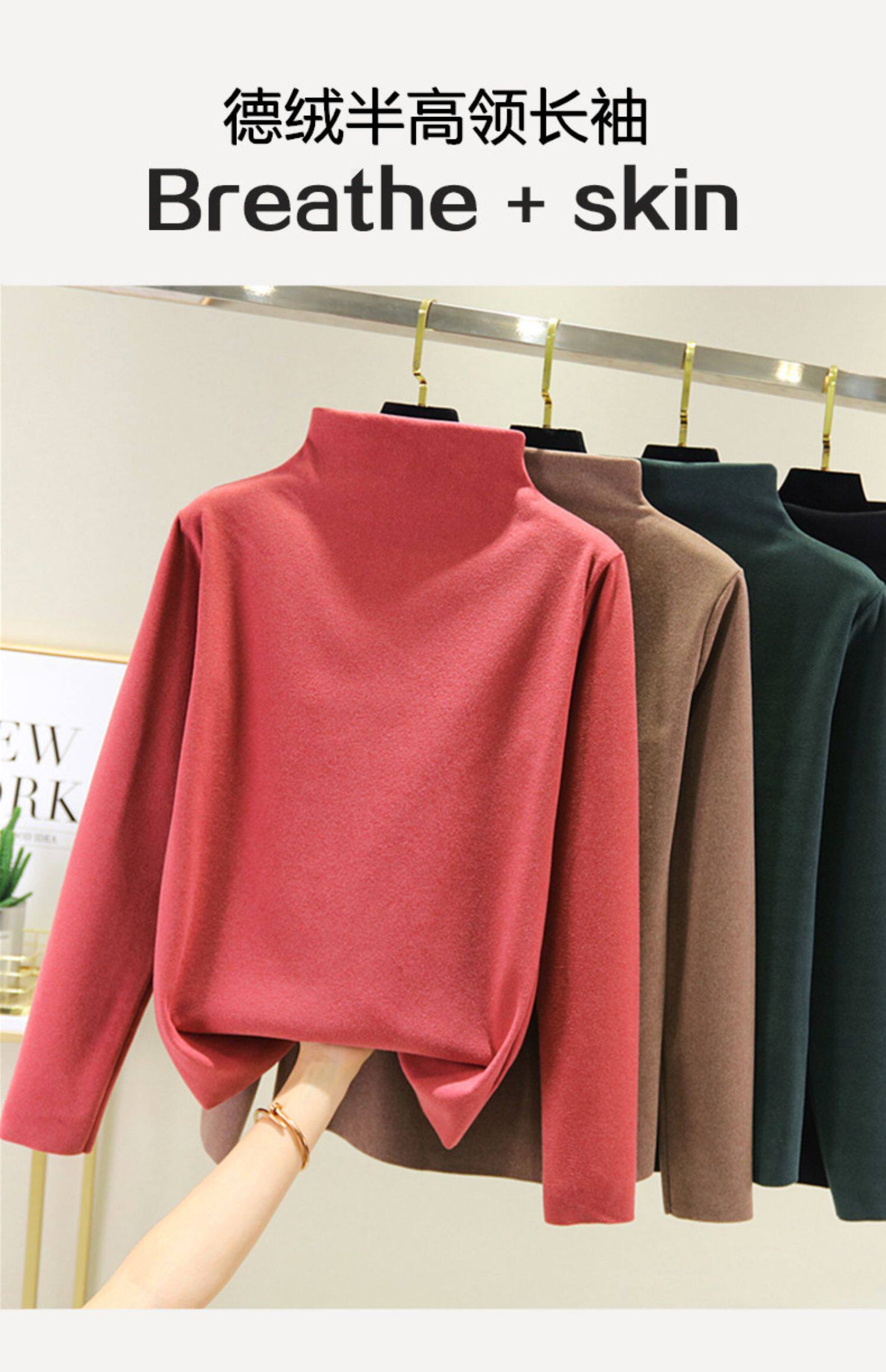 Двусторонний бархатный базовый приятный телу демисезонный удерживающий тепло утепленный лонгслив, высокий воротник, большой размер