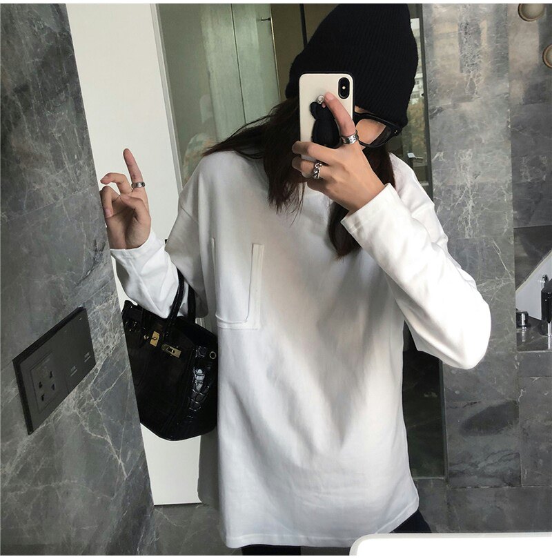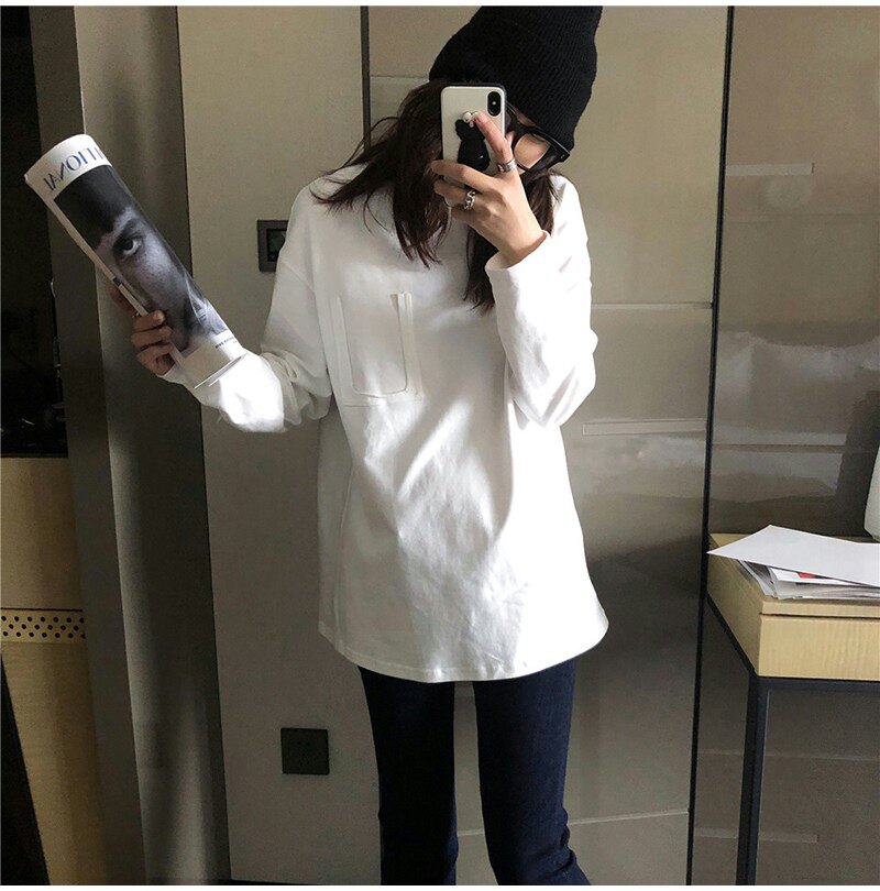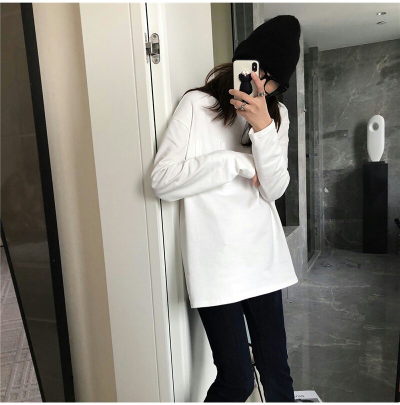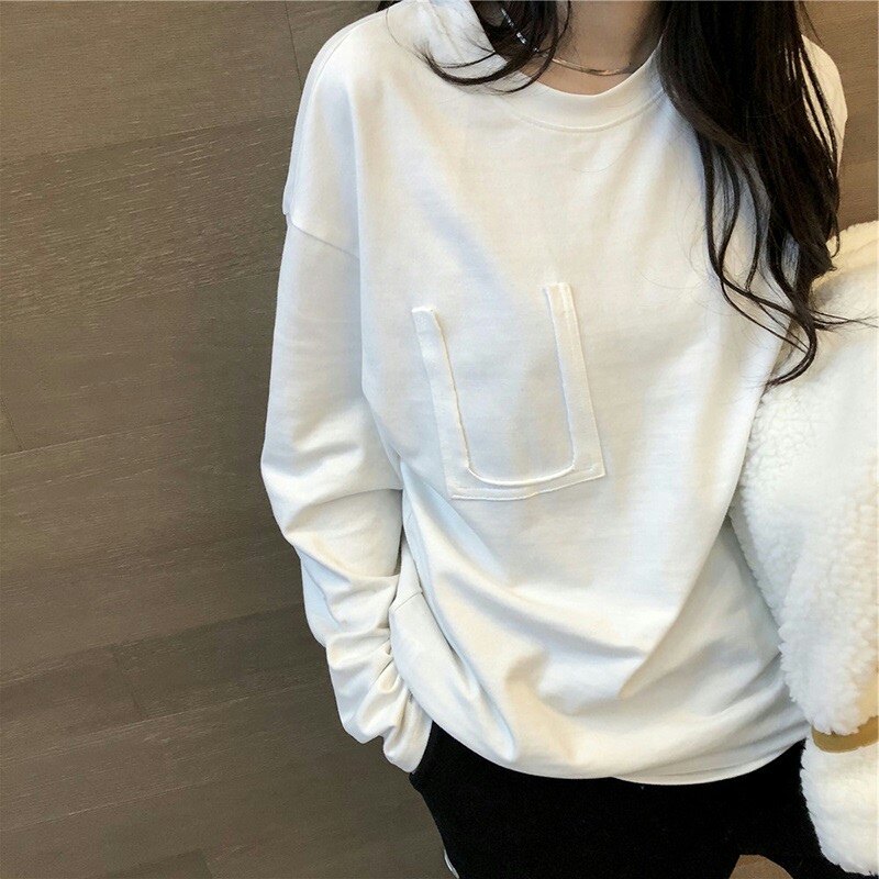 Tide, белая хлопковая утепленная утепленный лонгслив, коллекция 2022, в корейском стиле