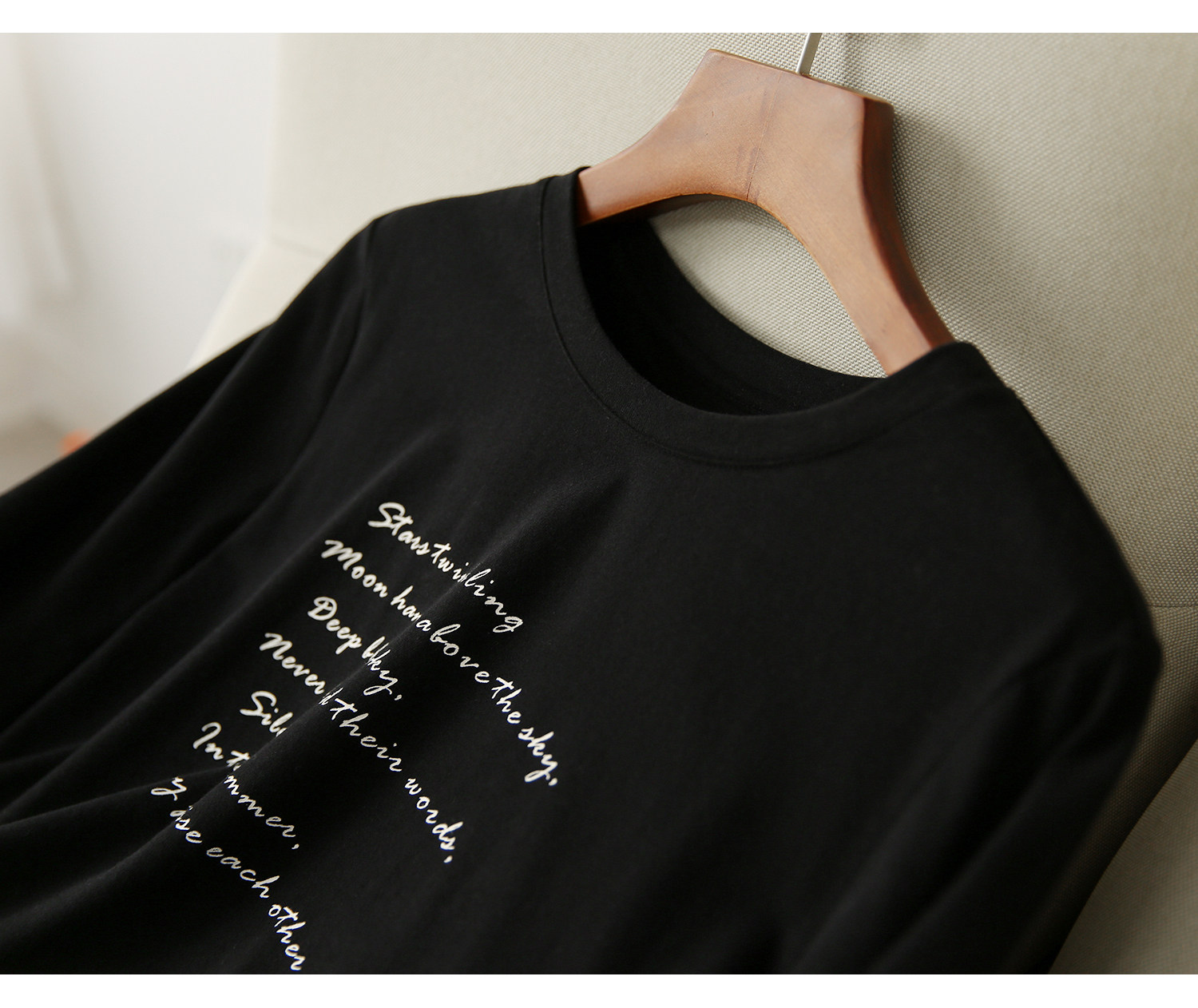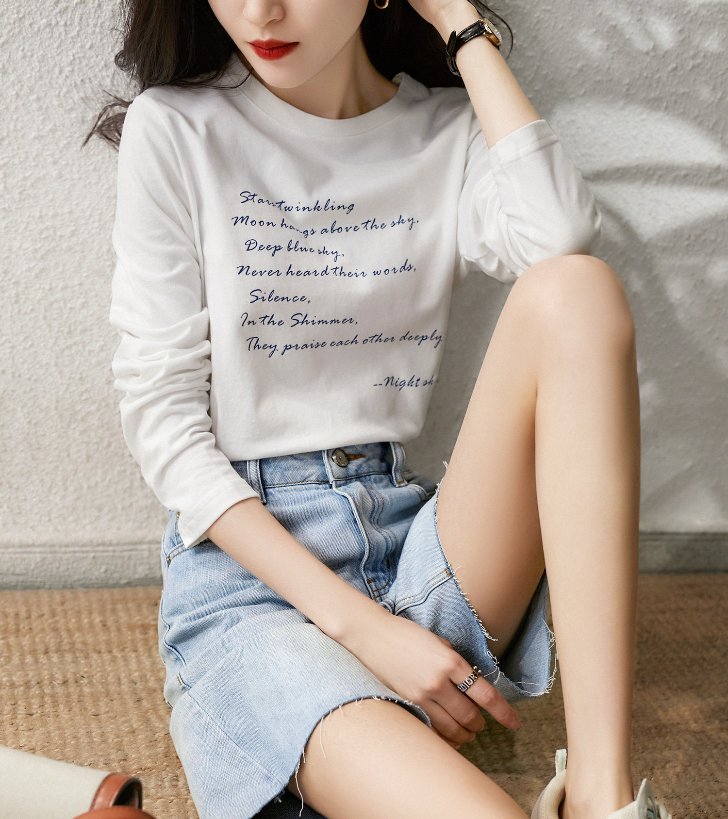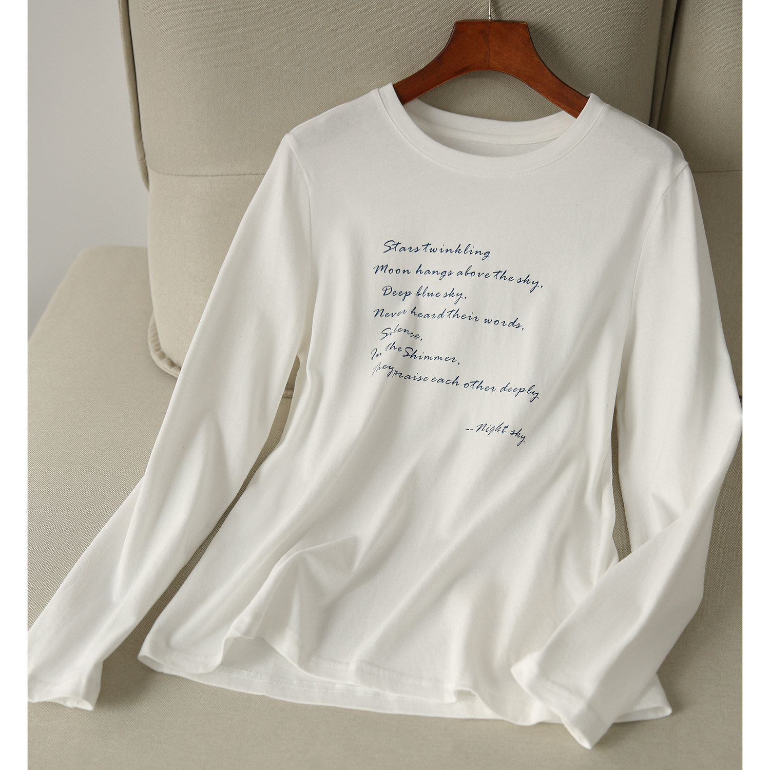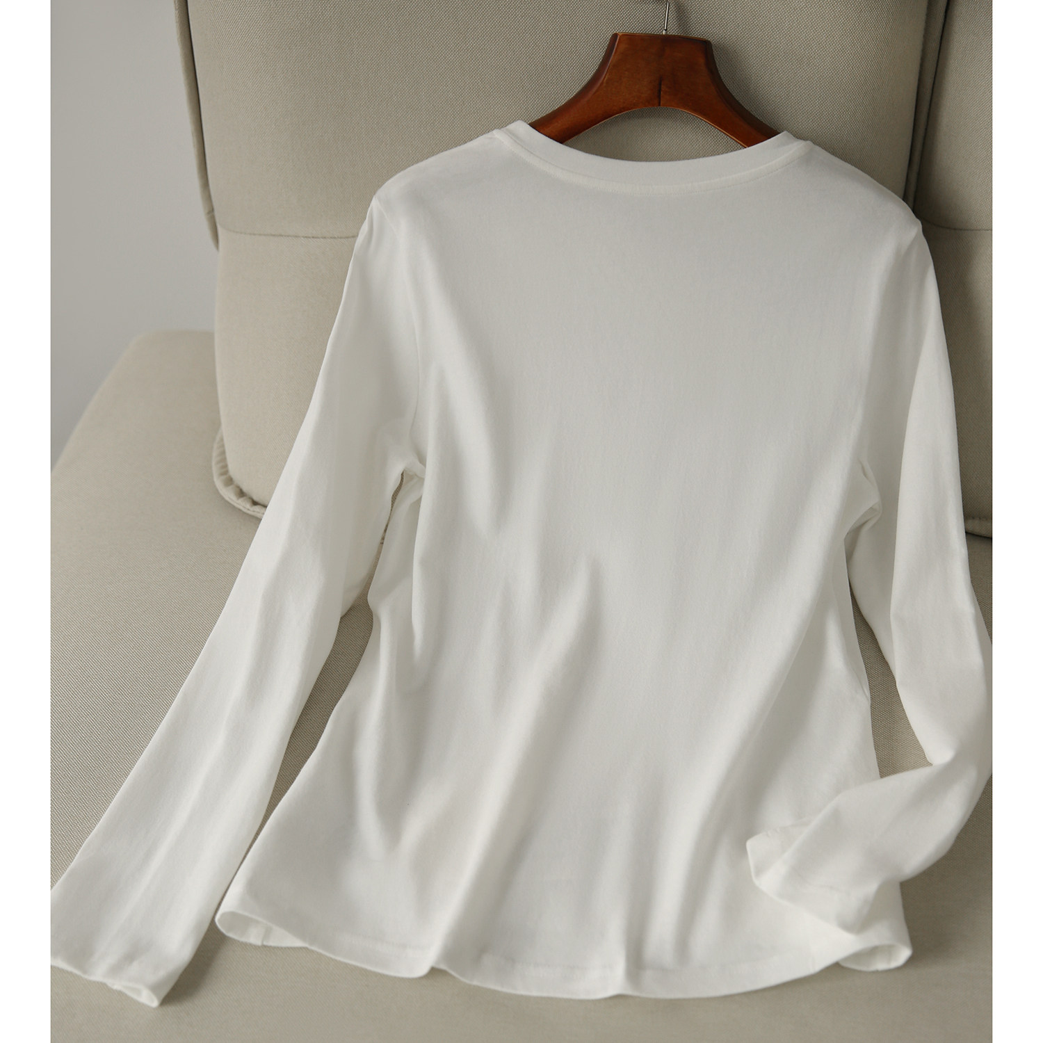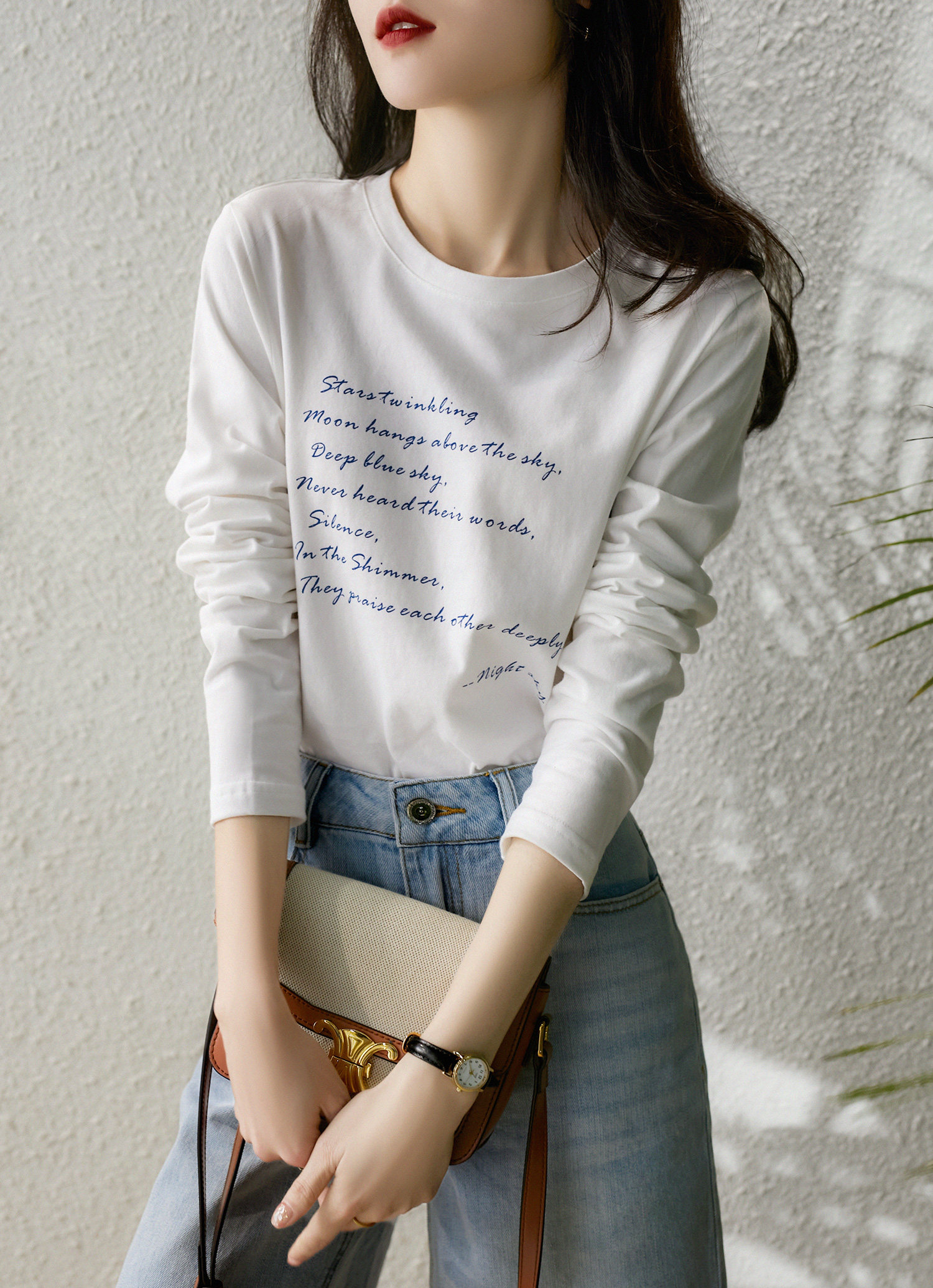 の[XYG381076AG] Xiaohange классическая сложенная черно-белая футболка из чистого хлопка с круглым вырезом и длинными рукавами