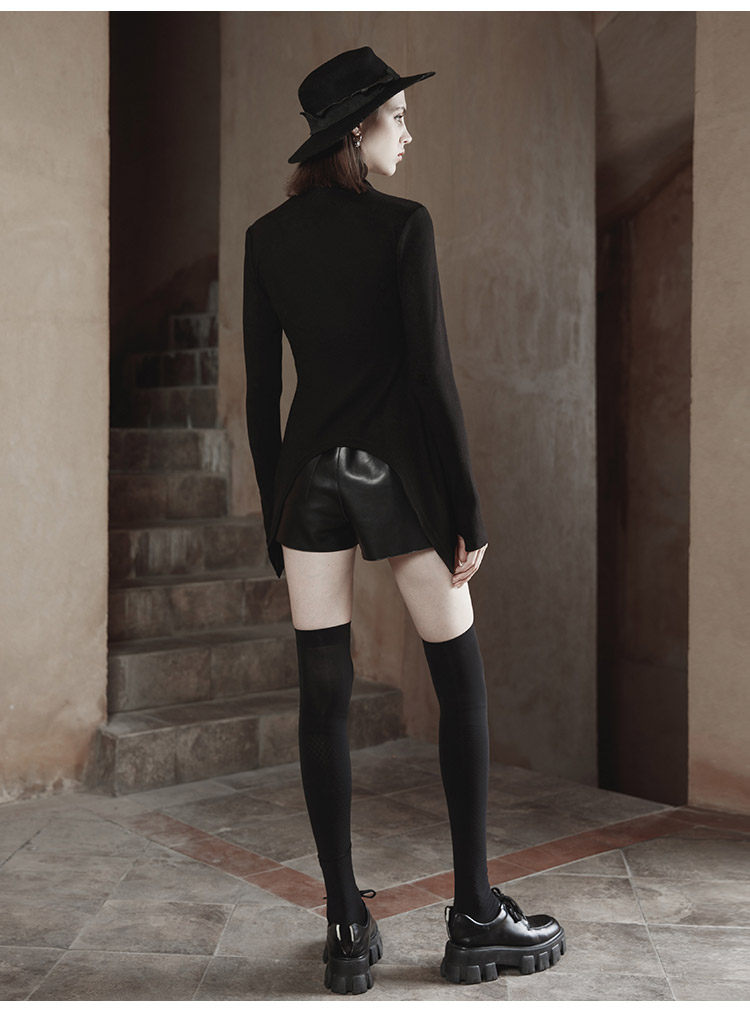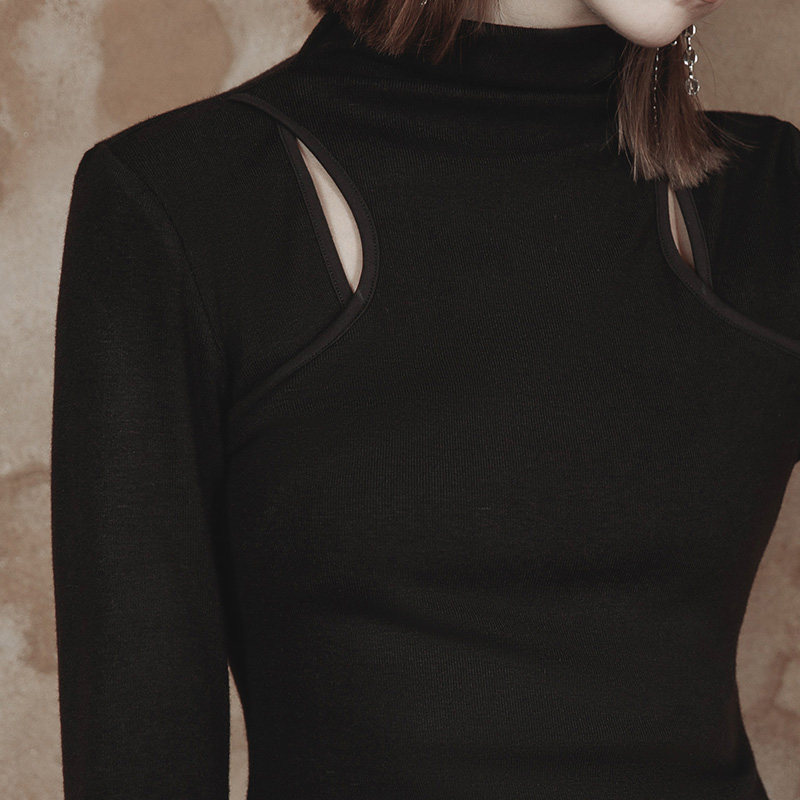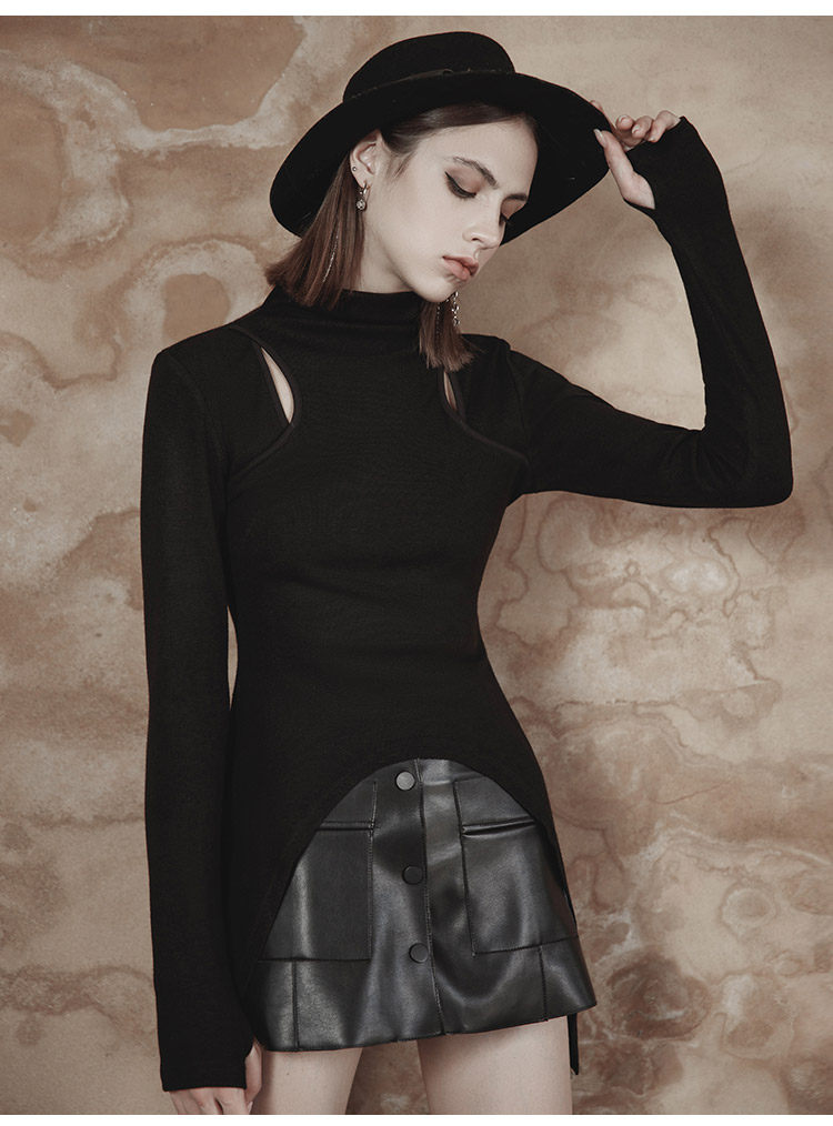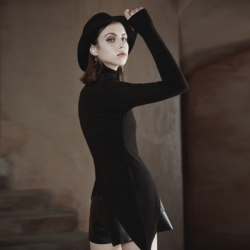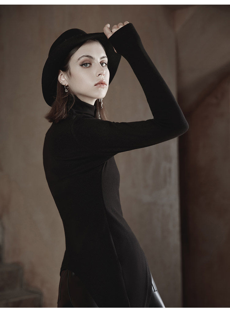 Демисезонный оригинальный дизайнерский черный сексуальный базовый приятный телу лонгслив, приталенная брендовая футболка, тренд сезона