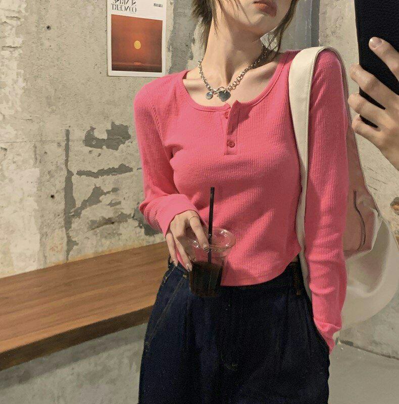 Базовая приятная телу осенняя приталенная футболка, большой размер, в западном стиле