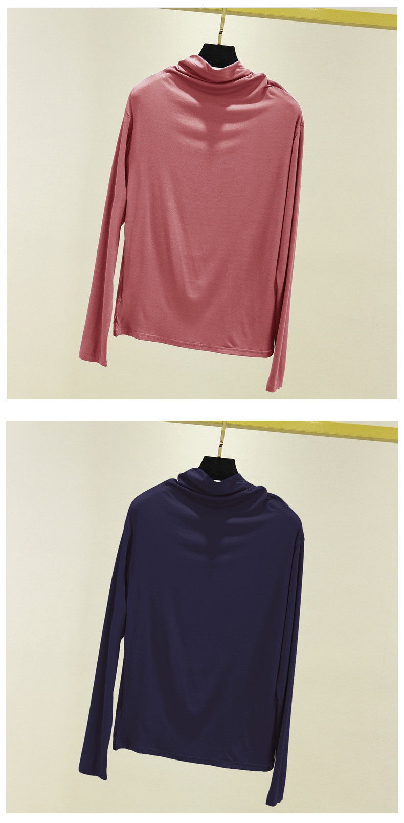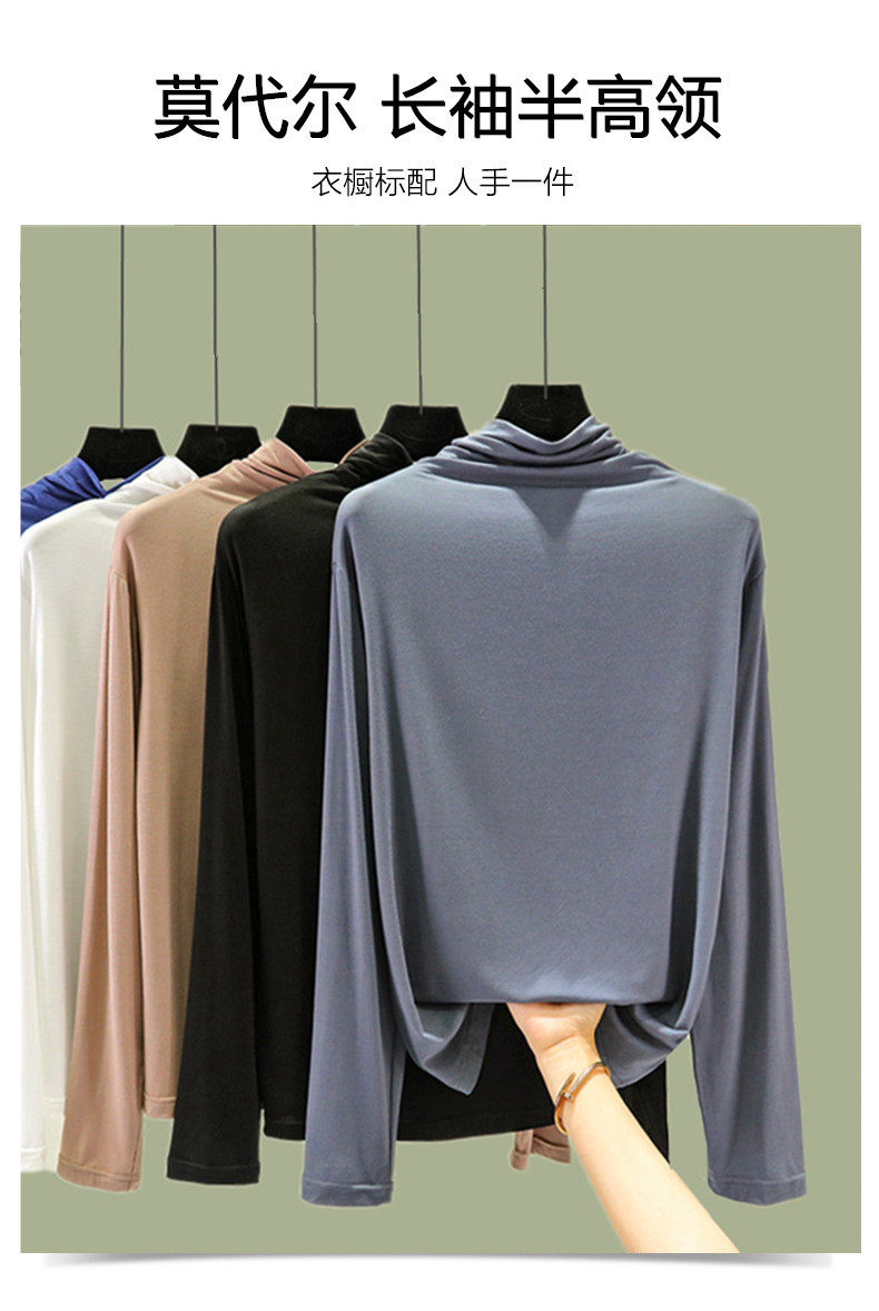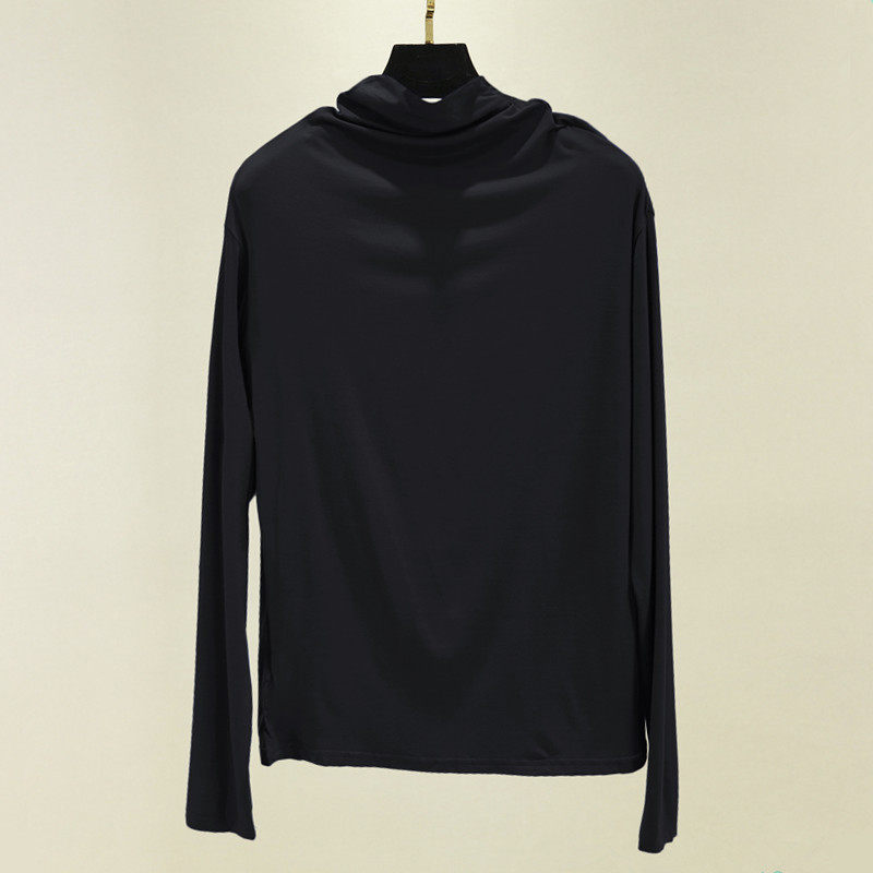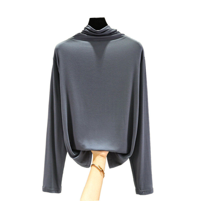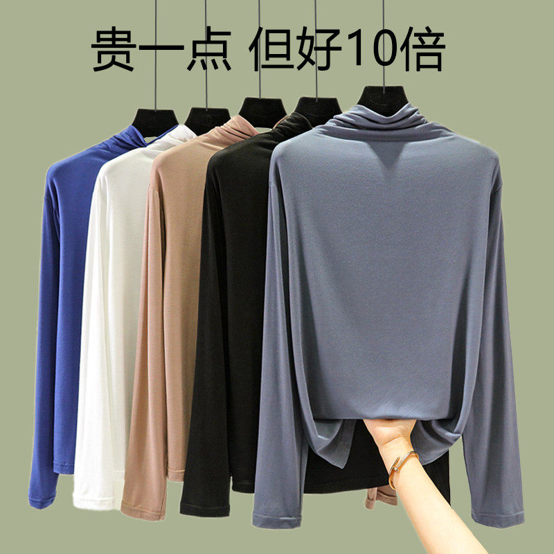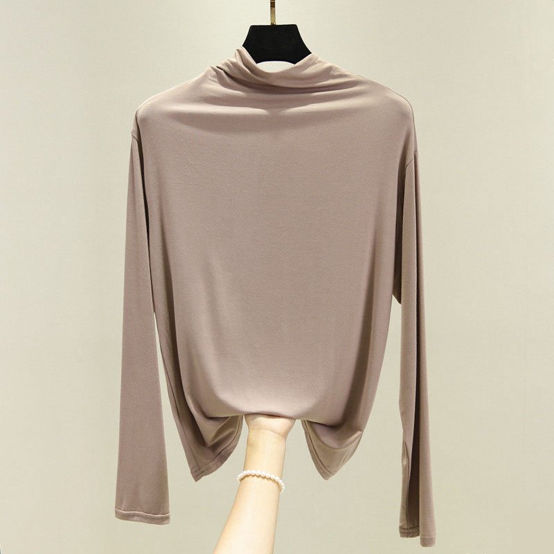 Базовый приятный телу осенний лонгслив, футболка, термобелье, высокий воротник, в западном стиле, облегающий крой