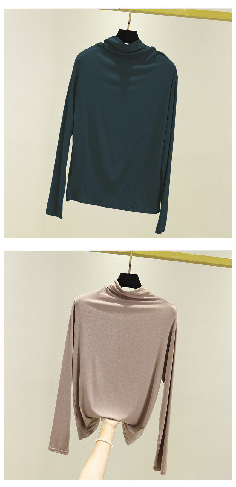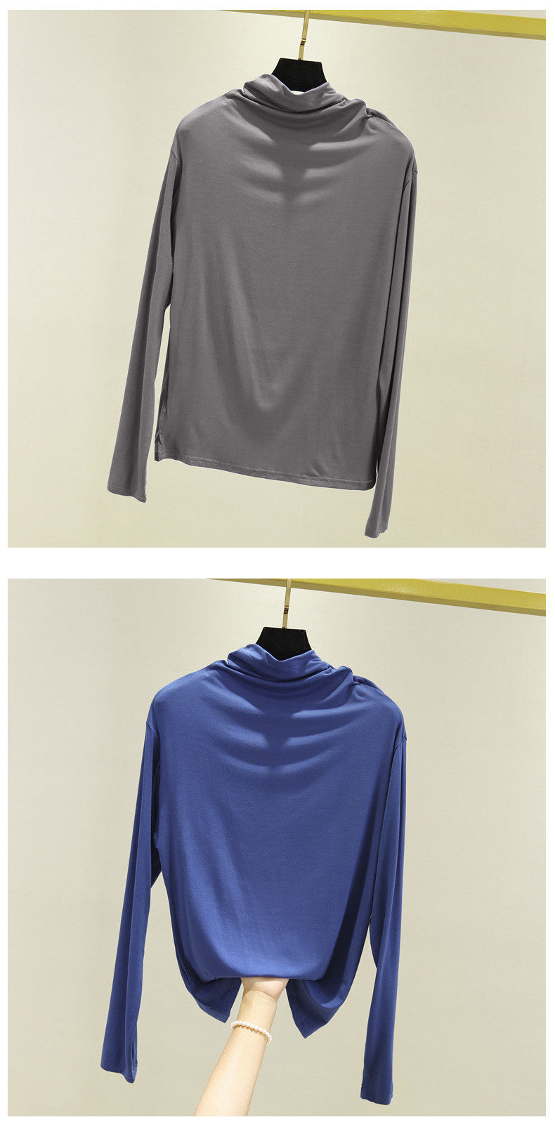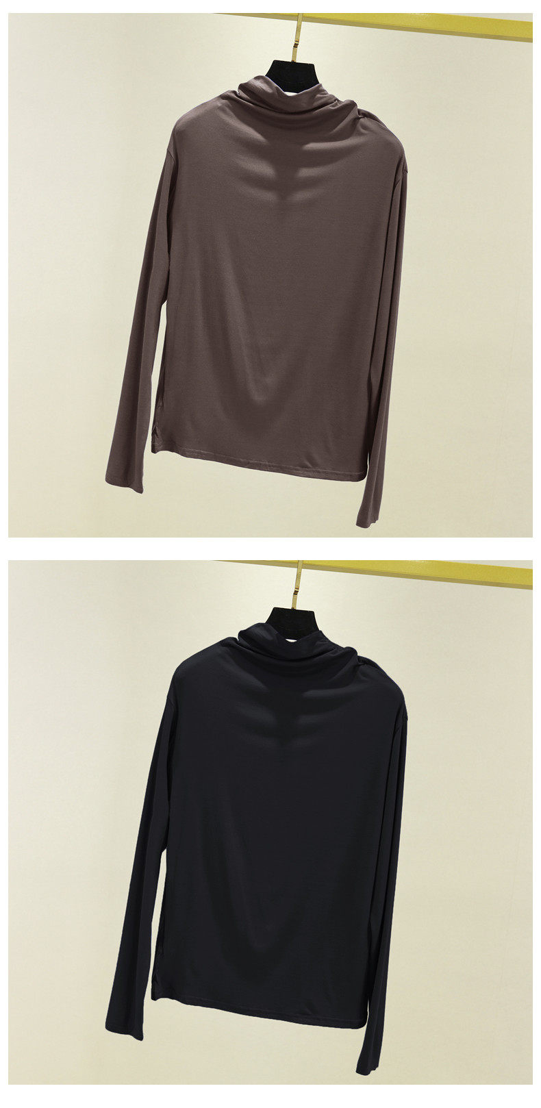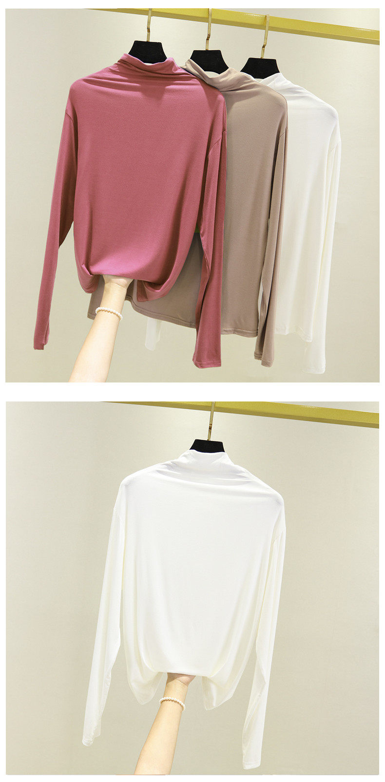 Базовый приятный телу осенний лонгслив, футболка, термобелье, высокий воротник, в западном стиле, облегающий крой
