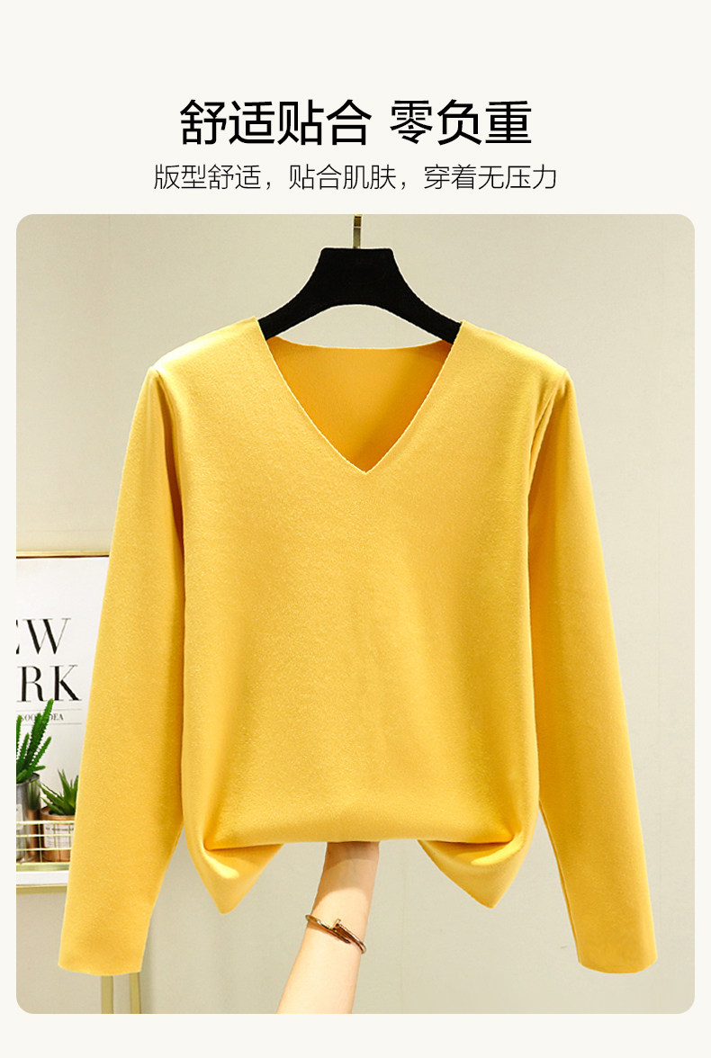 Бархатный базовый приятный телу удерживающий тепло утепленный лонгслив, утепленная футболка, свободный крой, V-образный вырез, размер
