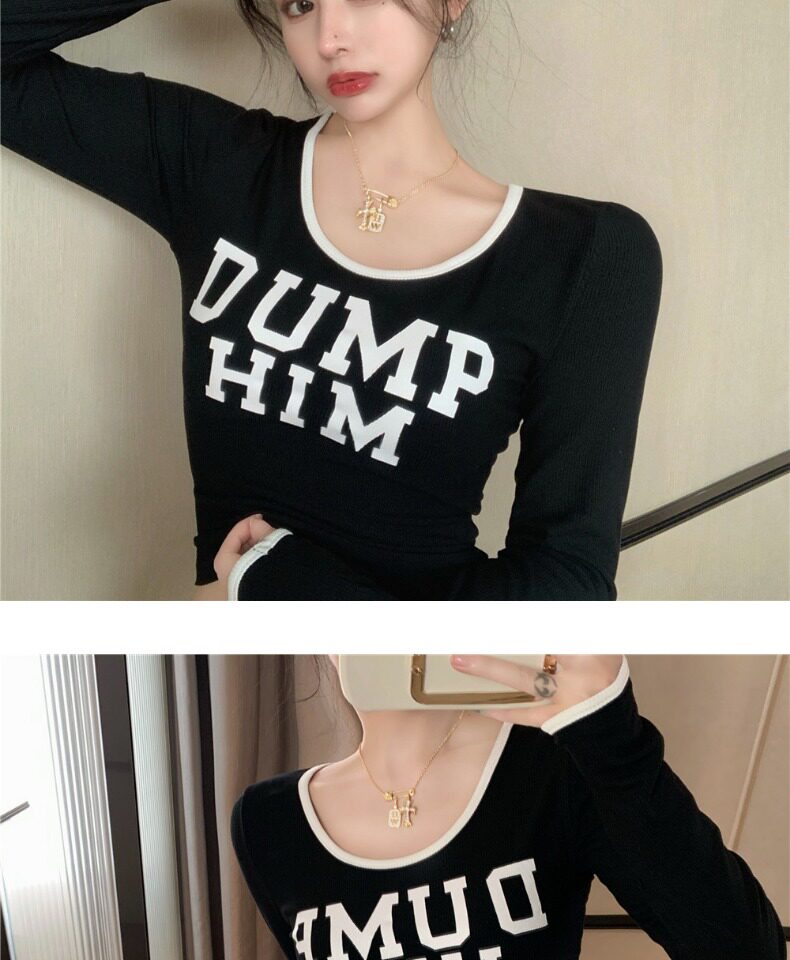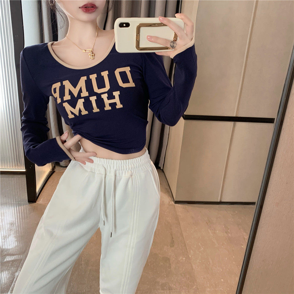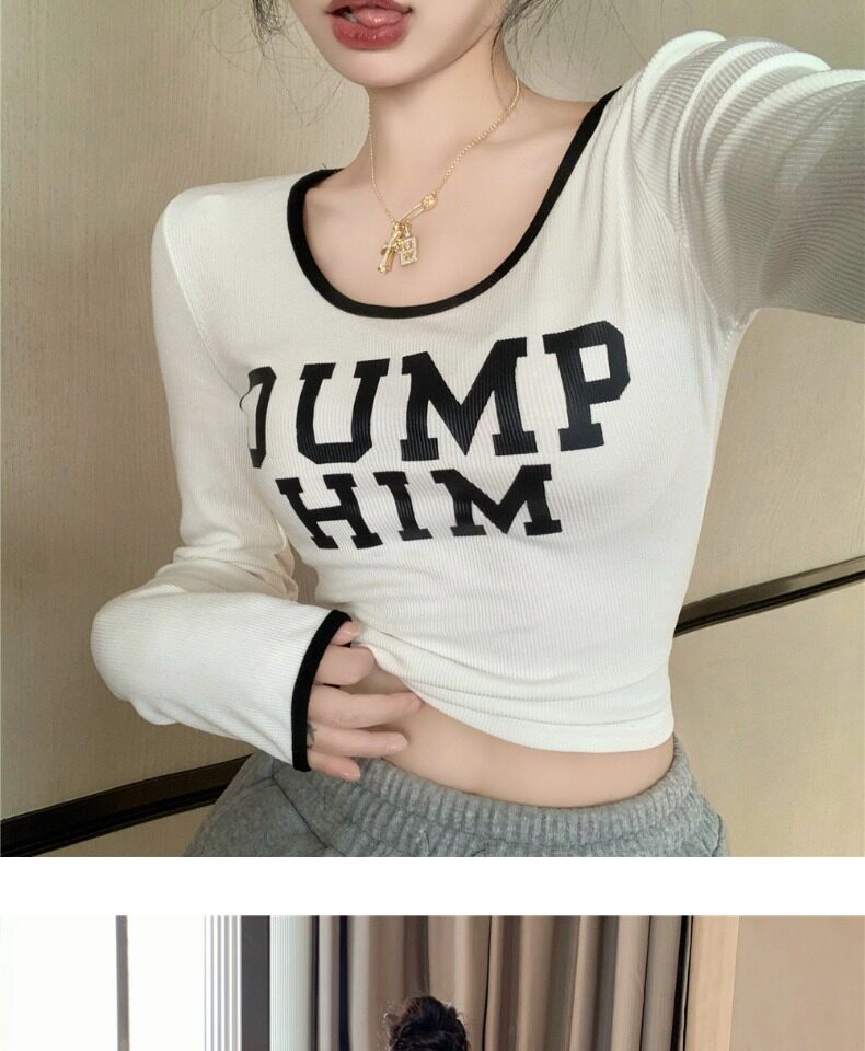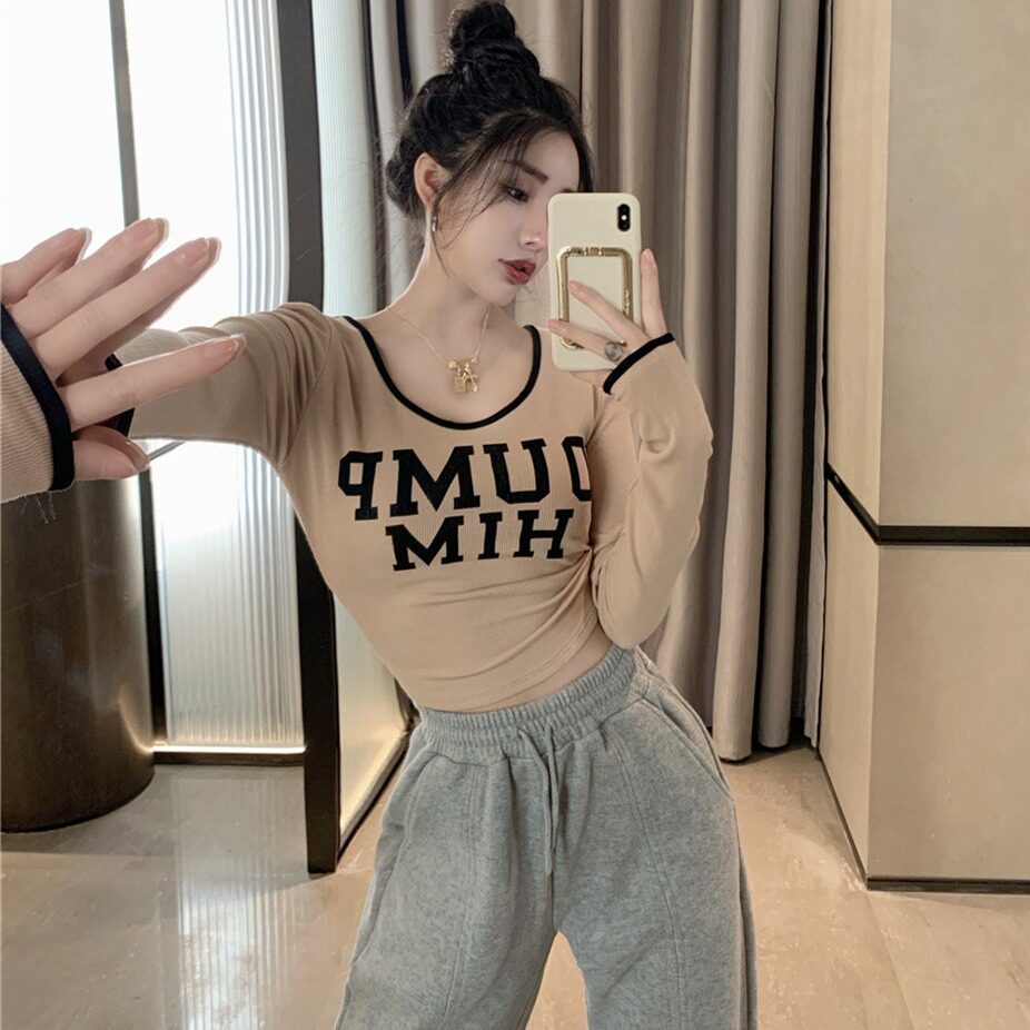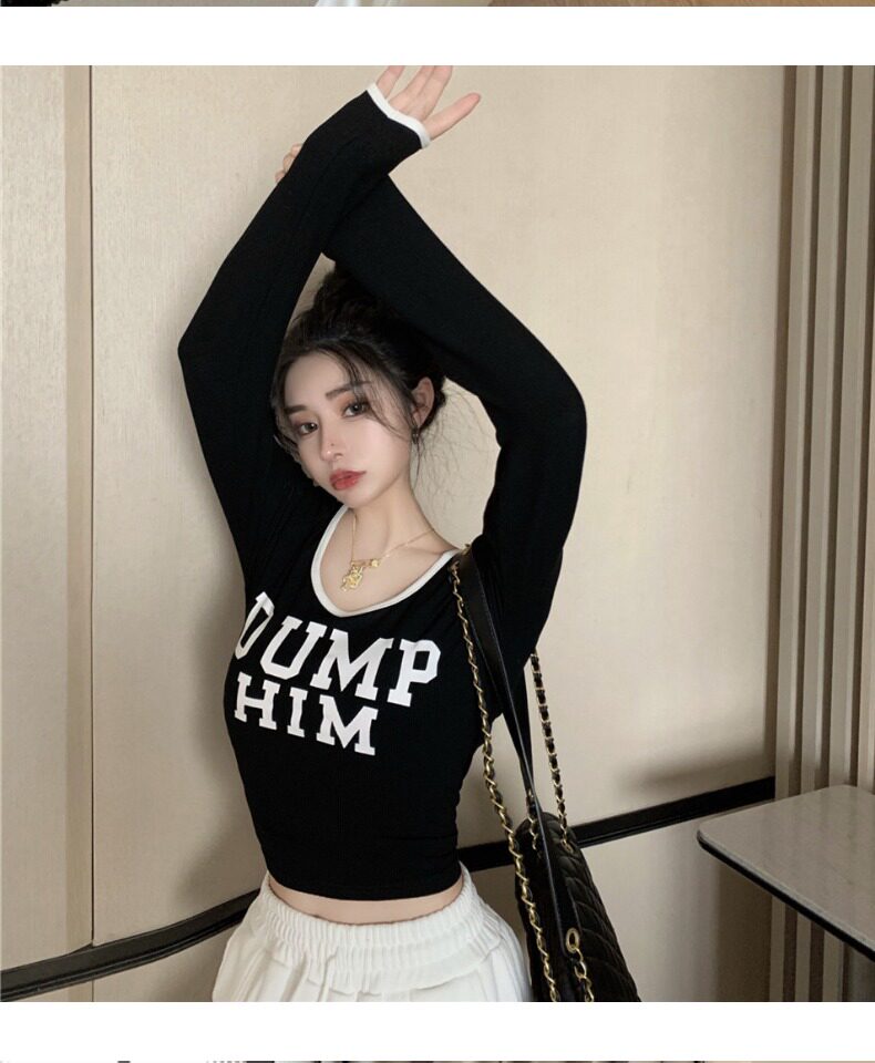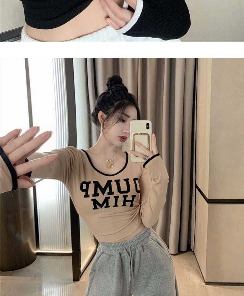 Весенний короткий базовый приятный телу брендовый лонгслив, в западном стиле