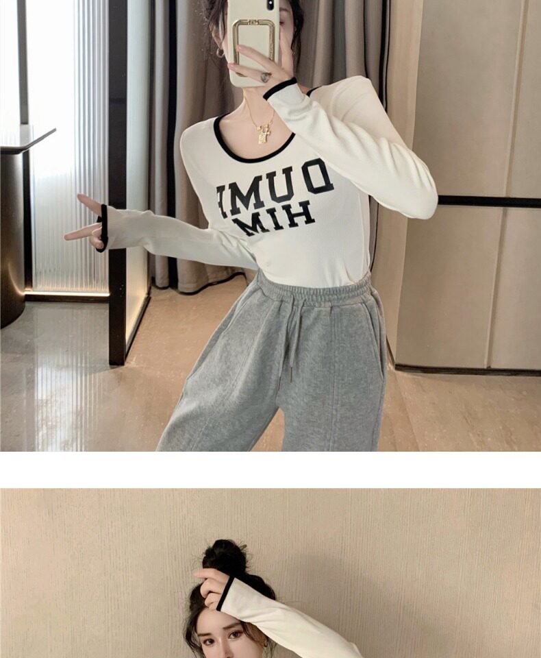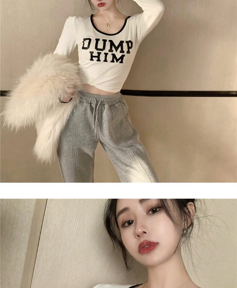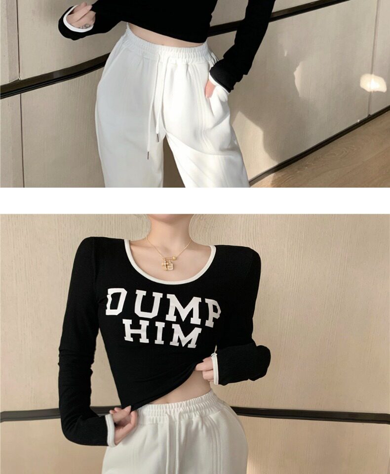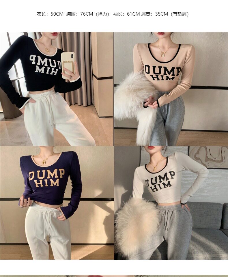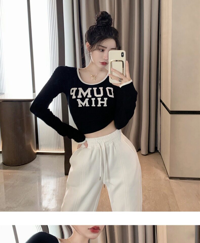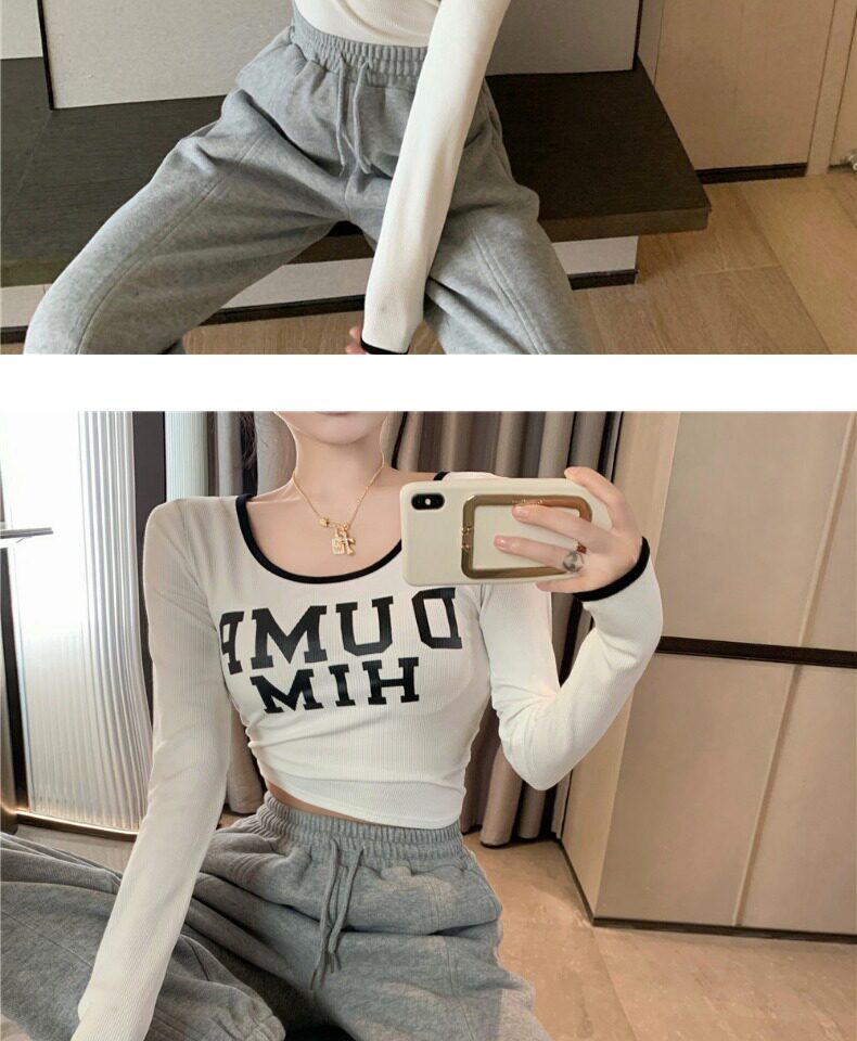 Весенний короткий базовый приятный телу брендовый лонгслив, в западном стиле